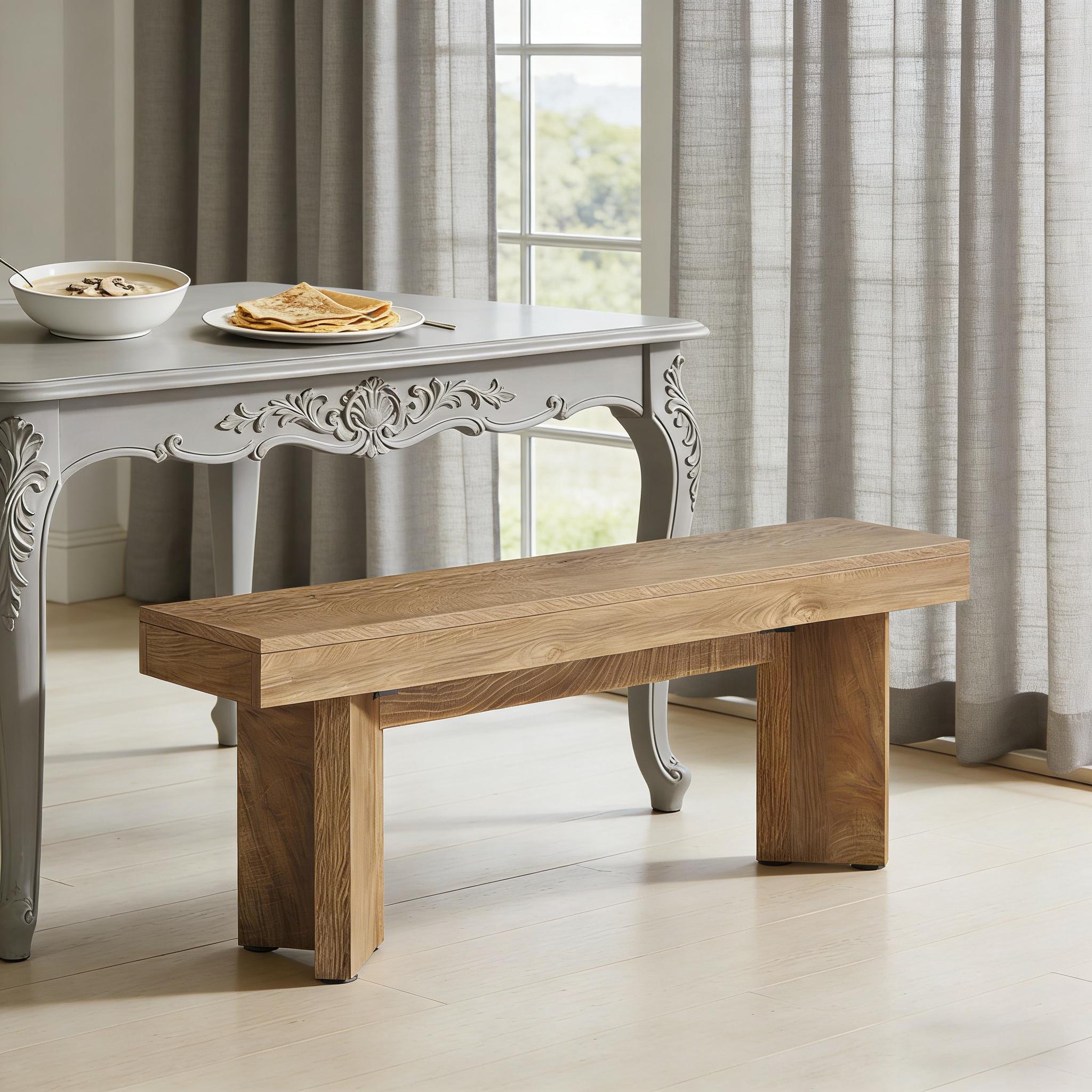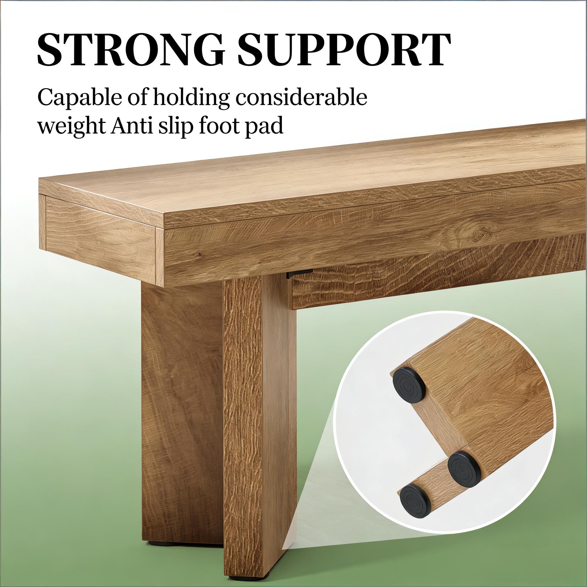 Important Reminder!!! 1) Attention: All products in our store do not support Canada self pickup ordering. Please do not create shipping labels for Canada. Our American products do not support self pickup to Canada 2)We do not ship to Alaska, Hawaii, US protectorates (e.g., Puerto Rico), P.O. boxes, or APO/FPO addresse 3)We don’t accept non-defective remorse returns Elegant Triangular Foot Design - The wooden kitchen table bench showcases a distinctive triangular base that radiates sophistication. Its vintage-inspired details elevate any dining space or kitchen with timeless charm. Heavy-Duty Construction - Built with premium MDF and reinforced with a thick top board, this farmhouse bench offers exceptional durability. Its sturdy frame supports substantial weight while resisting everyday wear and tear. Versatile Seating Solution - Beyond dining areas, this farmhouse dining table bench works perfectly as entryway shoe storage, bedroom seating, or hallway decor. Its flexible design maximizes functionality throughout your home. Simple Setup and Care - Complete with all required hardware and clear instructions, assembly is quick and effortless. The low-maintenance design keeps your space looking polished with minimal effort. Rustic Farmhouse Appeal - Designed to complement country cottages and bungalows, this wooden bench adds cozy character to any interior. Its warm, inviting aesthetic enhances kitchens and dining rooms with rustic elegance.