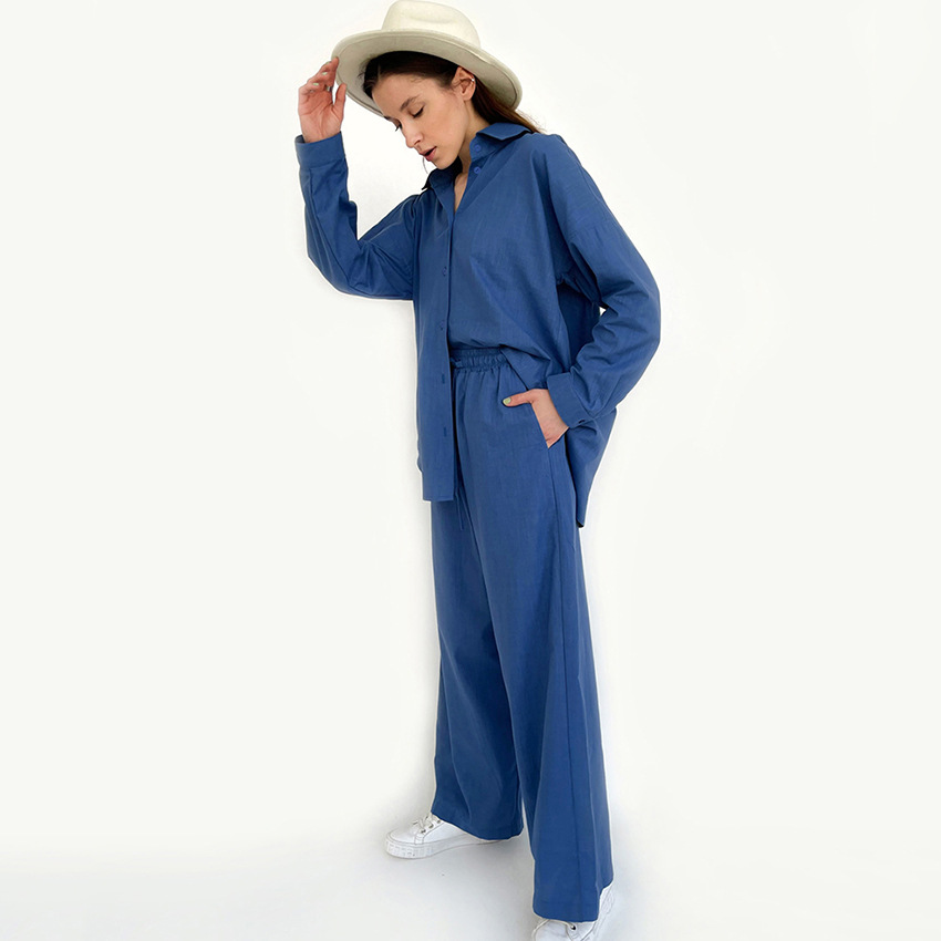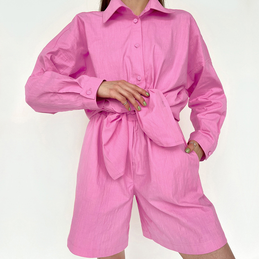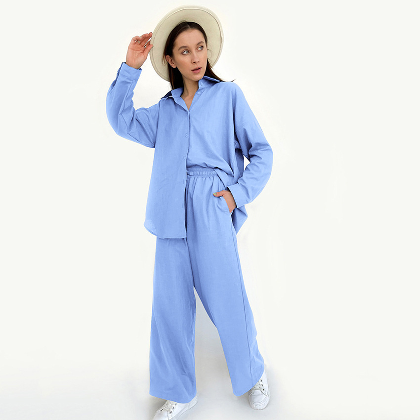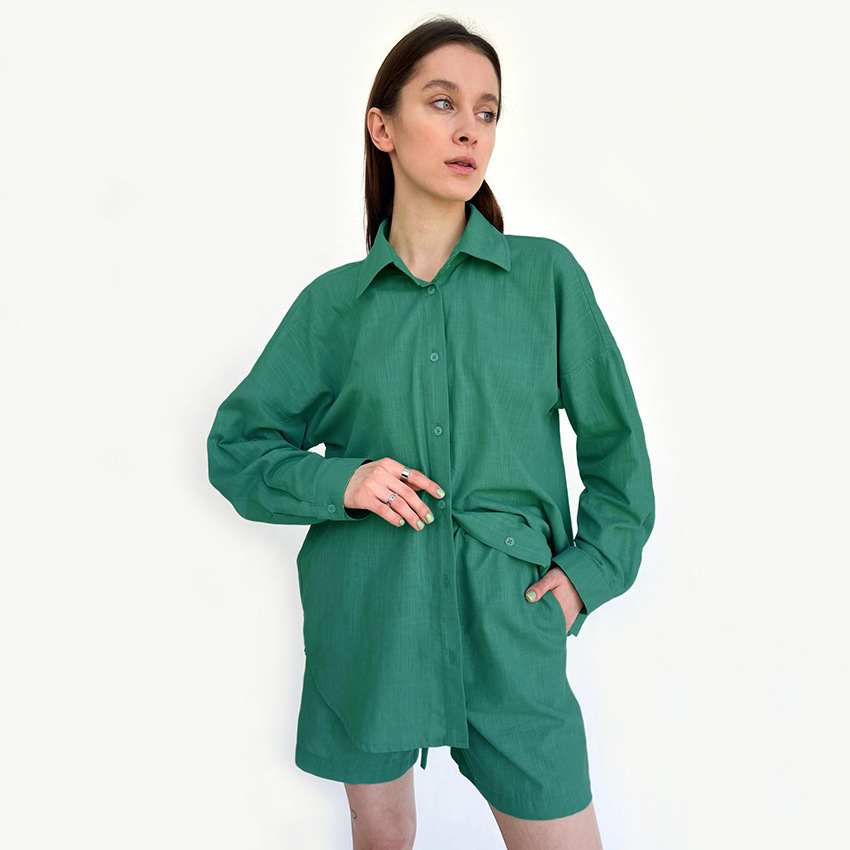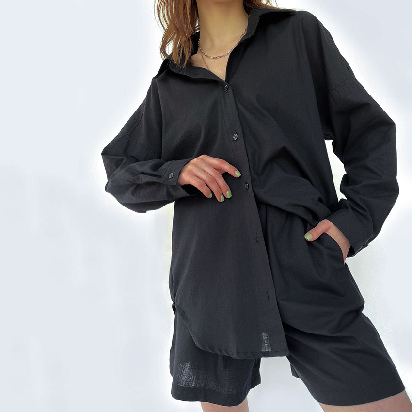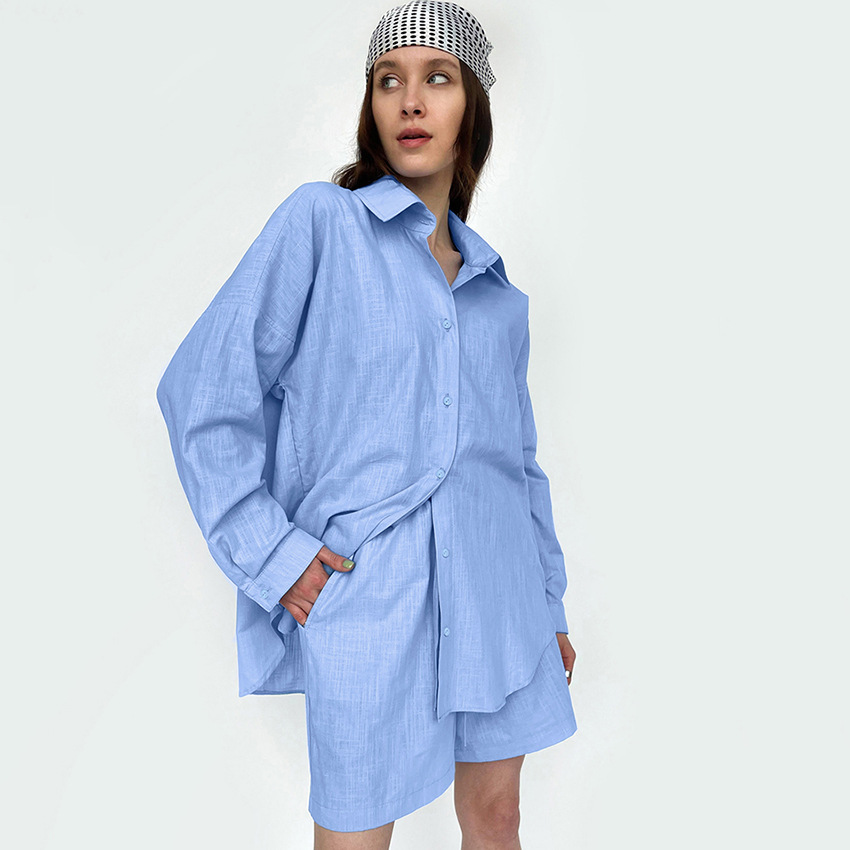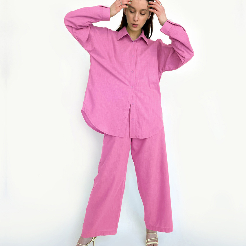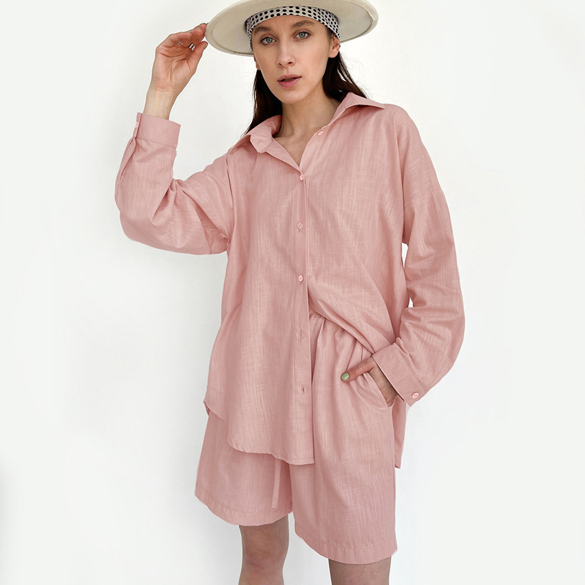 Color: dark blue shorts suit, dark pink shorts suit, black shorts suit, green shorts suit, light blue shorts suit, light pink shorts suit, dark blue trousers suit, dark pink trousers suit, black trousers suit, light blue Color trousers suit, light pink trousers suit, spot second hair, shorts suit weight: 342G, trousers suit weight: 450G, composition: 97% cotton 3% linen