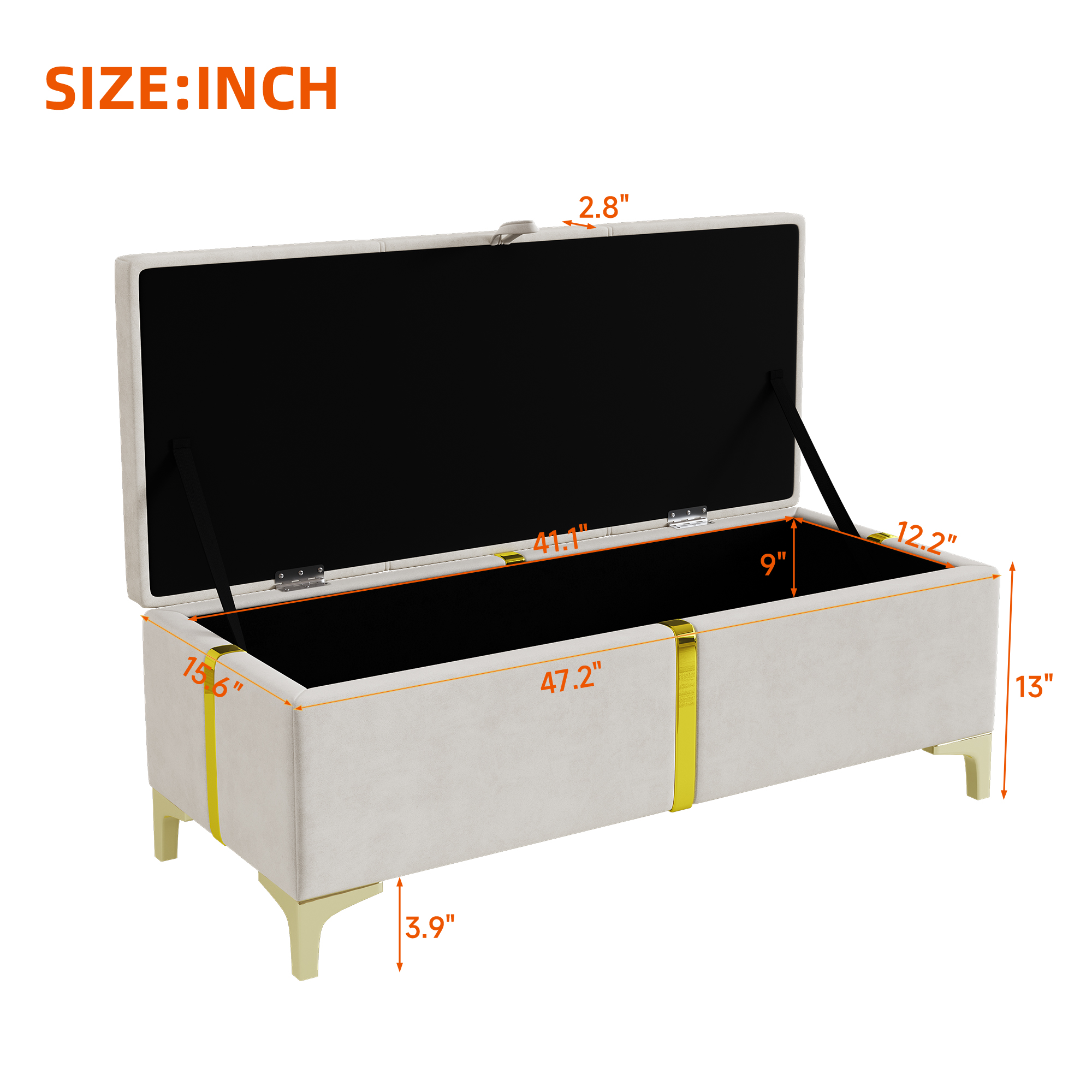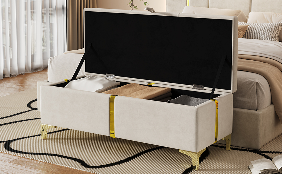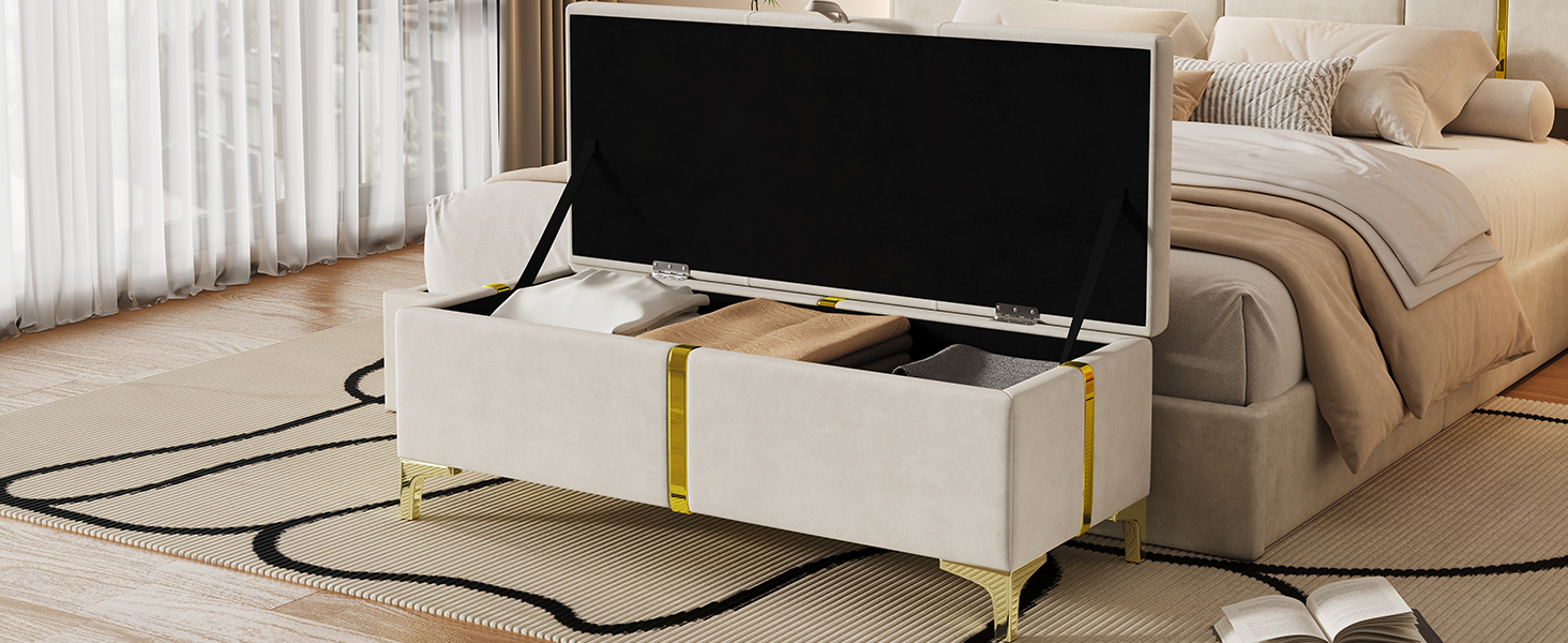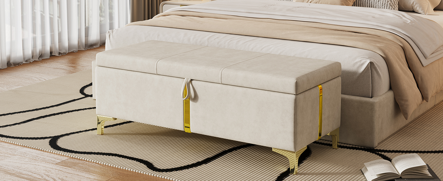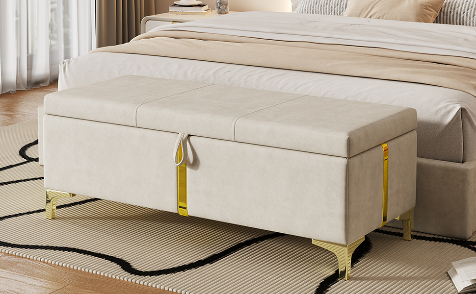 Product Name:Elegant Upholstered Storage Ottoman,Storage Bench with Metal Legs for Bedroom,Living Room,Fully Assembled Except Legs,Beige