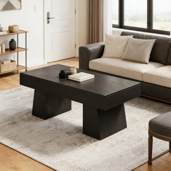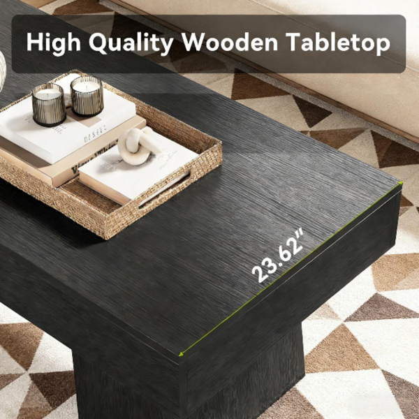 Durable Wooden Coffee Table - This high-quality MDF coffee table offers long-lasting durability and water resistance for easy cleaning.Sturdy Design - The thick tabletop and robust base ensure excellent stability, with adjustable footpads for grip on uneven surfaces.