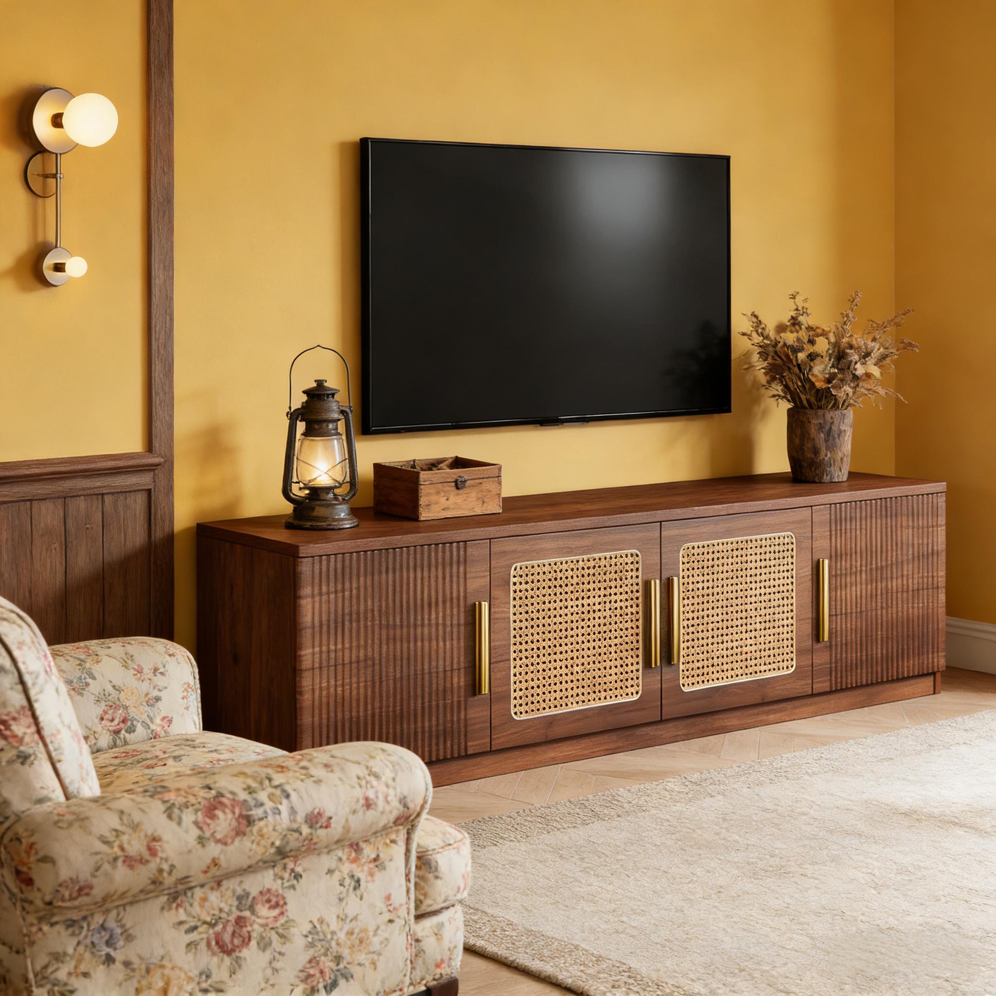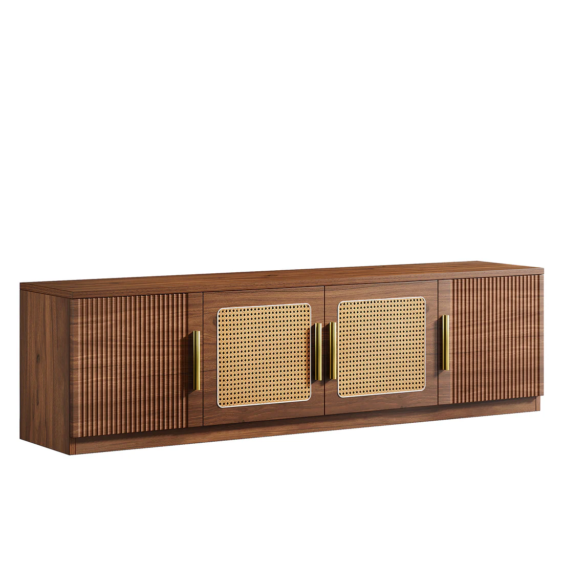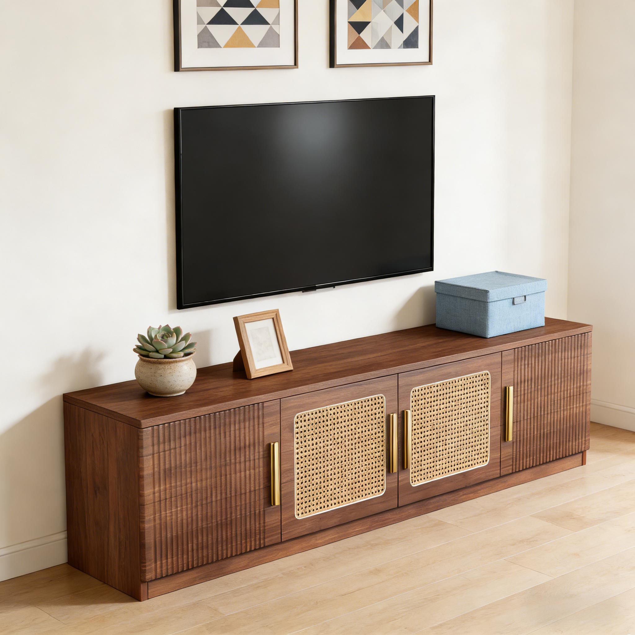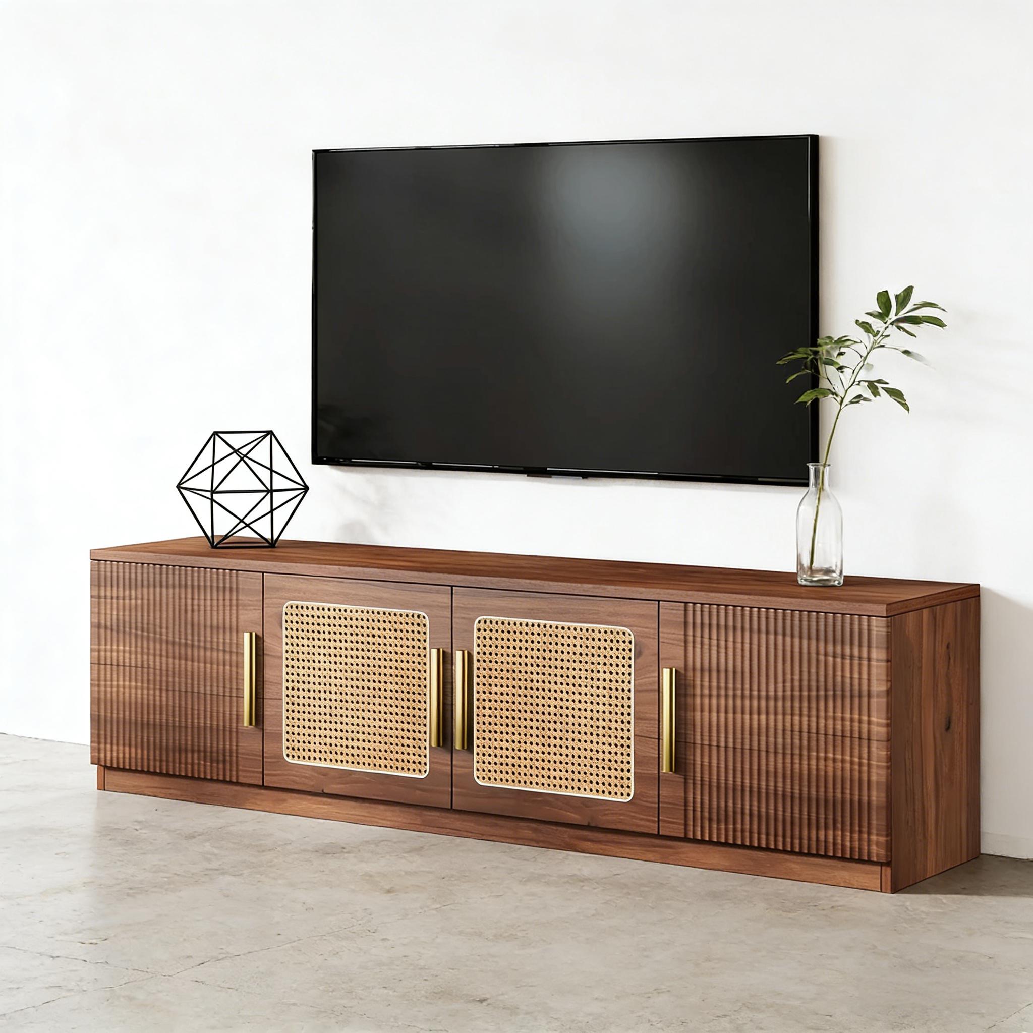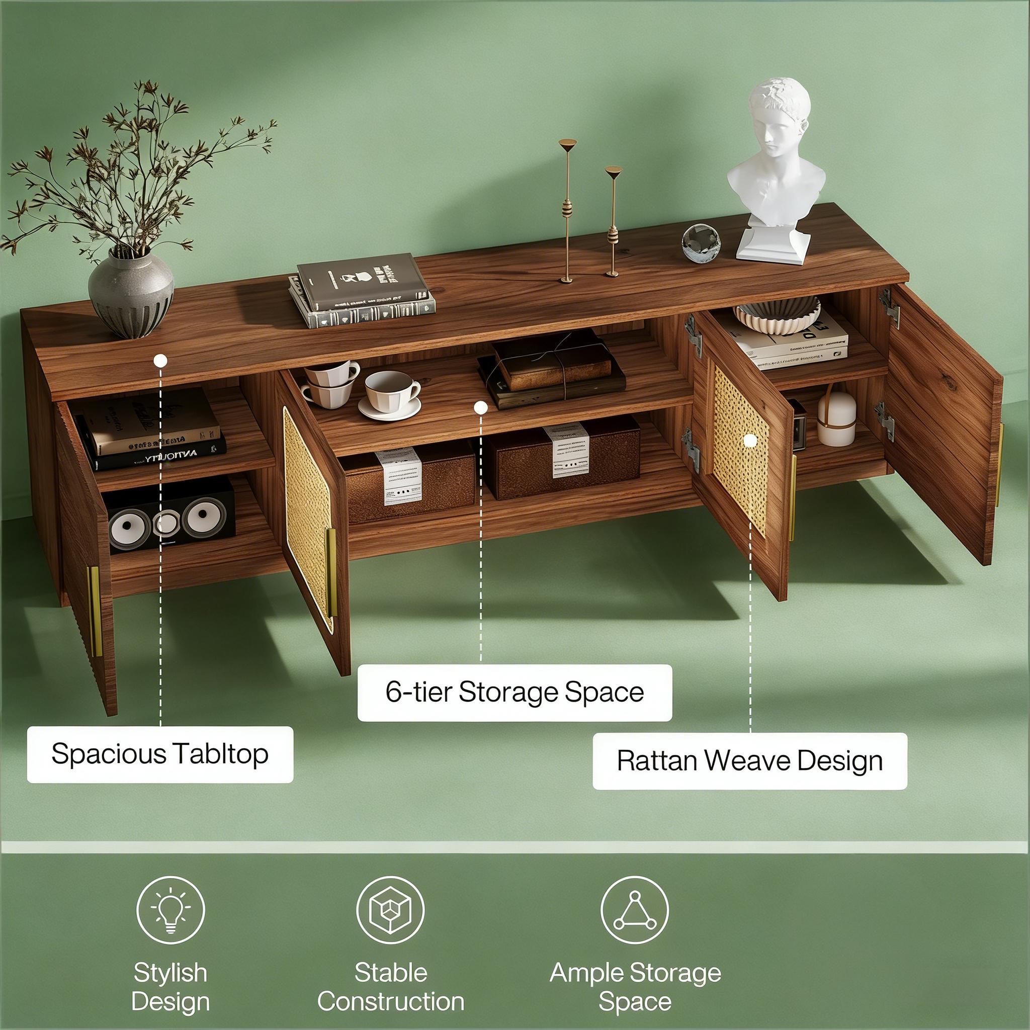 Important Reminder!!! 1) Attention: All products in our store do not support Canada self pickup ordering. Please do not create shipping labels for Canada. Our American products do not support self pickup to Canada 2)We do not ship to Alaska, Hawaii, US protectorates (e.g., Puerto Rico), P.O. boxes, or APO/FPO addresse 3)We don’t accept non-defective remorse returns Effortless Setup - Assembly is a breeze with clear instructions and all the necessary hardware included. Enjoy the perfect blend of style, functionality, and convenience with the 70.9-inch entertainment center. Spacious Storage - This entertainment center boasts 6 large shelves and a spacious tabletop, providing ample room to organize and store all your media accessories, books, and decorative items, keeping your entertainment area neat and tidy. Premium Quality - Crafted from premium MDF, this TV console cabinet is built to last, ensuring years of stability and durability. The delicate golden metal handles add a touch of elegance while providing easy access. Versatile Design - This media console isn't just for TVs! Use it to display collectibles, framed photos, vases, or any other personal items. It's perfect for living rooms, bedrooms, and more. Easy Care - It comes with clear instructions and all necessary hardware for easy assembly. The smooth surface is easy to clean, requiring only a simple wipe with a damp cloth to maintain its pristine appearance.