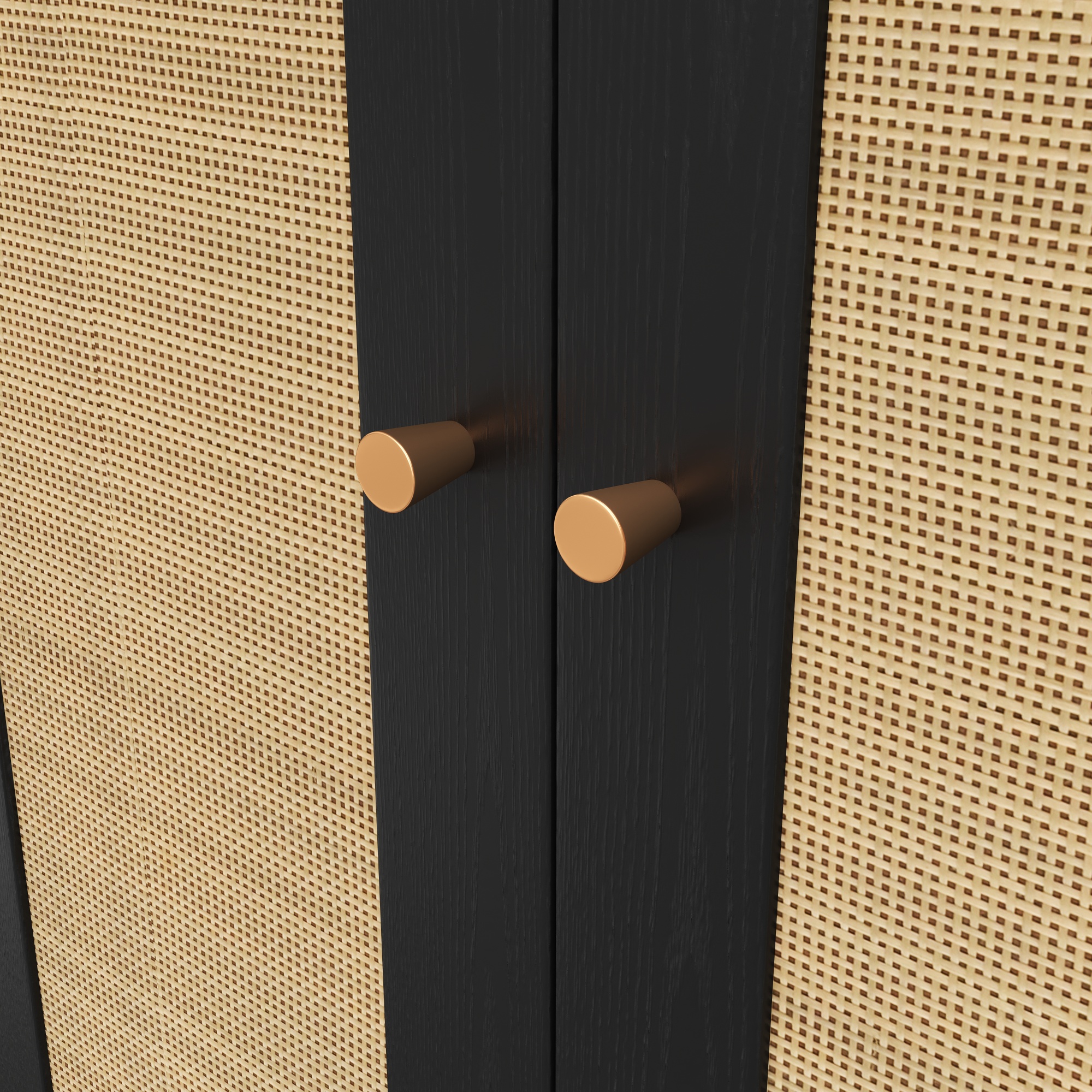 Featuring four rattan wooden doors with gold handles, this cabinet exudes a unique Bohemian allure. Its classic color matching and exquisite rattan weaving show farmhouse style, as if immersing you in a natural ambiance, seamlessly complementing any home decor style.
