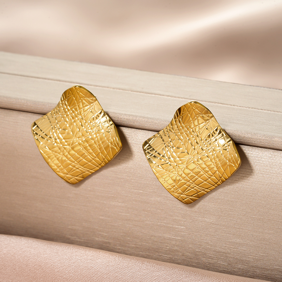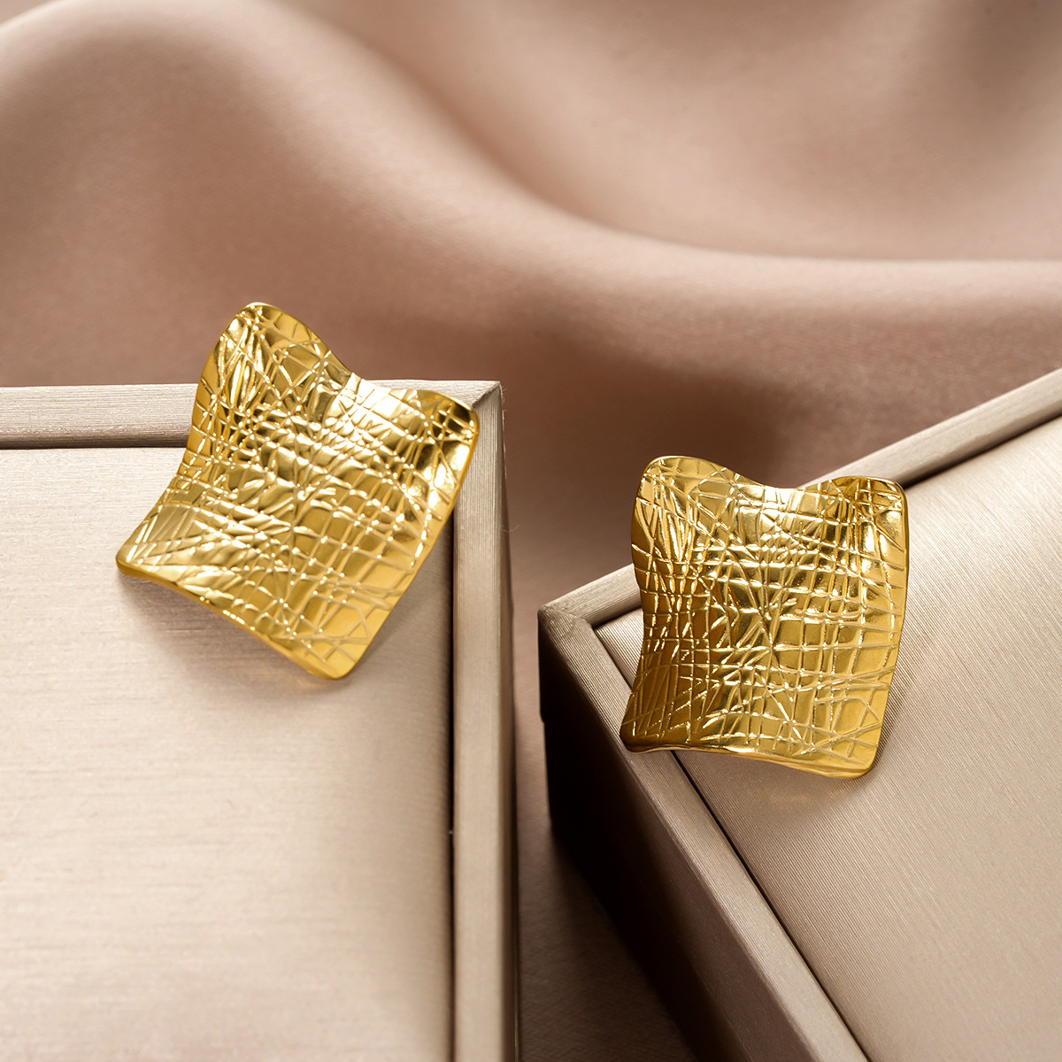 Fashion European & American Style Square Pleated Earrings, Irregular Texture, High Grade All...