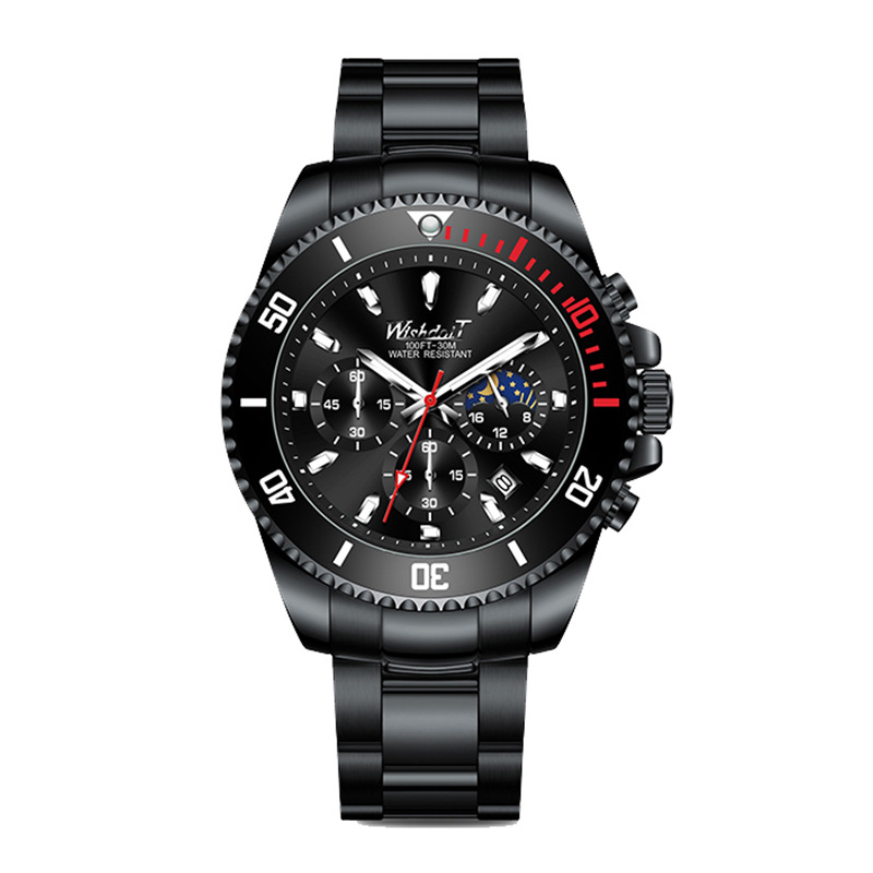 Special functions: luminous, chronograph, small three hands, moon phase display