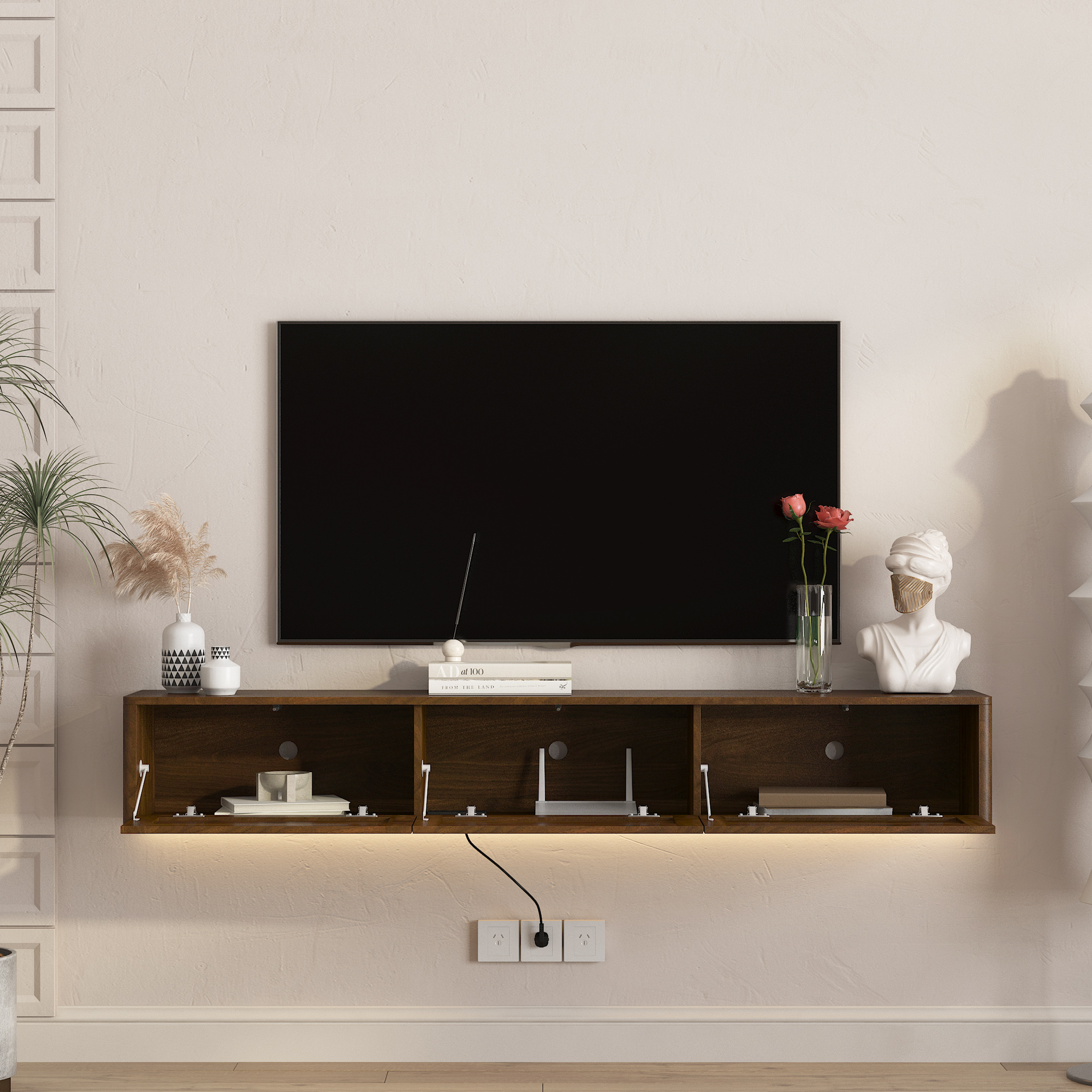 • Equipped with 3 standard plugs and 2 USB ports, the floating TV stand provides convenient power charging for your TV, DVD, WiFi router and more
