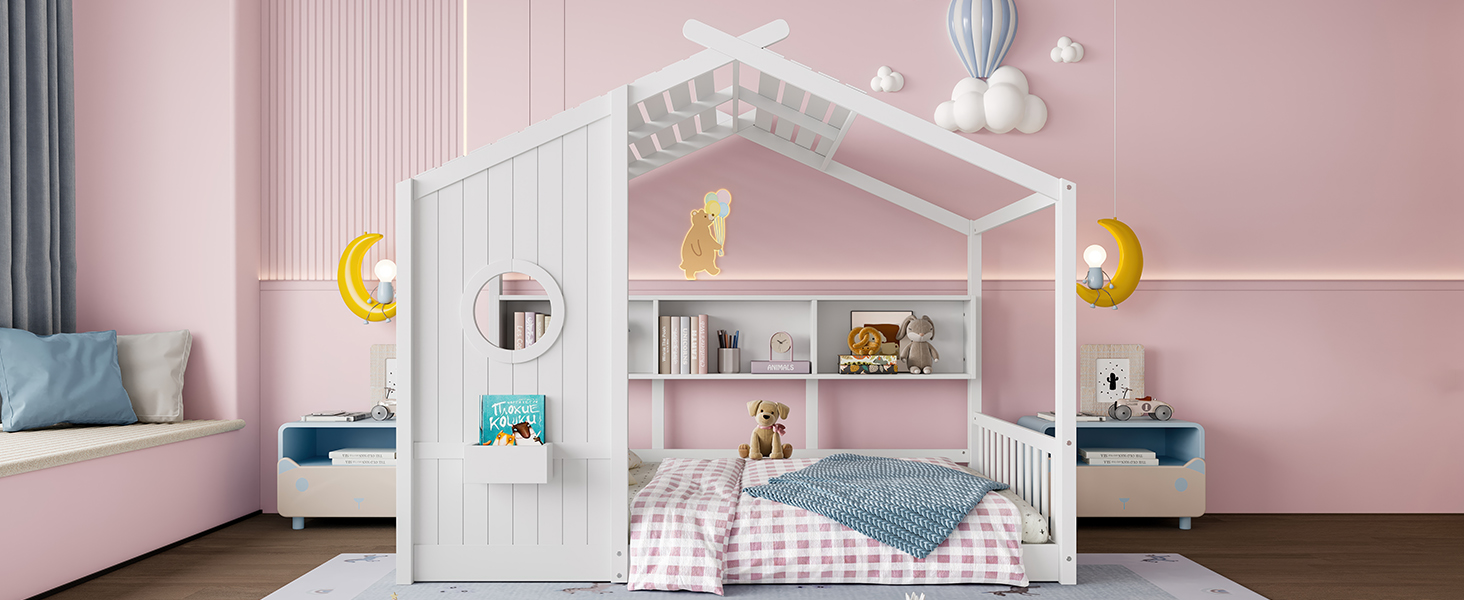 - 5.Superior Quality: The house bed is constructed with a sturdy pinewood frame that can enhance stability and durability. Slats are included, you don't need to prepare box springs or foundations. The smooth, polished surface and rounded edges provide extra safety for active kids, while the solid construction offers reliable support for daily sleep and play.