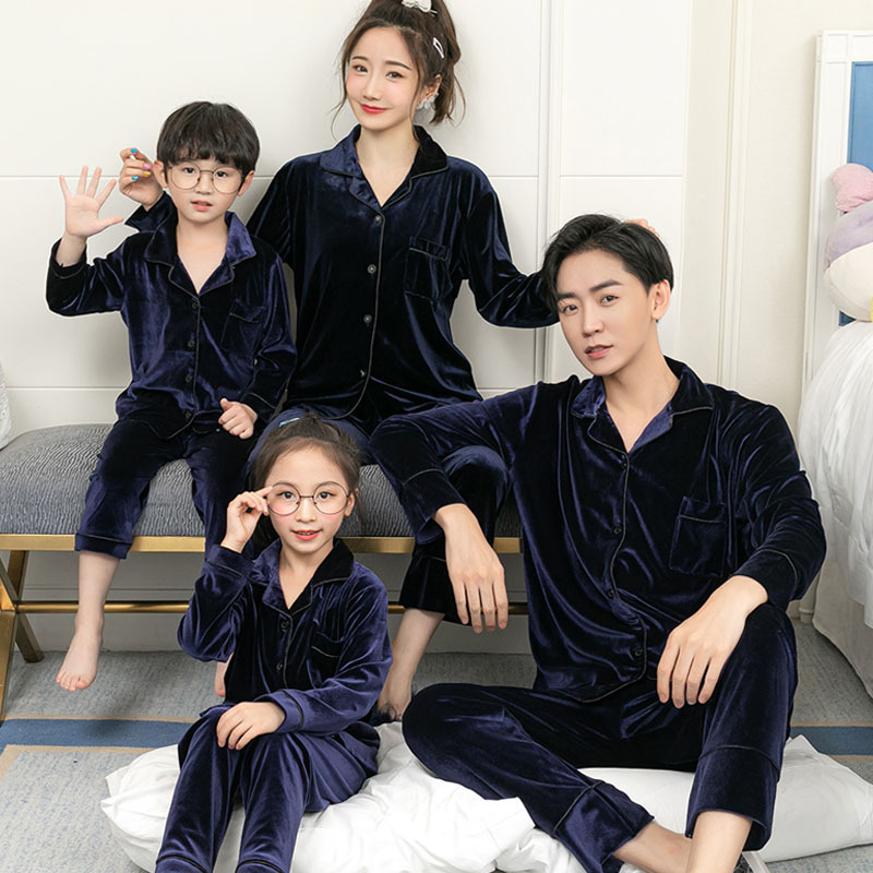 Gold Velvet Simple Solid Color Large Size Parent-child Pajamas