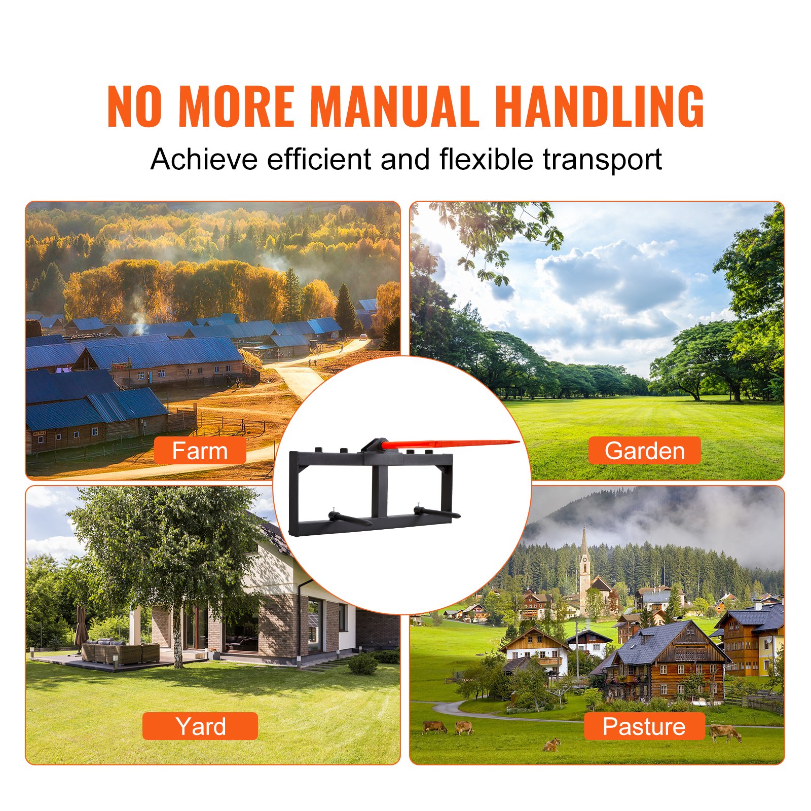 Hay Spear, Bale Spears 1600lbs Loading Capacity, Skid Steer Loader Tractor Attachment With...
