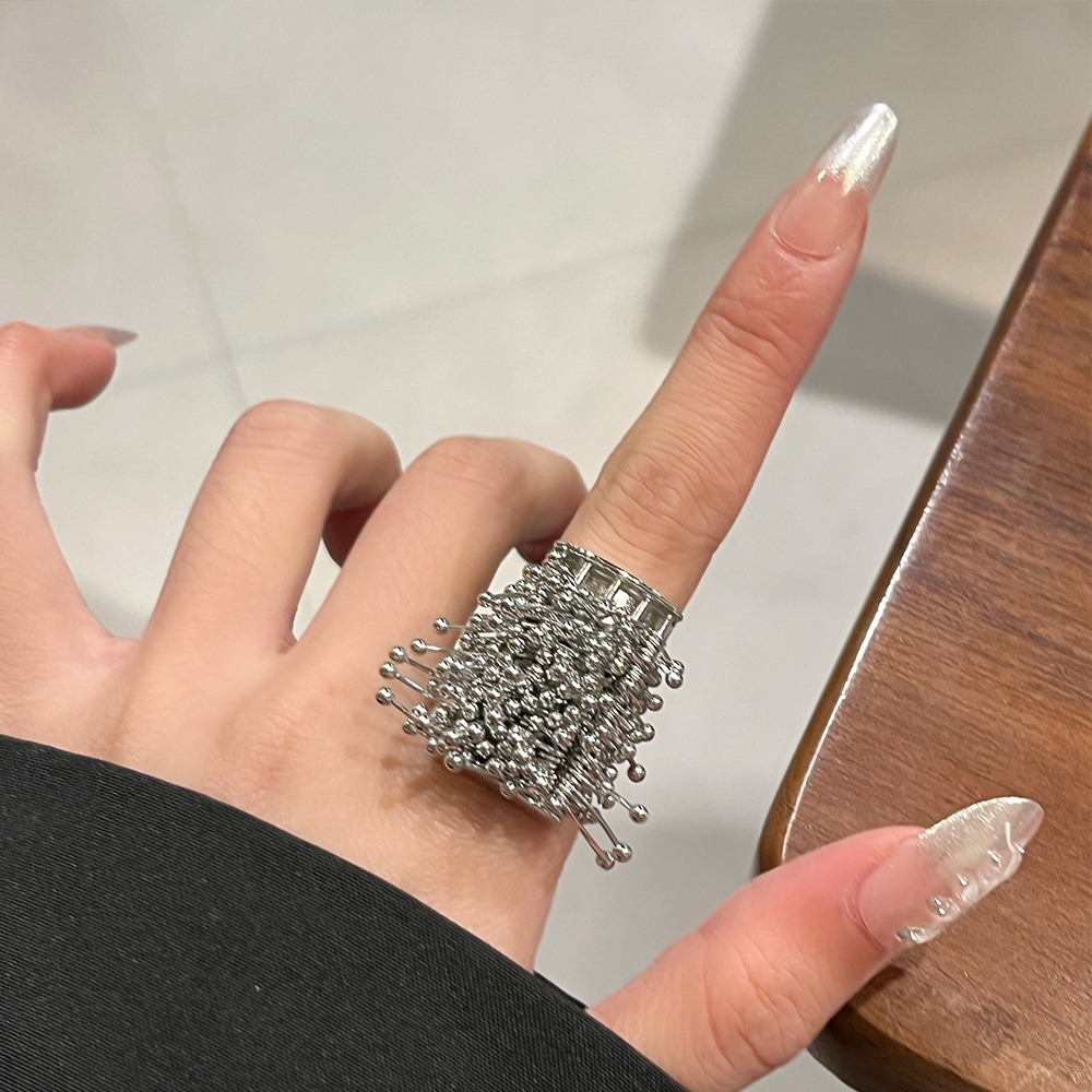 Heavy Industry Niche Design Firework Tassel Ring For Women, Light Luxury High End Fashion...