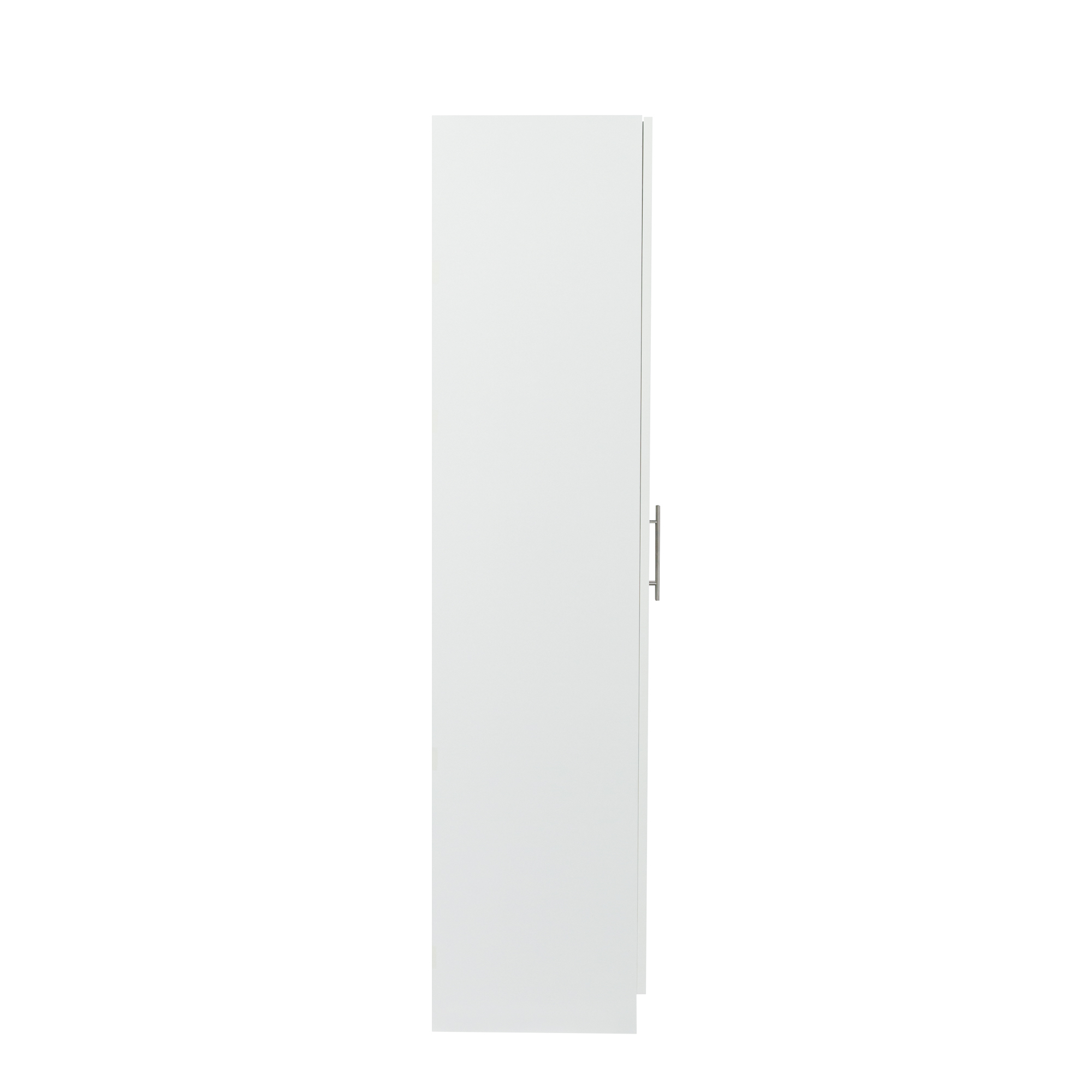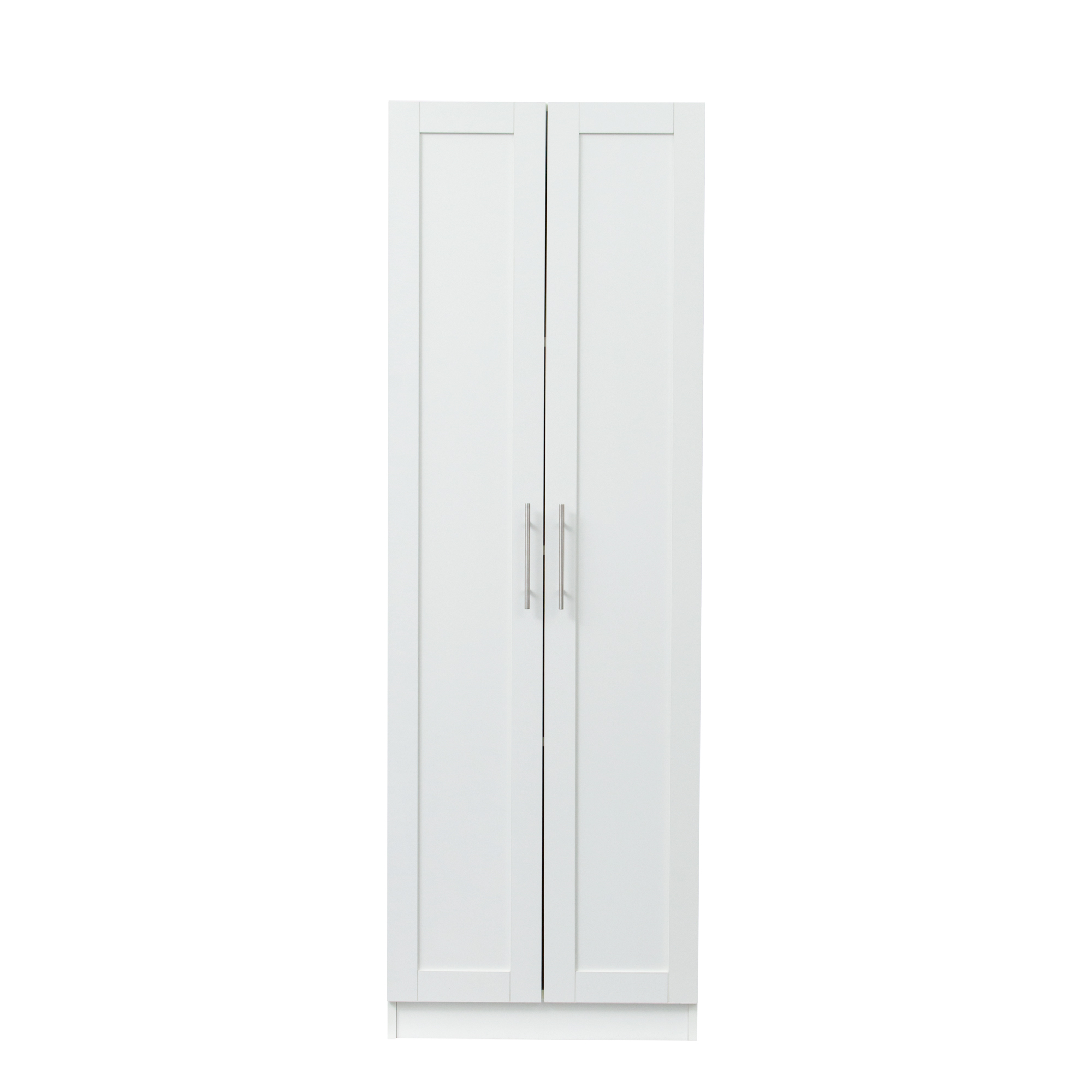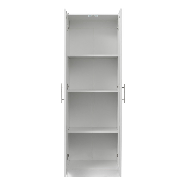 High wardrobe and kitchen cabinet with 2 doors and 3 partitions to separate 4 storage spaces, White