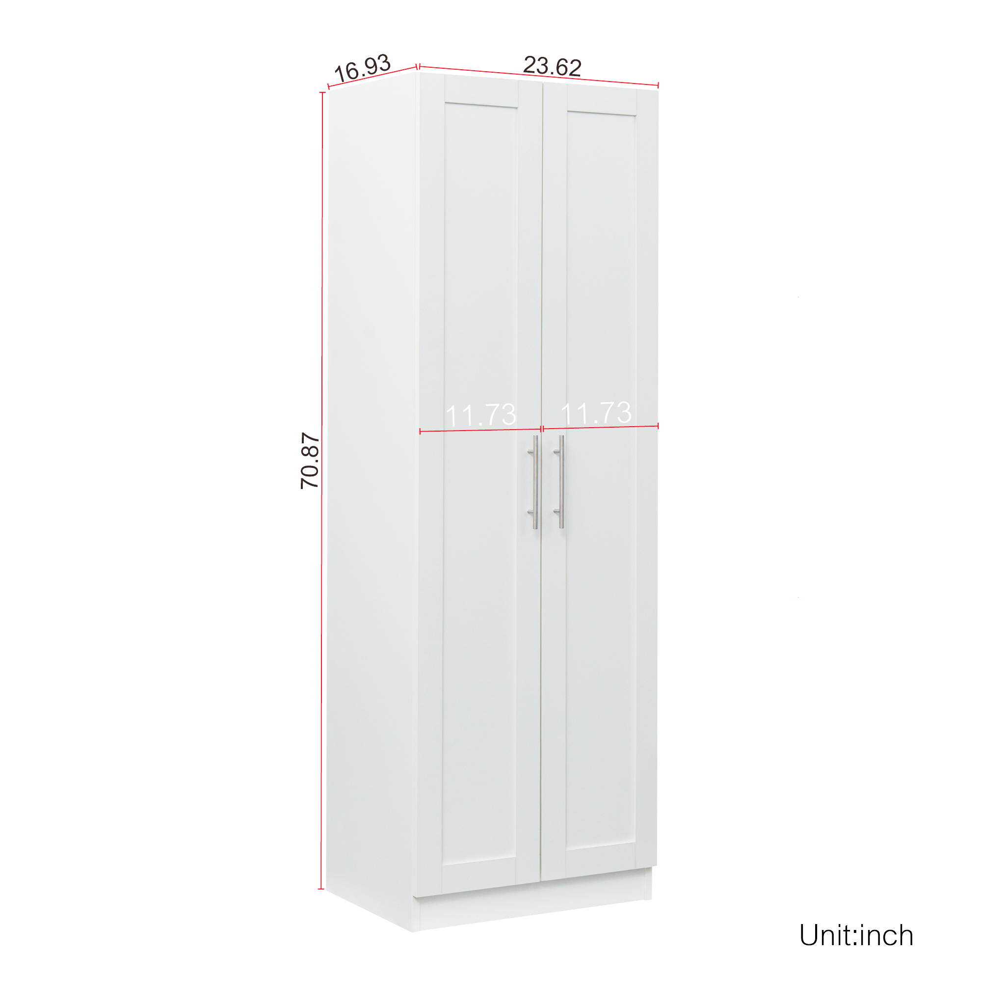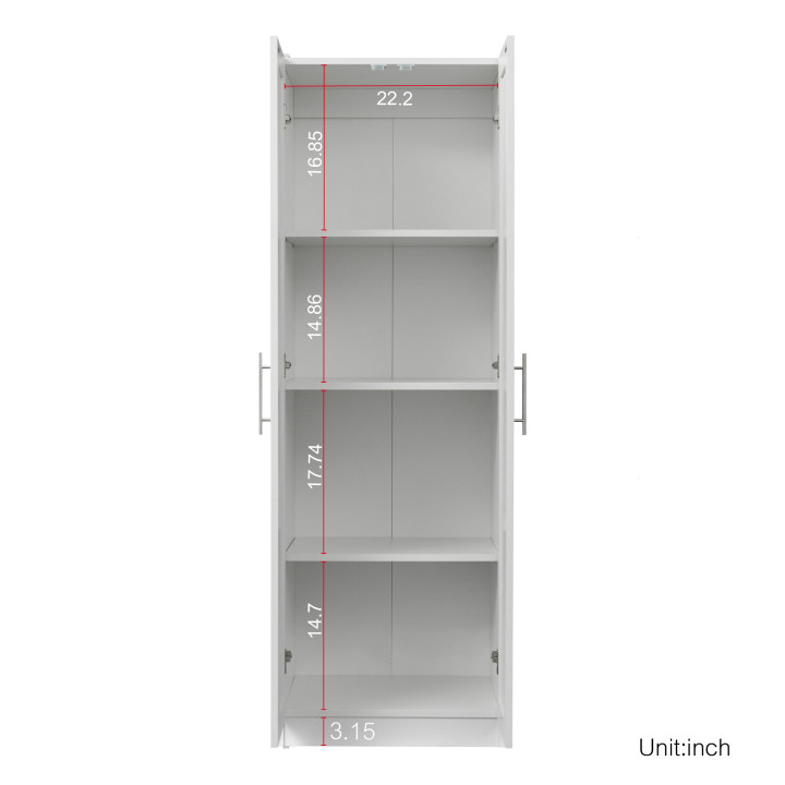 Product Name:High wardrobe and kitchen cabinet with 2 doors and 3 partitions to separate 4 storage spaces, White