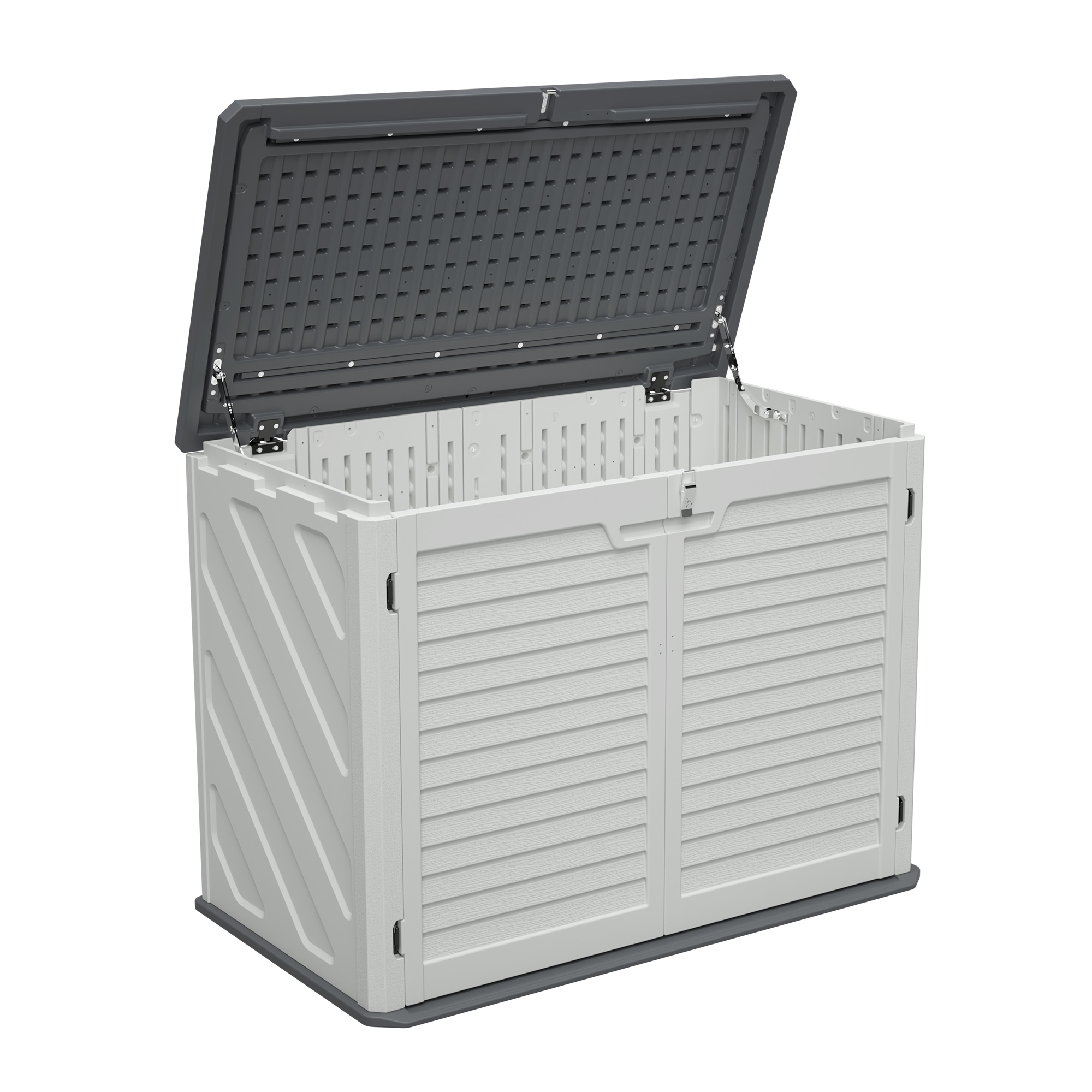 - 【ALL-WEATHER PROTECTION】Constructed with UV-stabilized HDPE resin that resists fading, cracking, and warping in extreme temperatures. Features a fully-sealed lid with reinforced edges and a sloped roof design to prevent water accumulation, ensuring your belongings stay dry year-round.