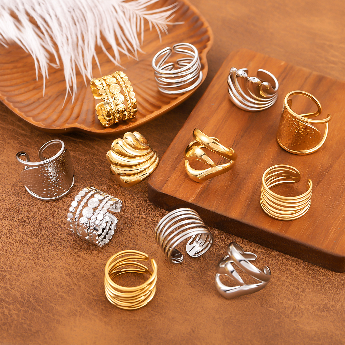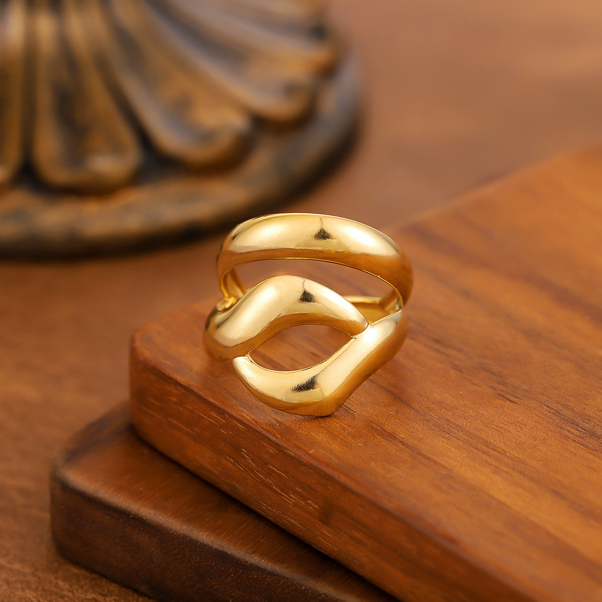 Style Titanium Steel Ring For Women, Light Luxury Advanced Sense, Niche Design, Open & Gold...