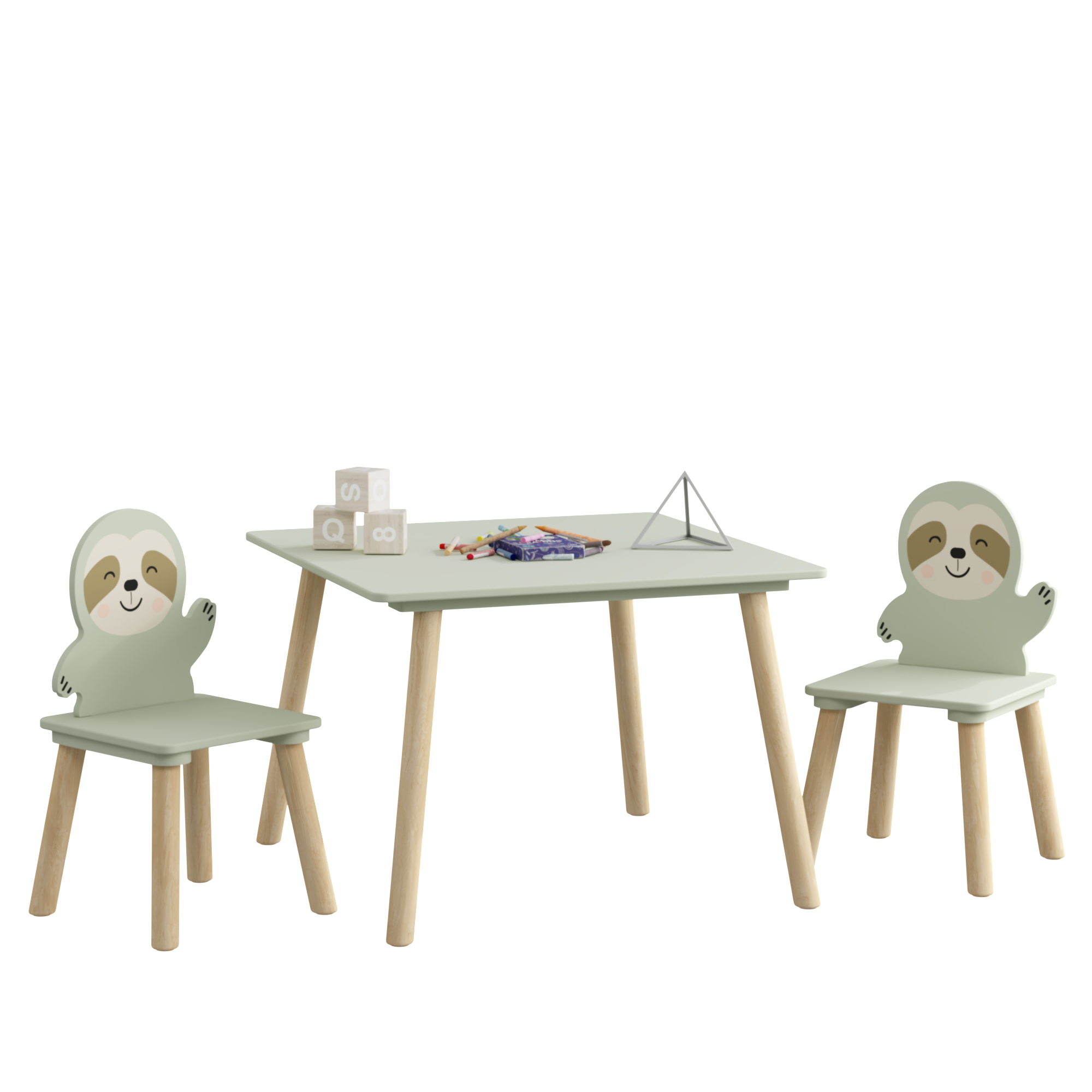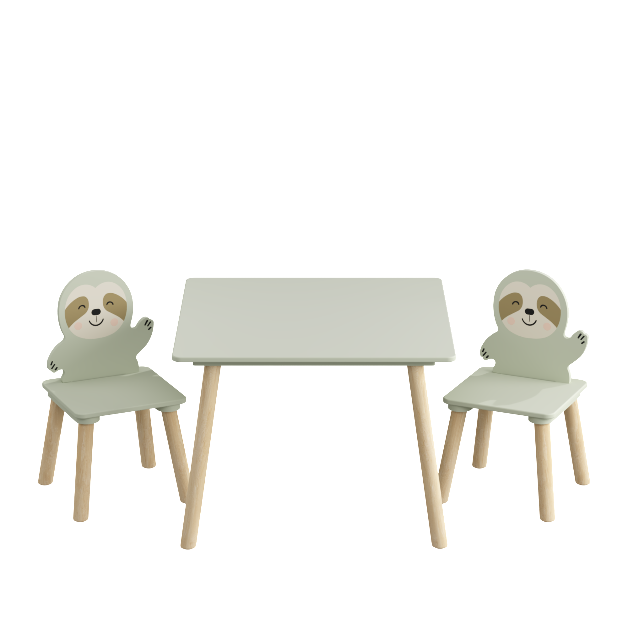 - 【Adorable Sloth-Themed Kids Table & Chair Set】This charming toddler table and chair set features two cute sloth-shaped chairs that instantly warm up any space. The playful animal design sparks imagination and makes this kids table and chairs set perfect for the playroom, bedroom, daycare, or preschool classroom.