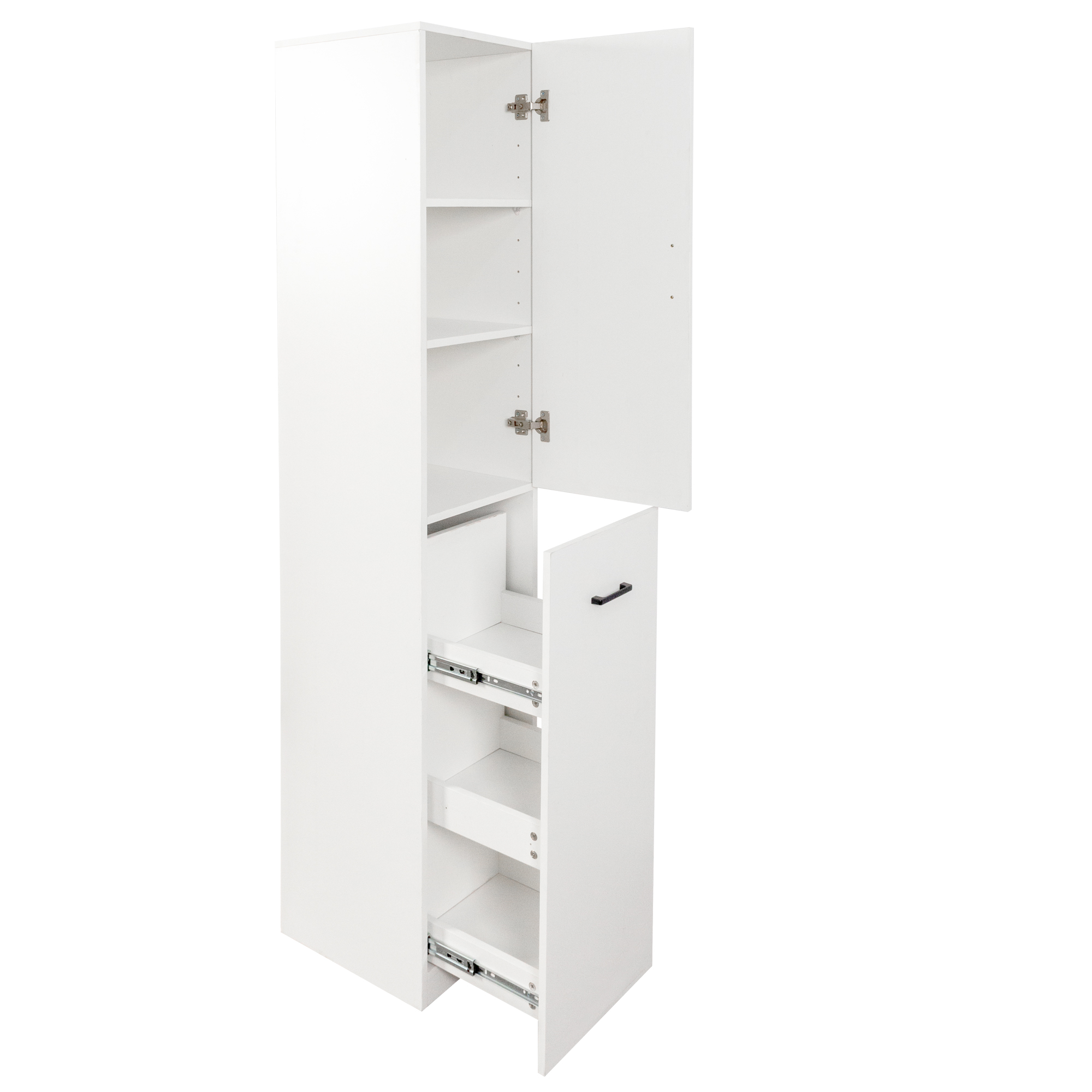 - The modern Pantry Storage Cabinet is the ideal choice for you to decorate your home. There are two adjustable shelves, to provide you plenty of flexible storage space for different sized items.