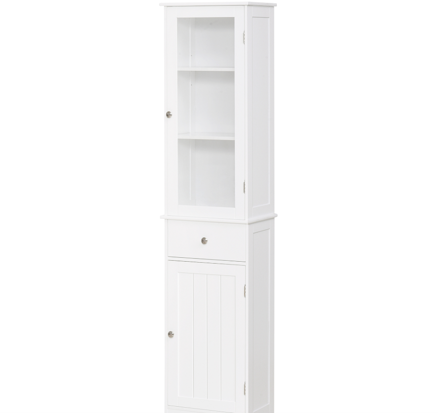 Kleankin Slim Bathroom Storage Cabinet Tall Narrow Linen Tower With Acrylic Door Drawer And...