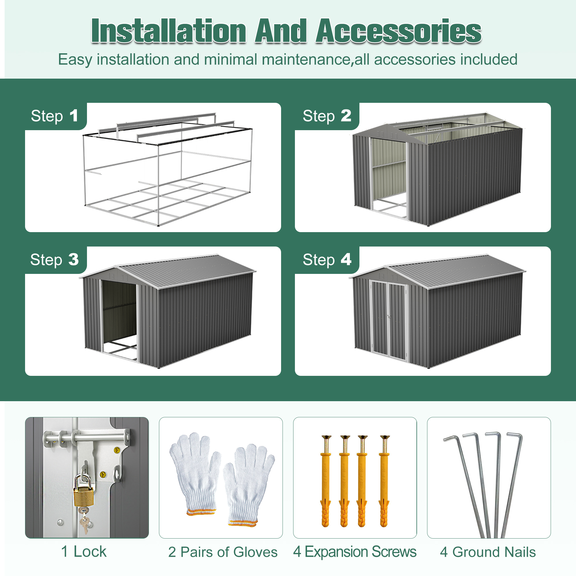 - 【Easy Assembly】This shed comes with simple, step-by-step instructions, making setup quick and hassle-free. Most adults can complete the assembly easily and efficiently—no specialized tools or expertise required!
