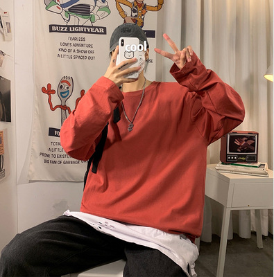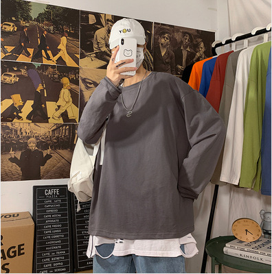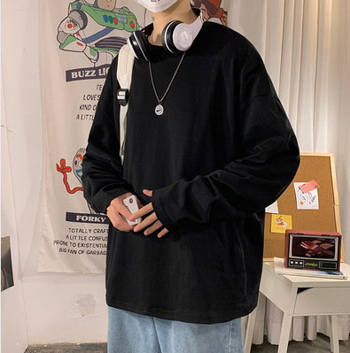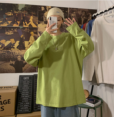 Loose Large Version Couple Solid Color Round Neck Long Sleeves