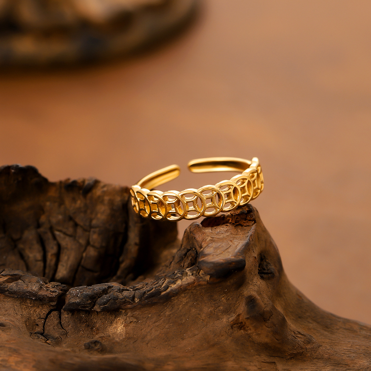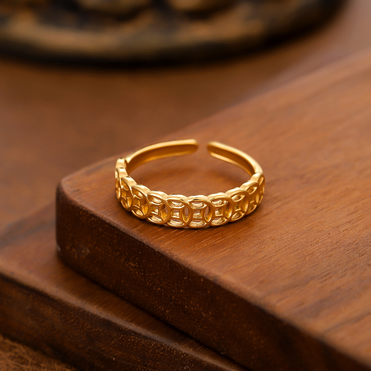 Lucky Coin Titanium Steel Ring For Women & Men, Hollow Coin Design, Feng Shui Wealth Lucky...