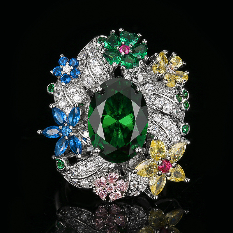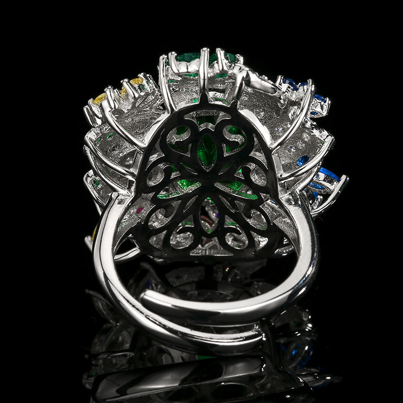 Luxury Vintage Open Ring With Shimmering Peacock Green Gemstone, Elegant Light Luxury...