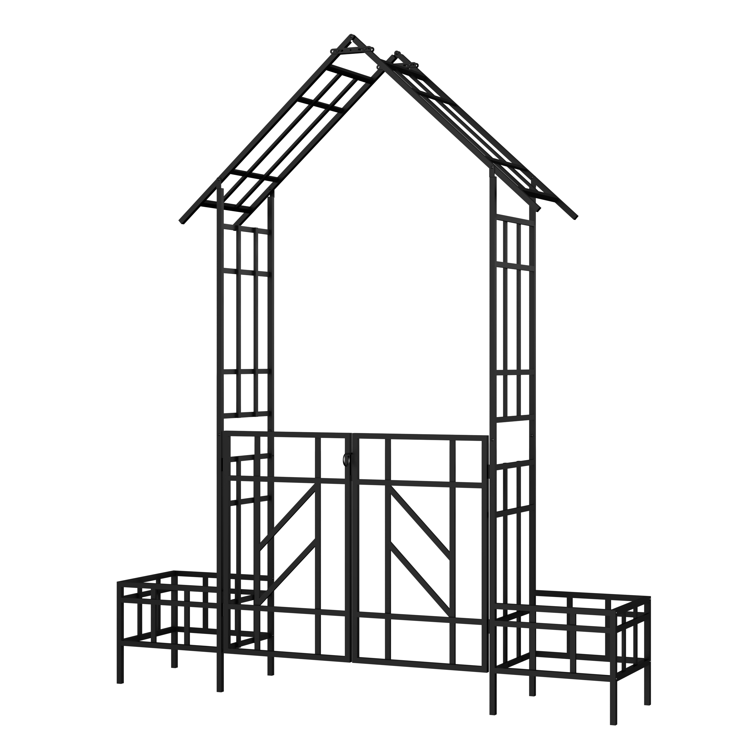 Product Name:Metal Garden Arch with Gate with planter W80.71*H97.24 Climbing Plants Support Rose Arch Outdoor Black