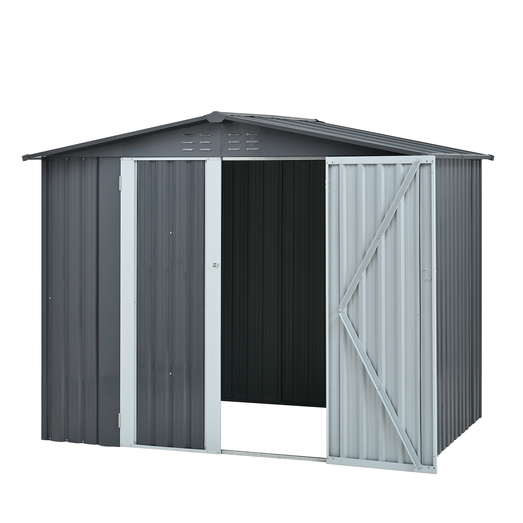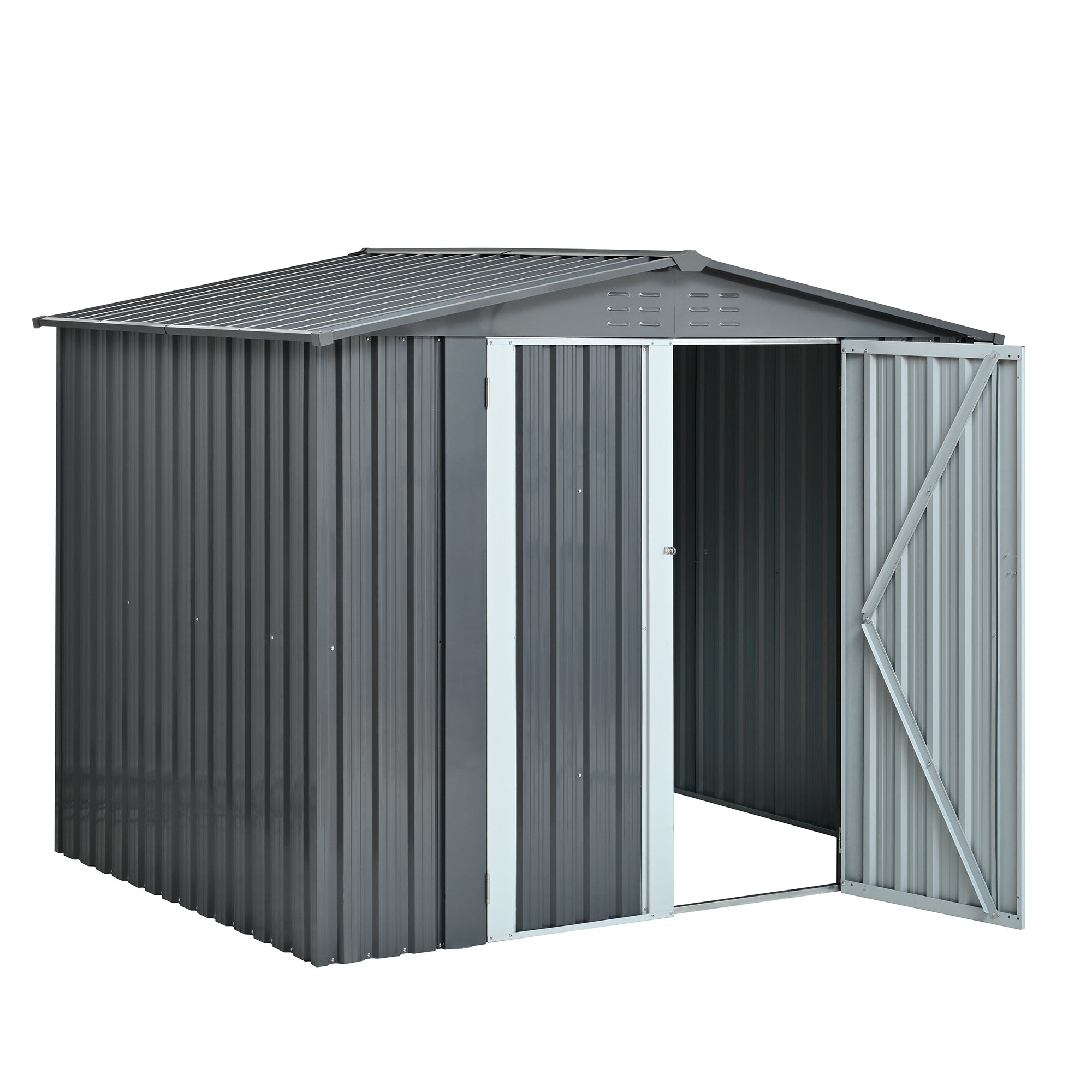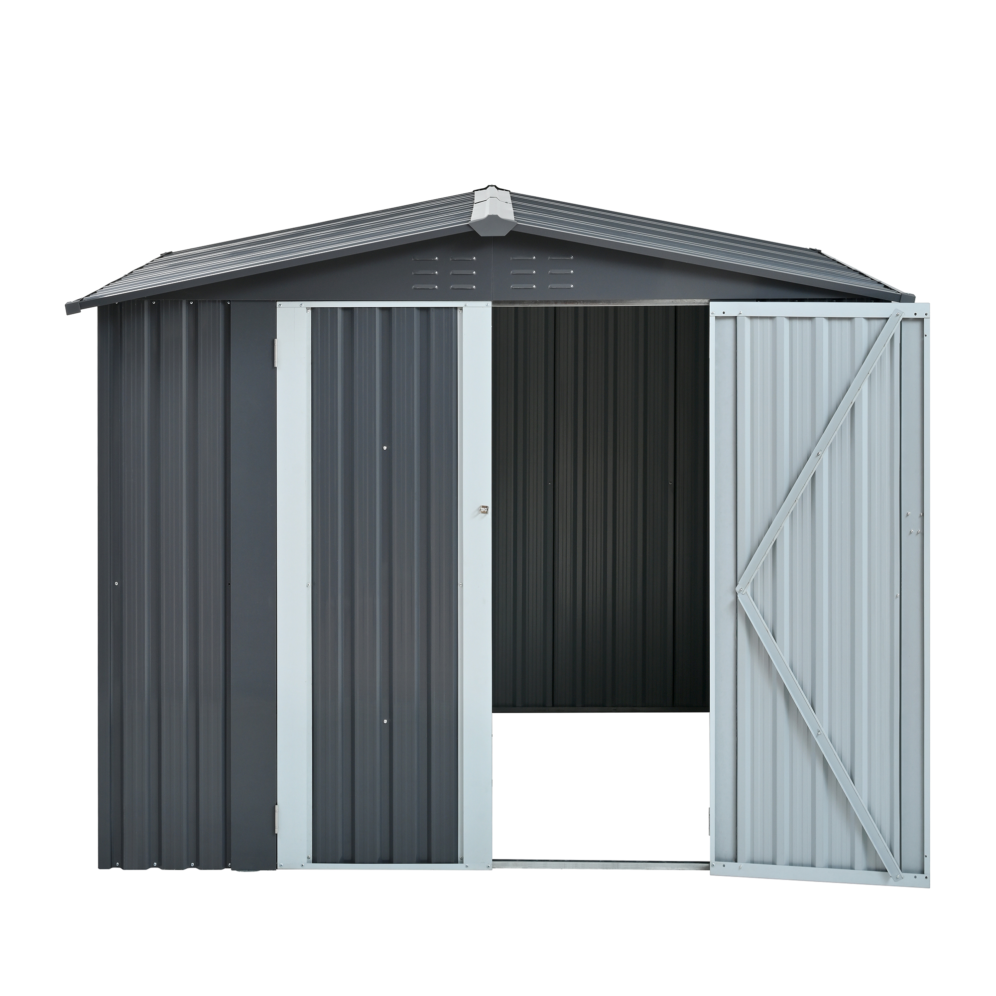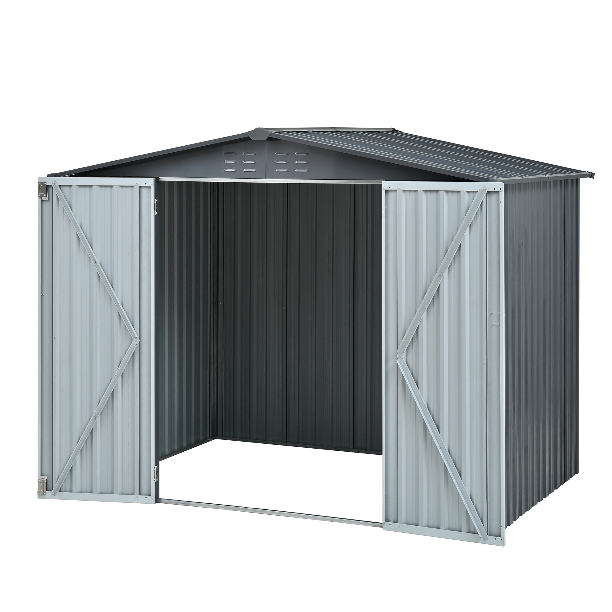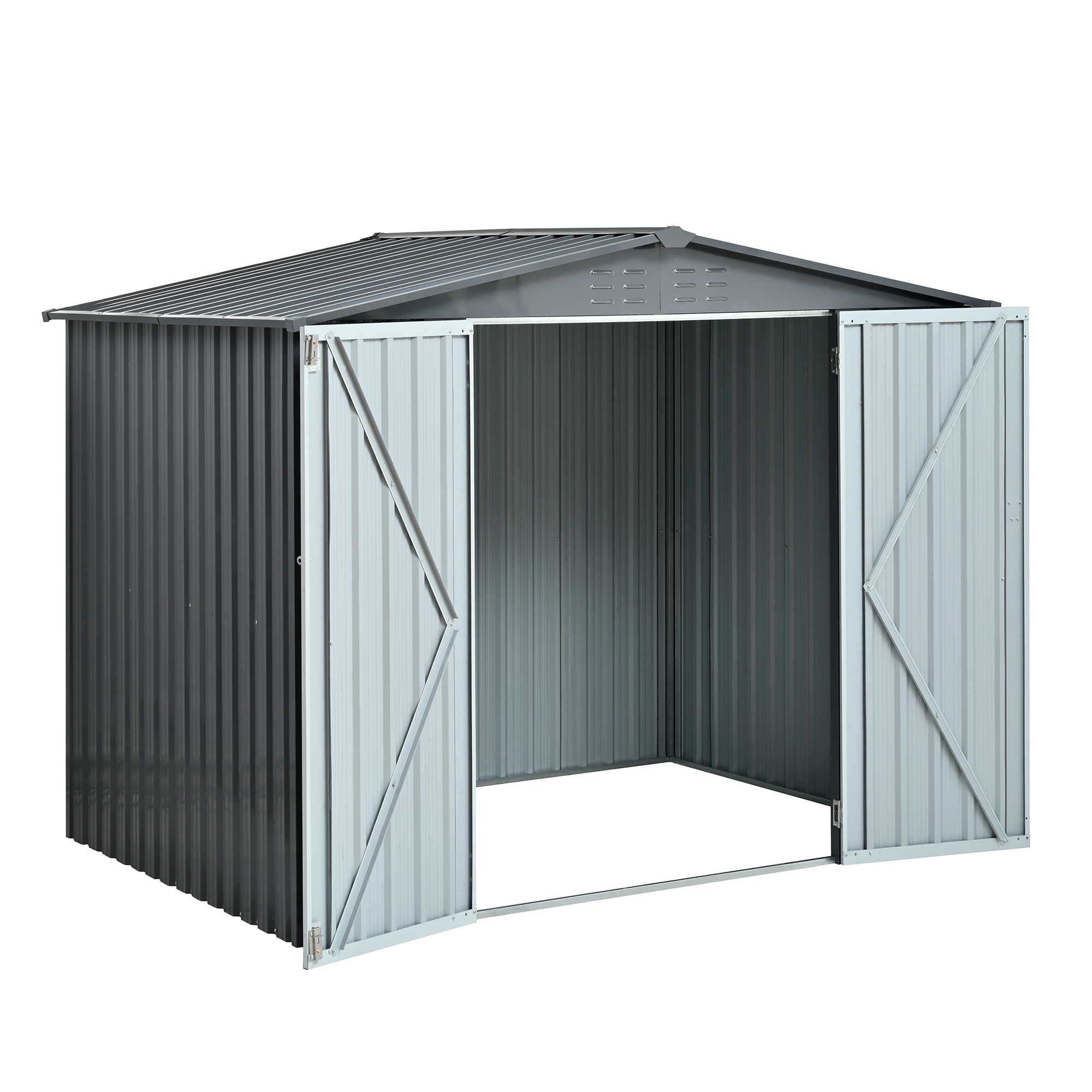 Metal Storage Shed With Double Doors, Heavy Duty Galvanized Steel Outdoor Garden Shed For...
