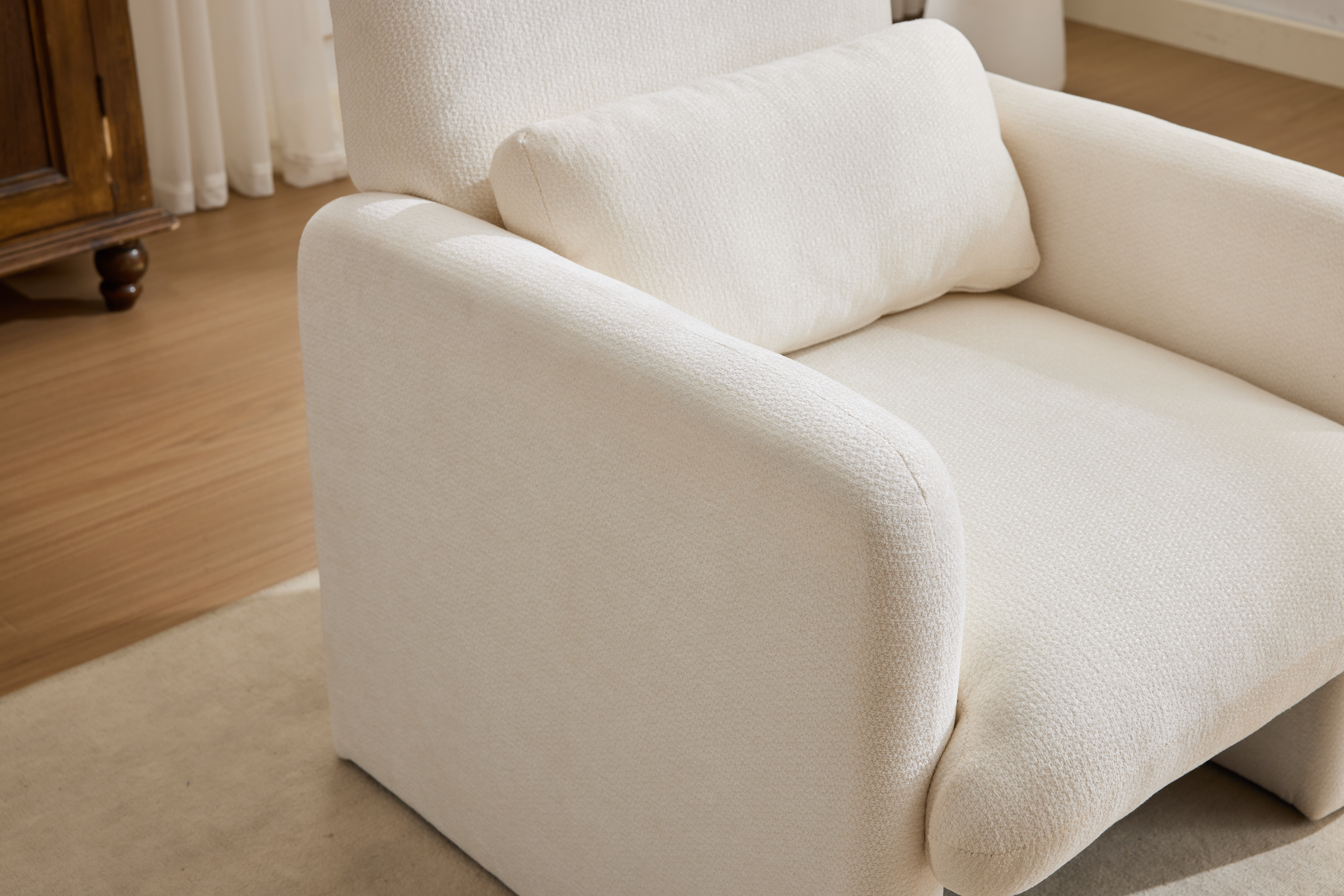Product Name:Modern Accent Chair, Contemporary Boucle Fabric Accent Armchair Comfy Upholstered Leisure Single Sofa Chair for Living Room Bedroom Apartment Office - white