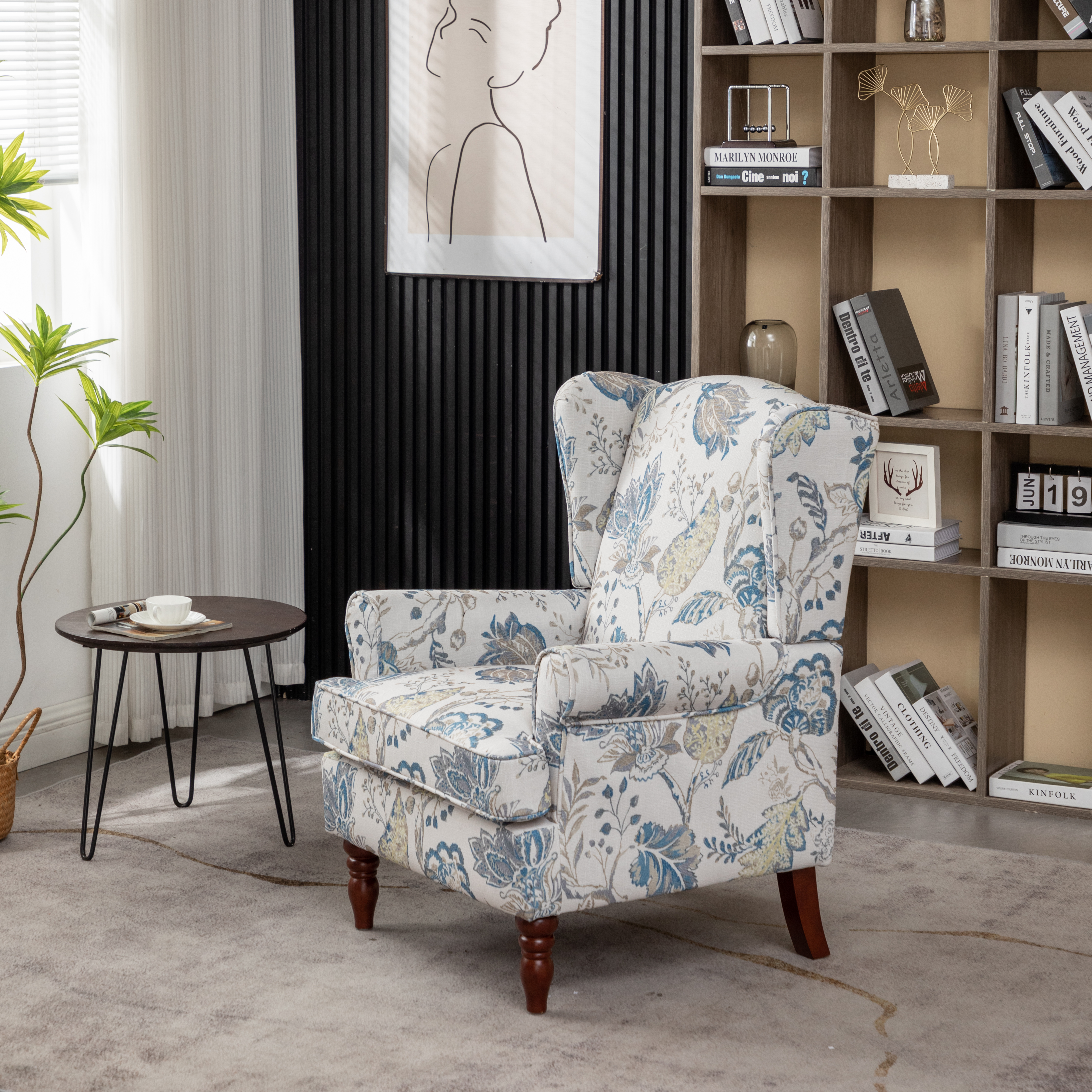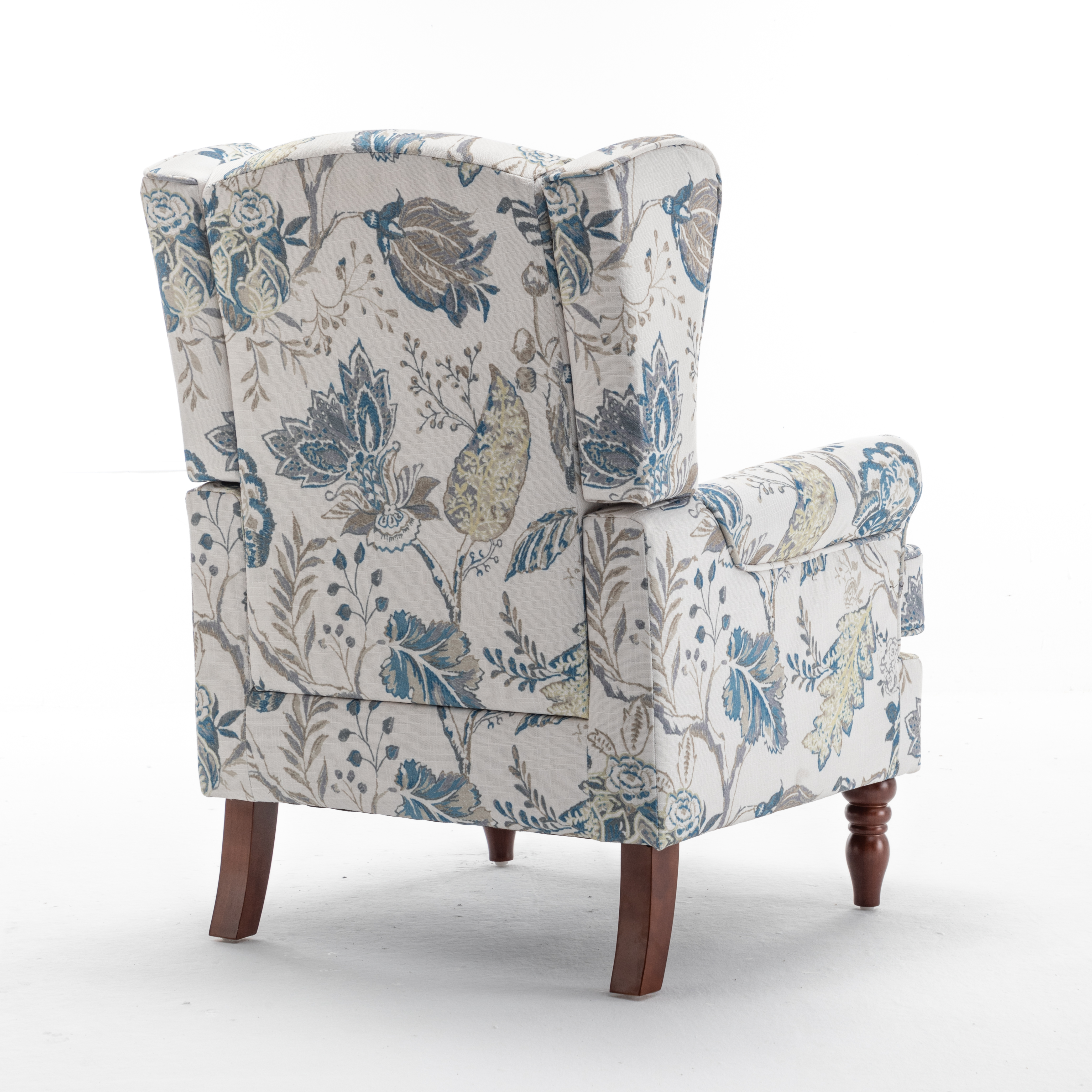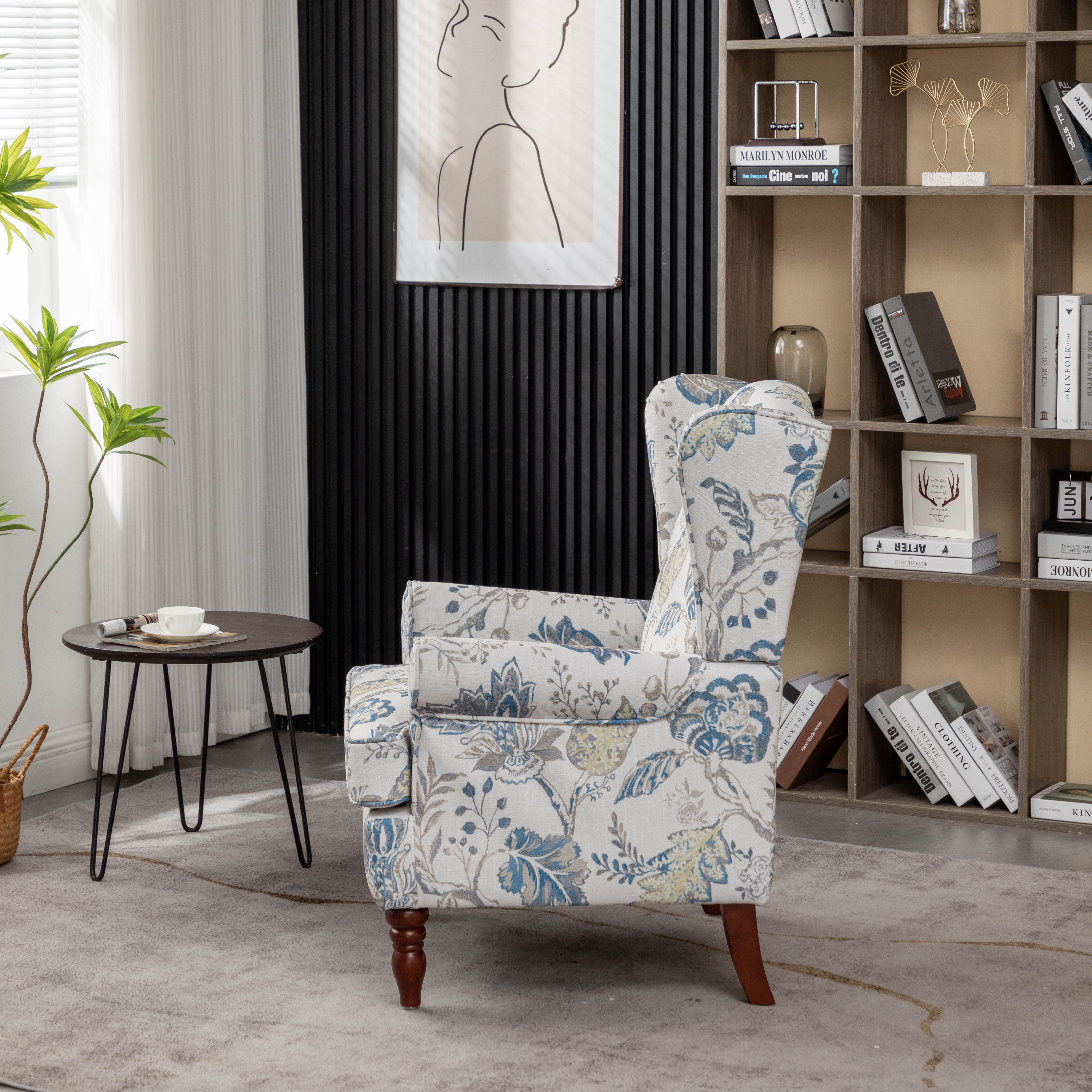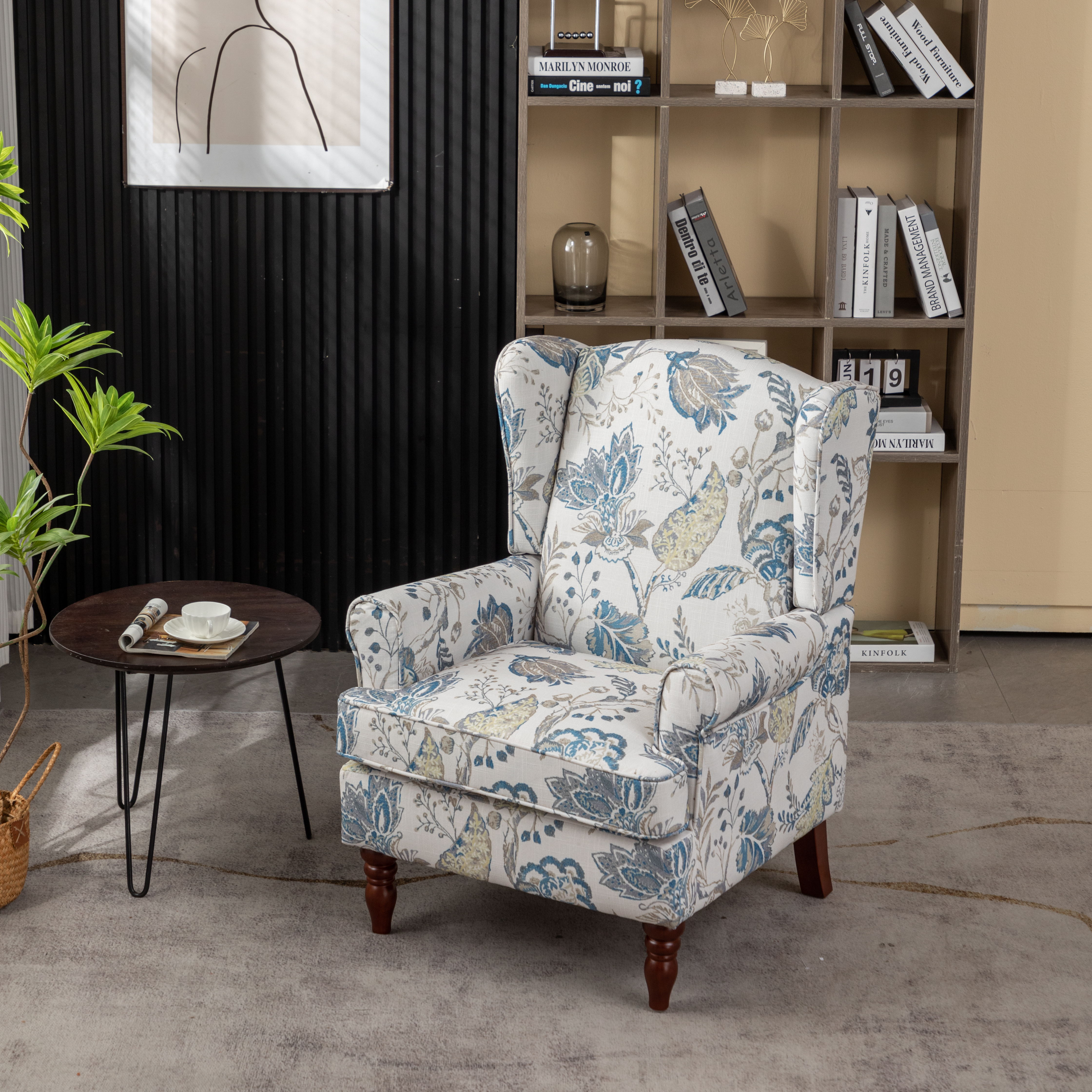 - CLASSIC WING BACK CHAIR DESIGN: The seat cushion and backrest of the modern accent living room chair are made of high-density sponge, increasing comfort. Printed fabrics are not prone to pilling and wear, and can quickly absorb your sweat, keeping you cool and fresh even in hot summersELEGANT SOLID WOOD LEGS: The Roman-style leg structure is precisely designed to match the height of the human sitting posture, providing more stability. A sturdy frame of the club chair can support a person weighi