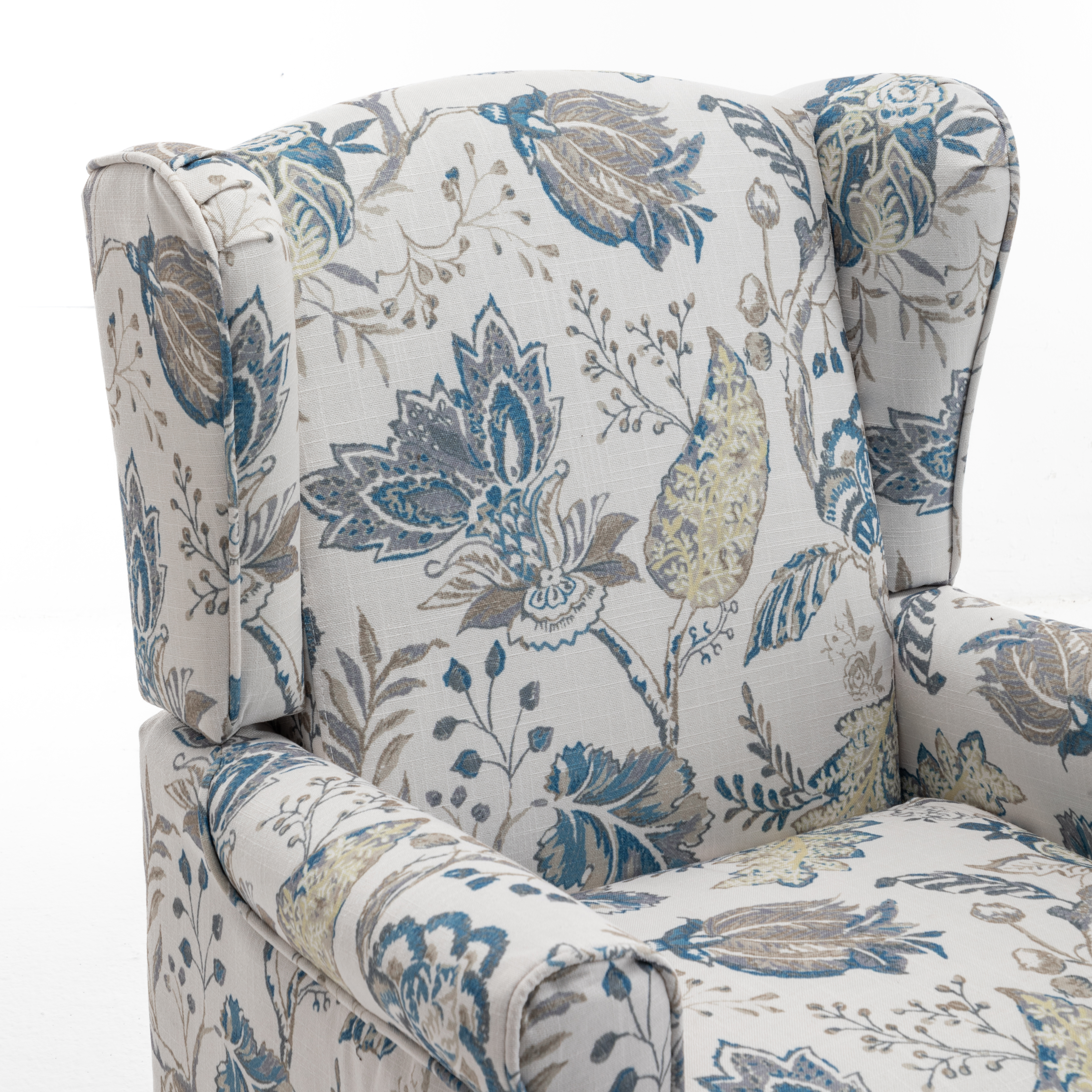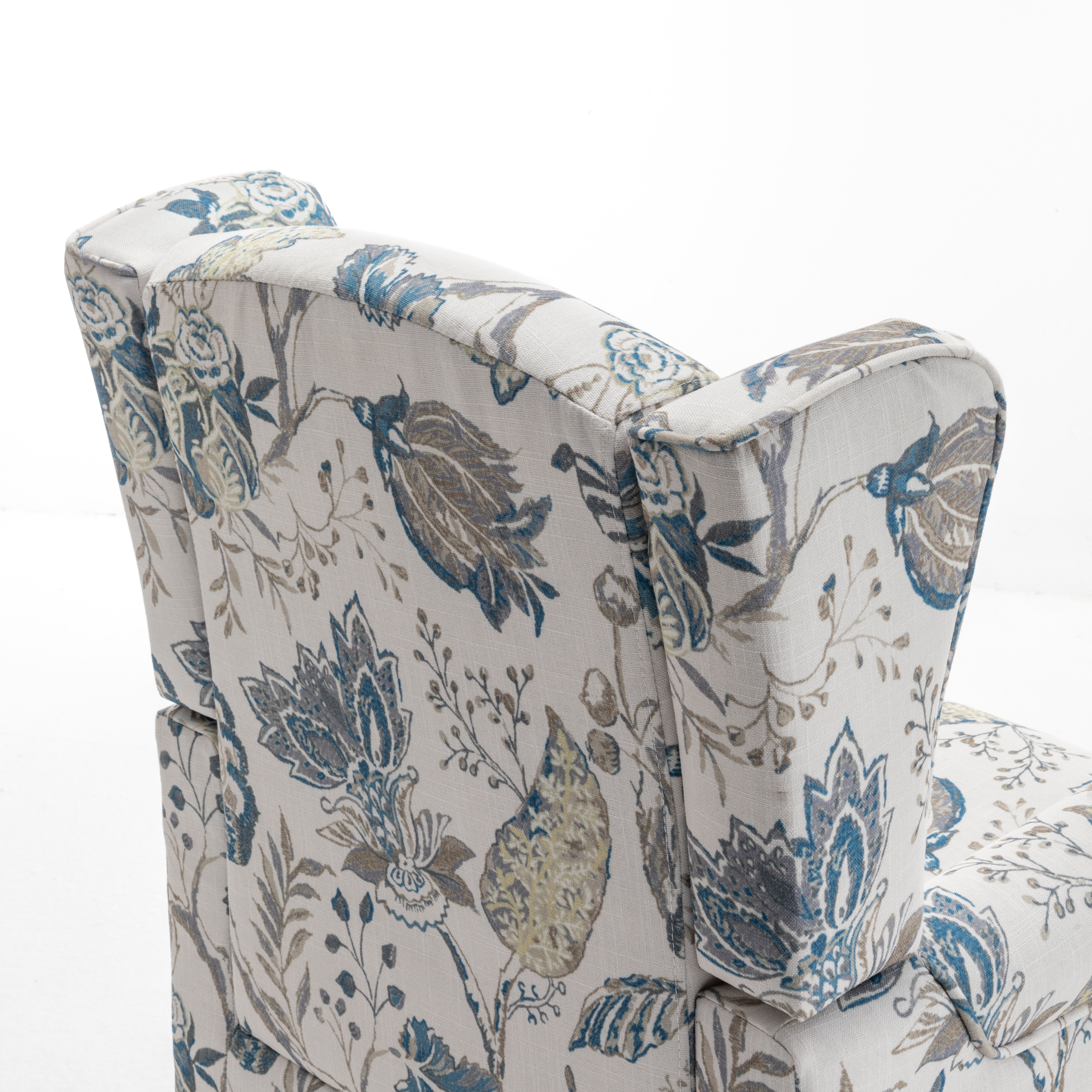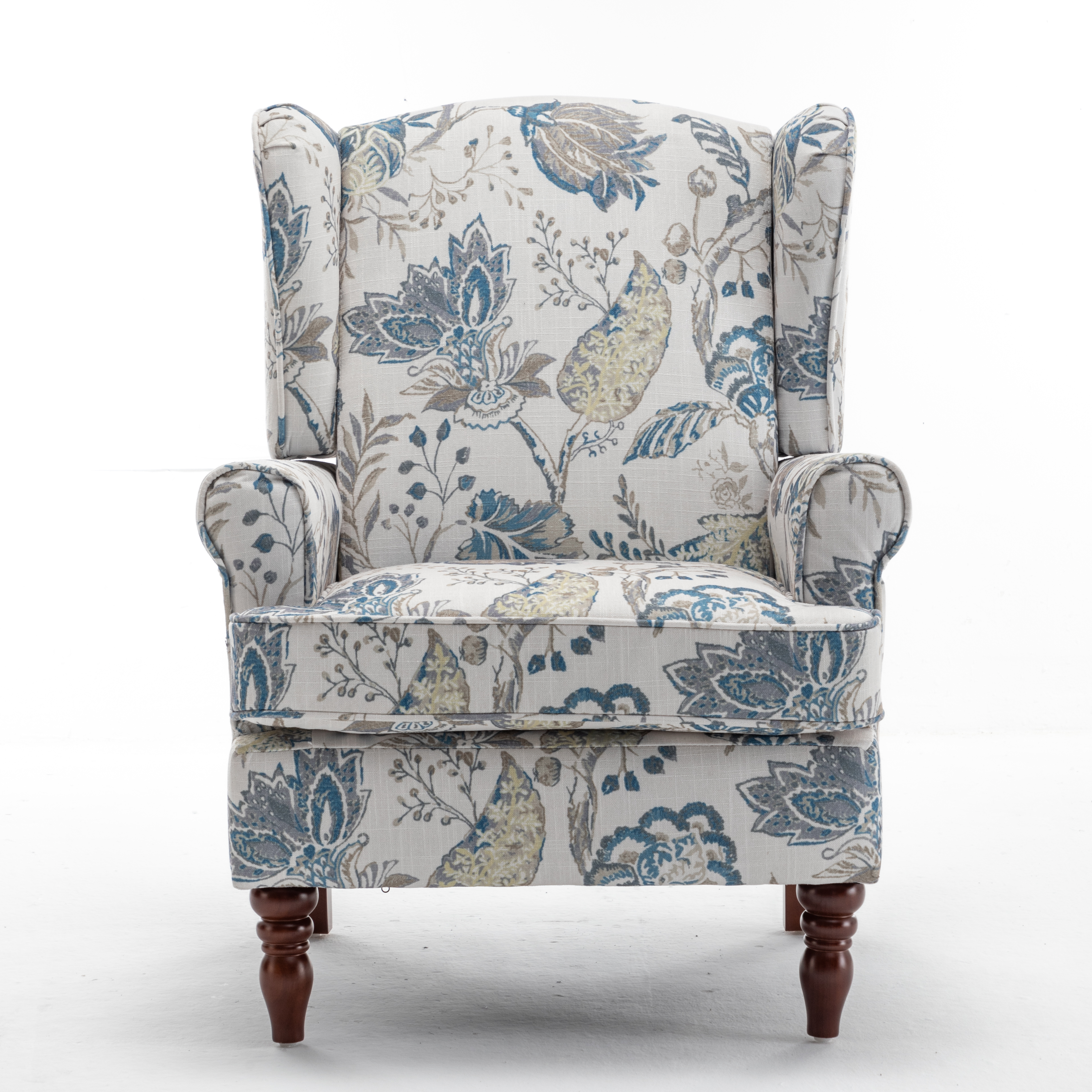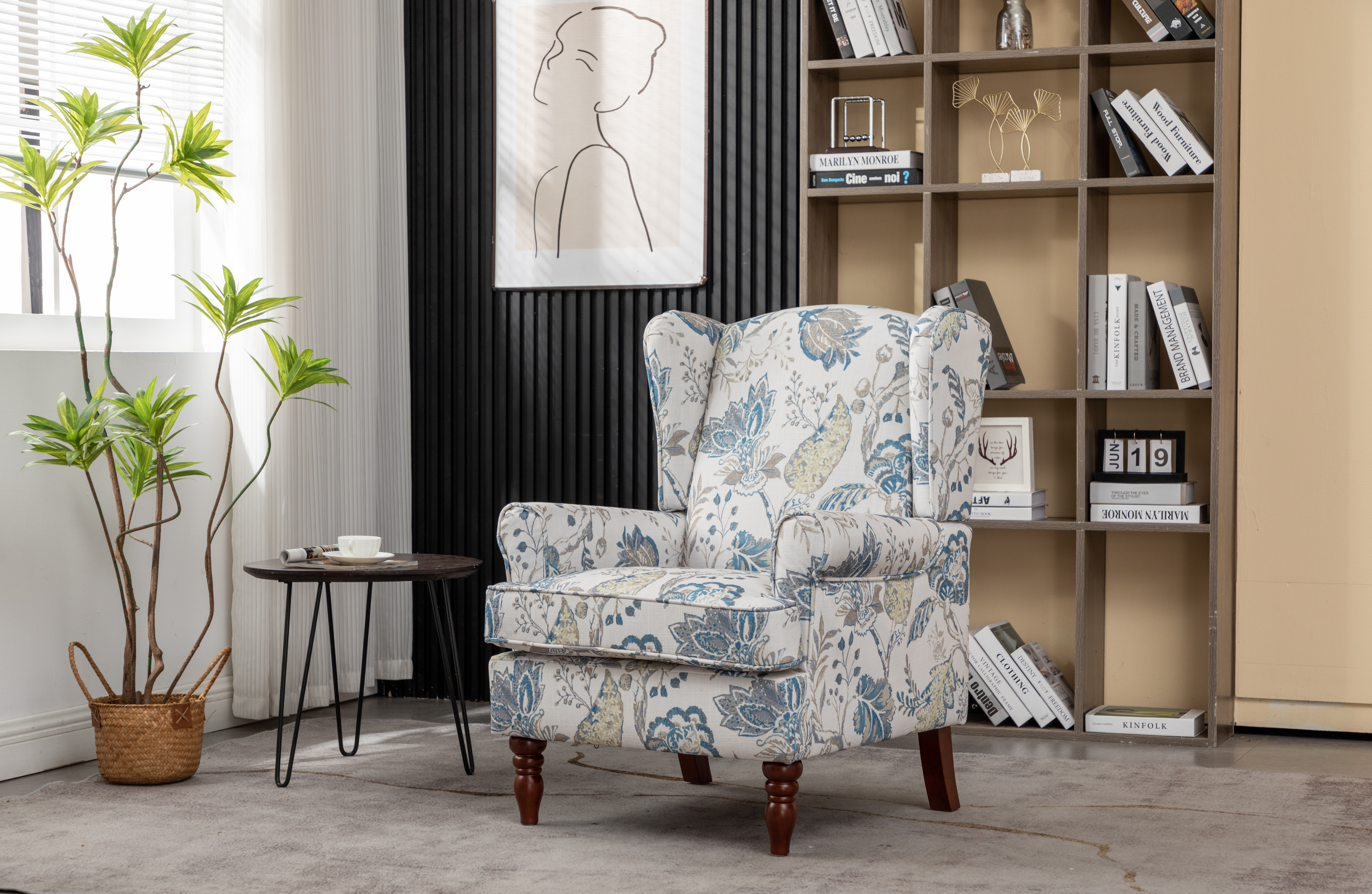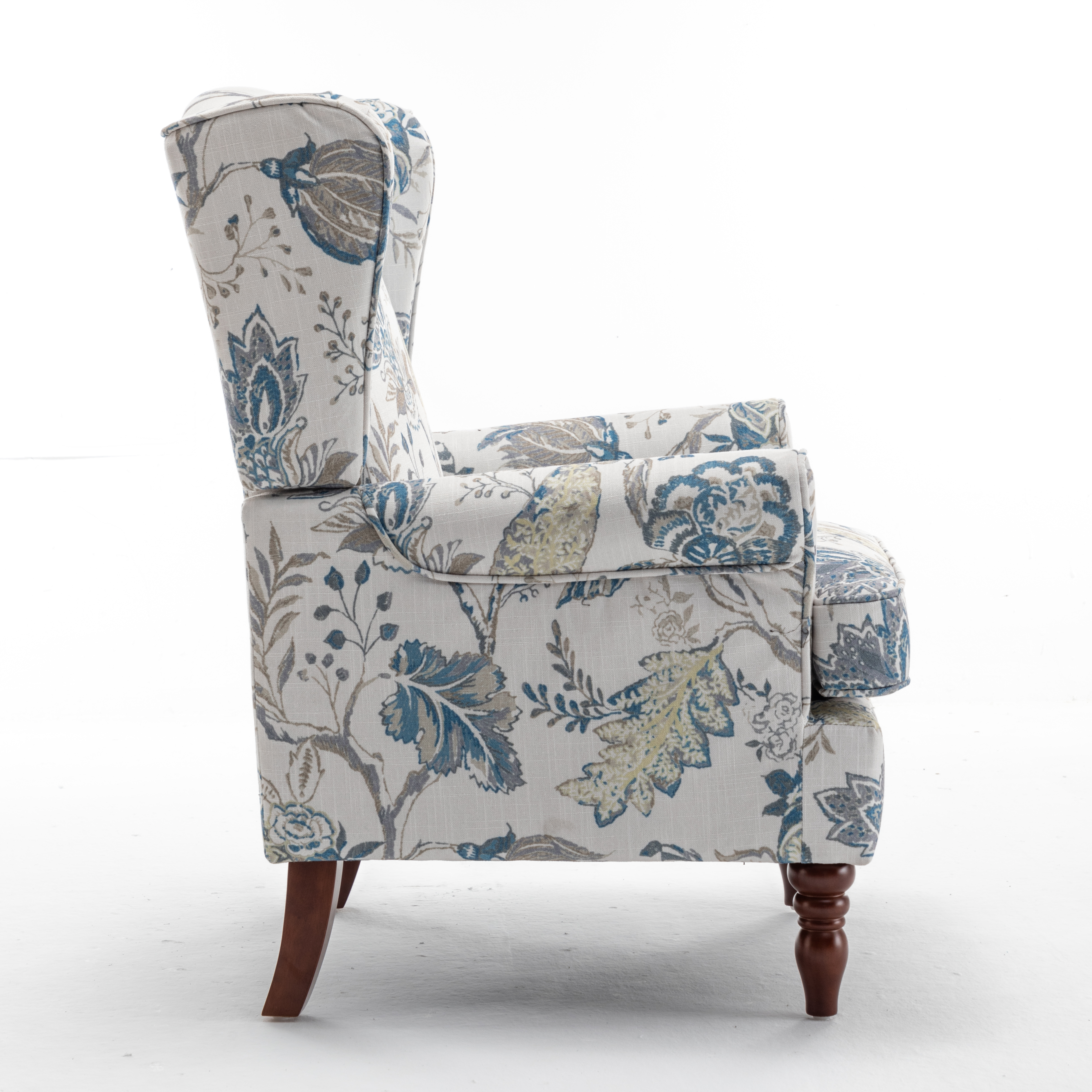 - CLASSIC WING BACK CHAIR DESIGN: The seat cushion and backrest of the modern accent living room chair are made of high-density sponge, increasing comfort. Printed fabrics are not prone to pilling and wear, and can quickly absorb your sweat, keeping you cool and fresh even in hot summersELEGANT SOLID WOOD LEGS: The Roman-style leg structure is precisely designed to match the height of the human sitting posture, providing more stability. A sturdy frame of the club chair can support a person weighi