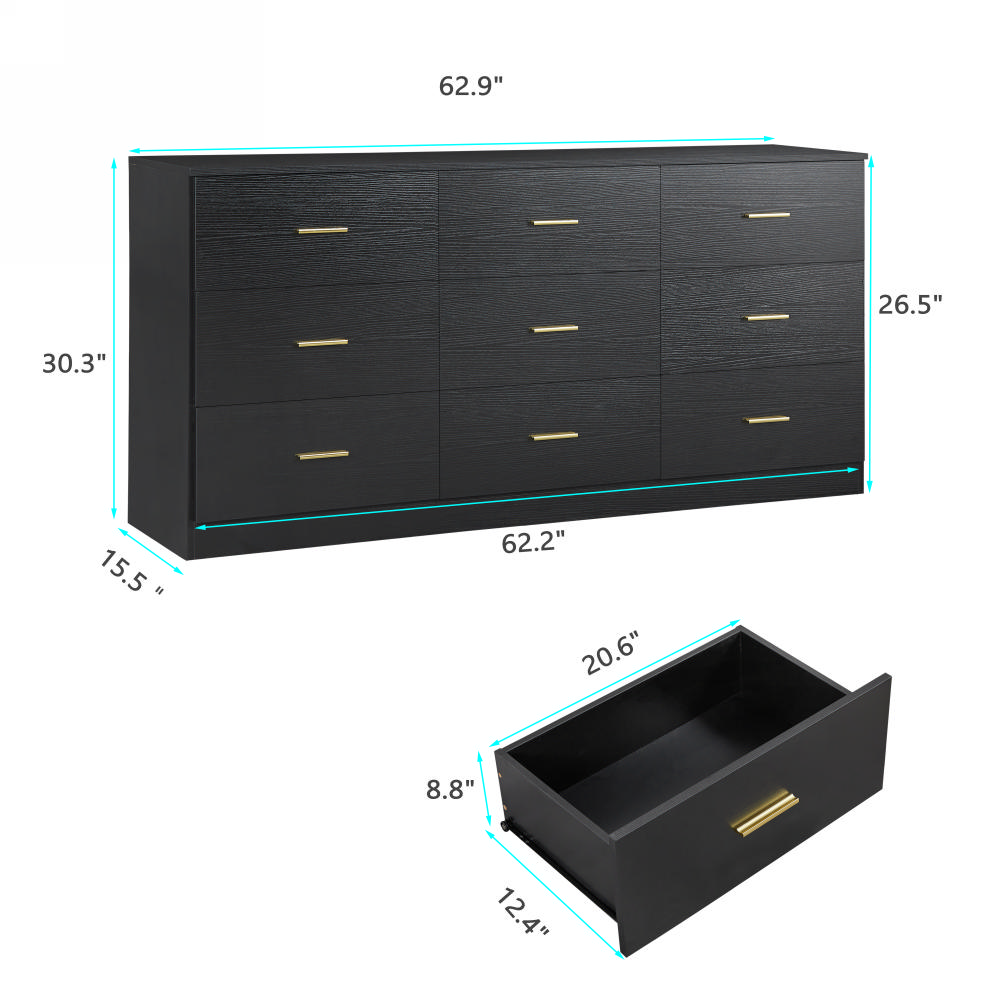 Product Specifications: Basic information Product Type:Single Box Product Product Name:Modern Black 9-Drawer Dresser for Bedroom - Ample Storage Wide Chest of Drawers, Sturdy & Safe Origin:China Color:Black Materi...