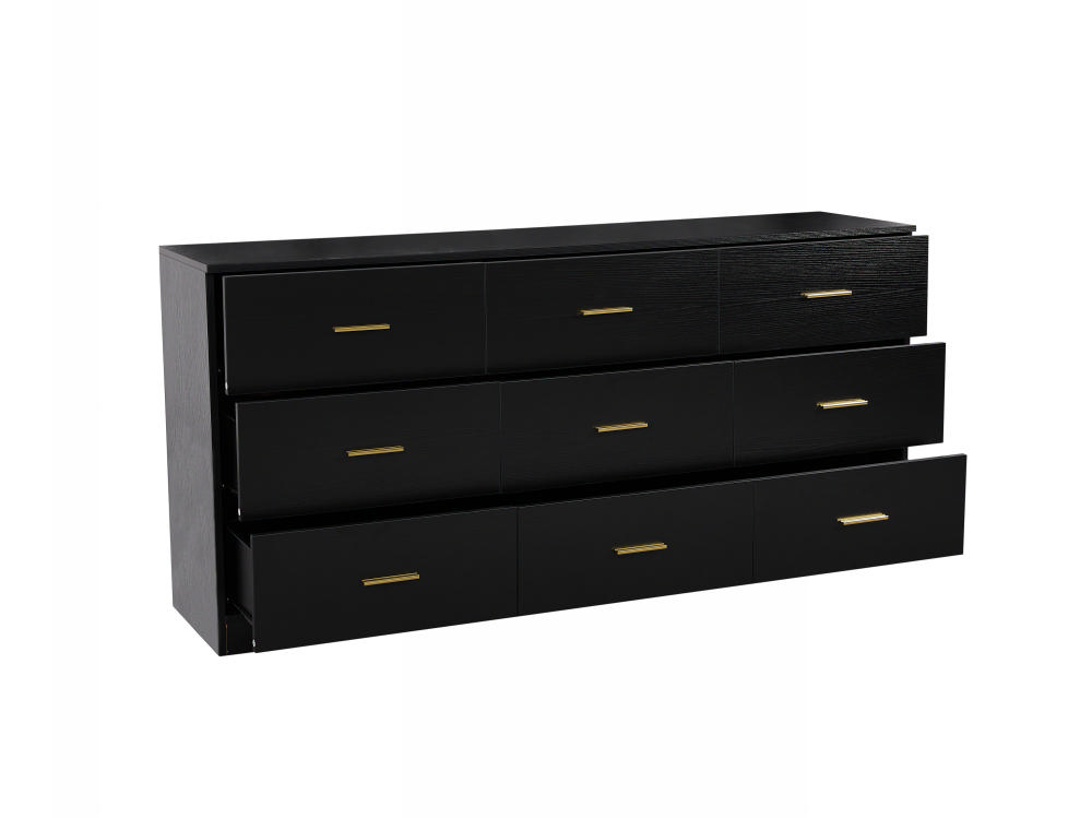 Product Name:Modern Black 9-Drawer Dresser for Bedroom - Ample Storage Wide Chest of Drawers, Sturdy & Safe