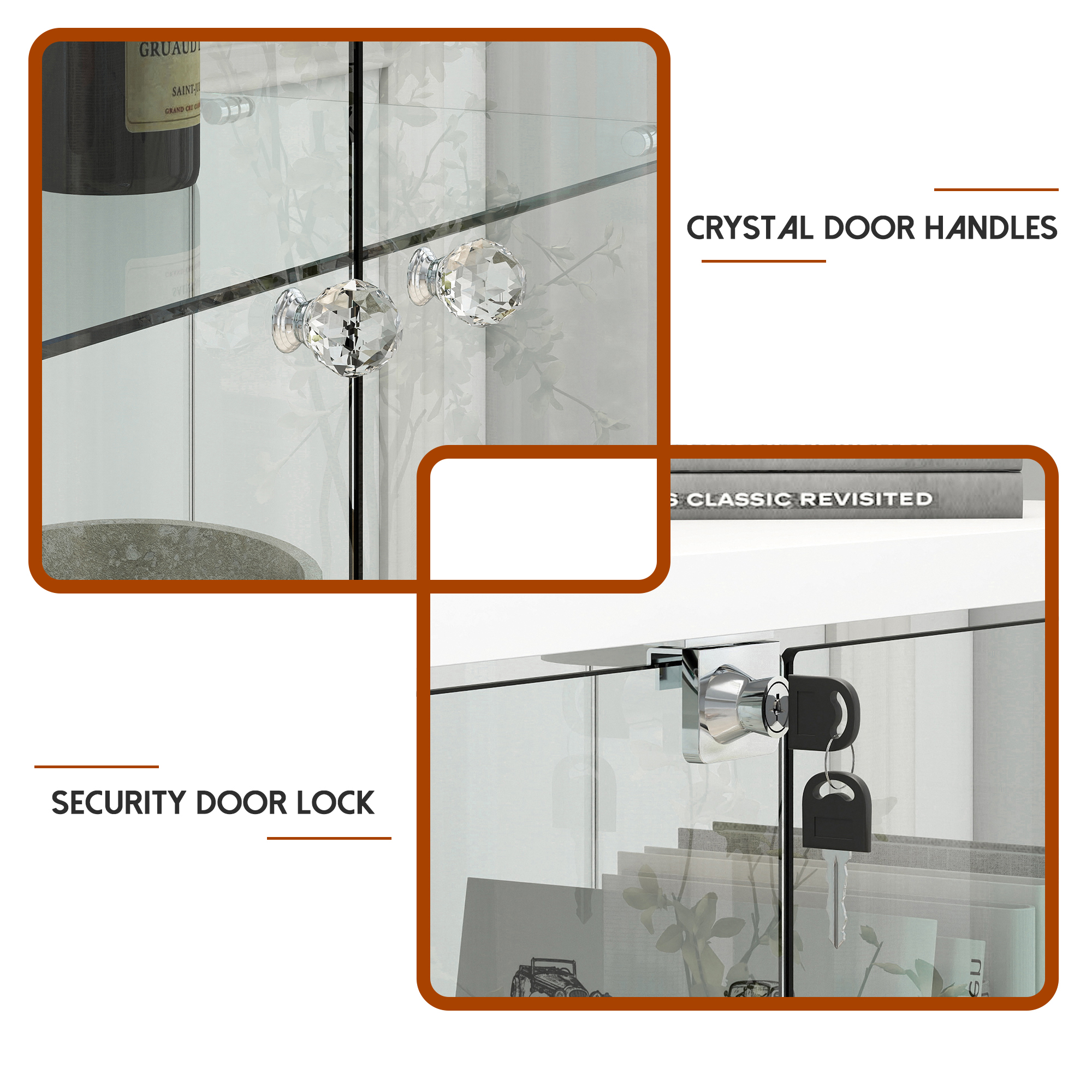 Specification Product Information Product Type :Combo Item Product Name:Modern Glass Display Cabinet with Large Drawers,Quick-assembly Antique Cabinet with LED lights,Tempered Glass Bookshelf,2-Door Storage Case with...