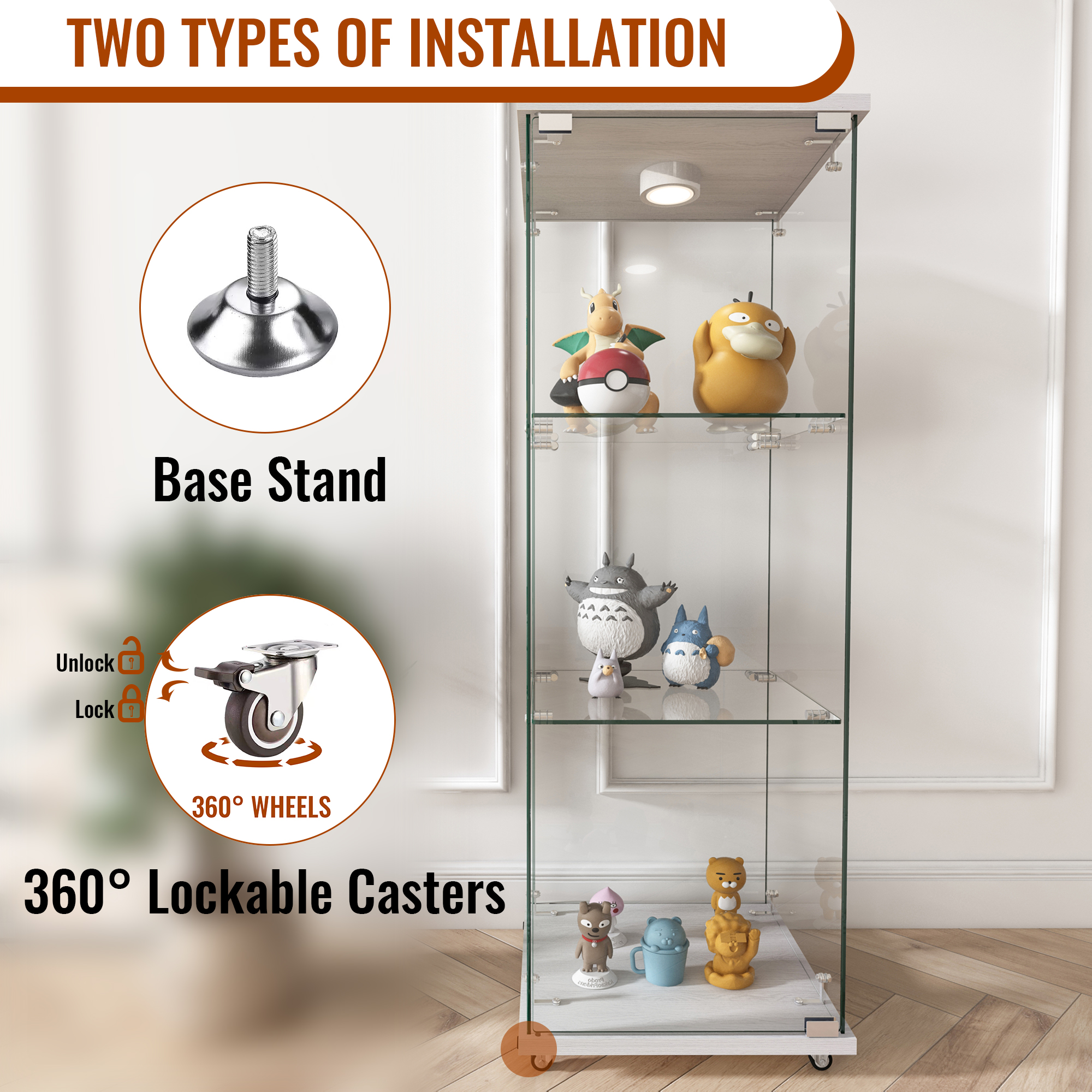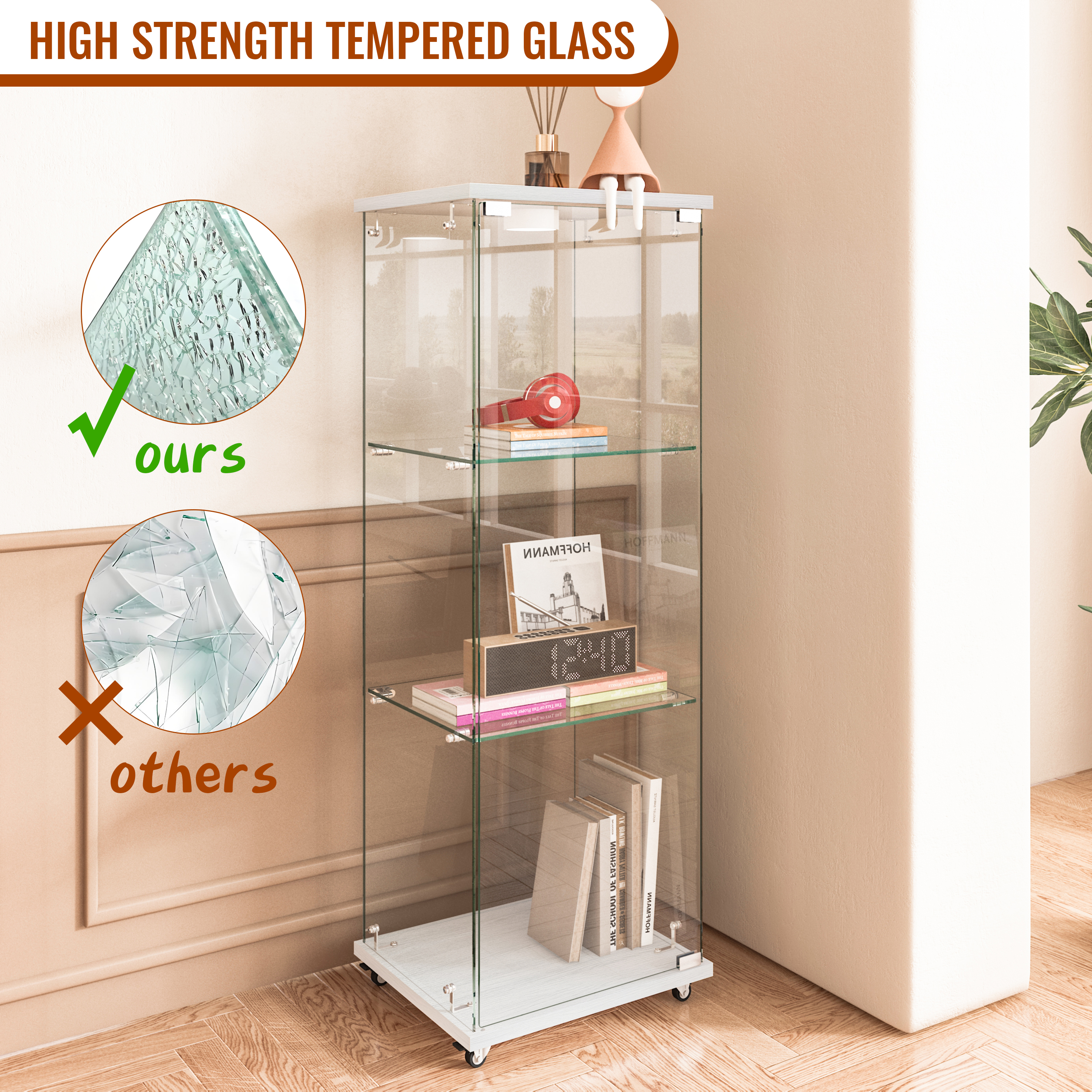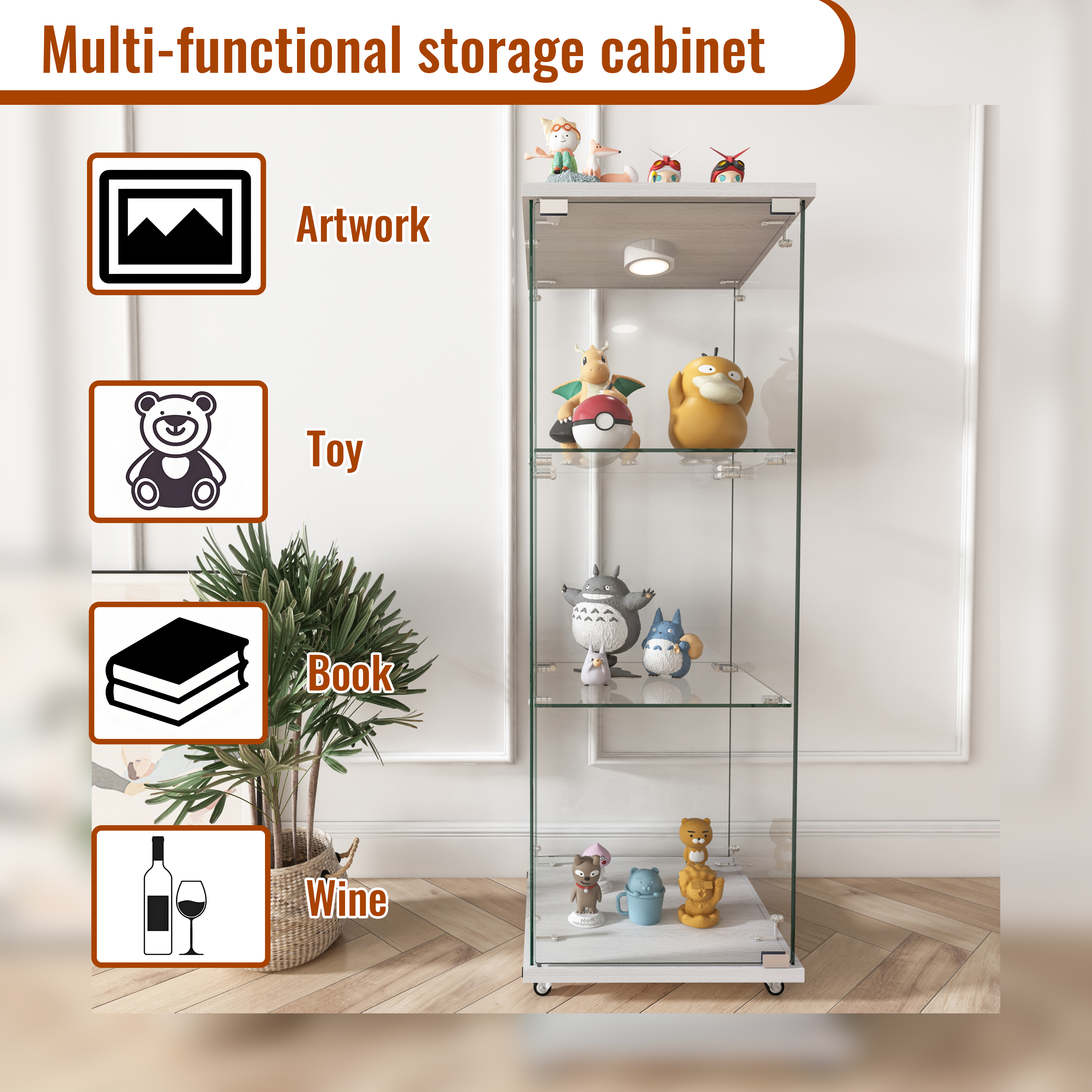 Specification Product Information Product Type :Single Box Product Product Name:Modern Glass Display Cabinet with LED lights, Quick-assembly Antique Cabinet, Tempered Glass Bookshelf, Suitable for Living Room and Bedr...
