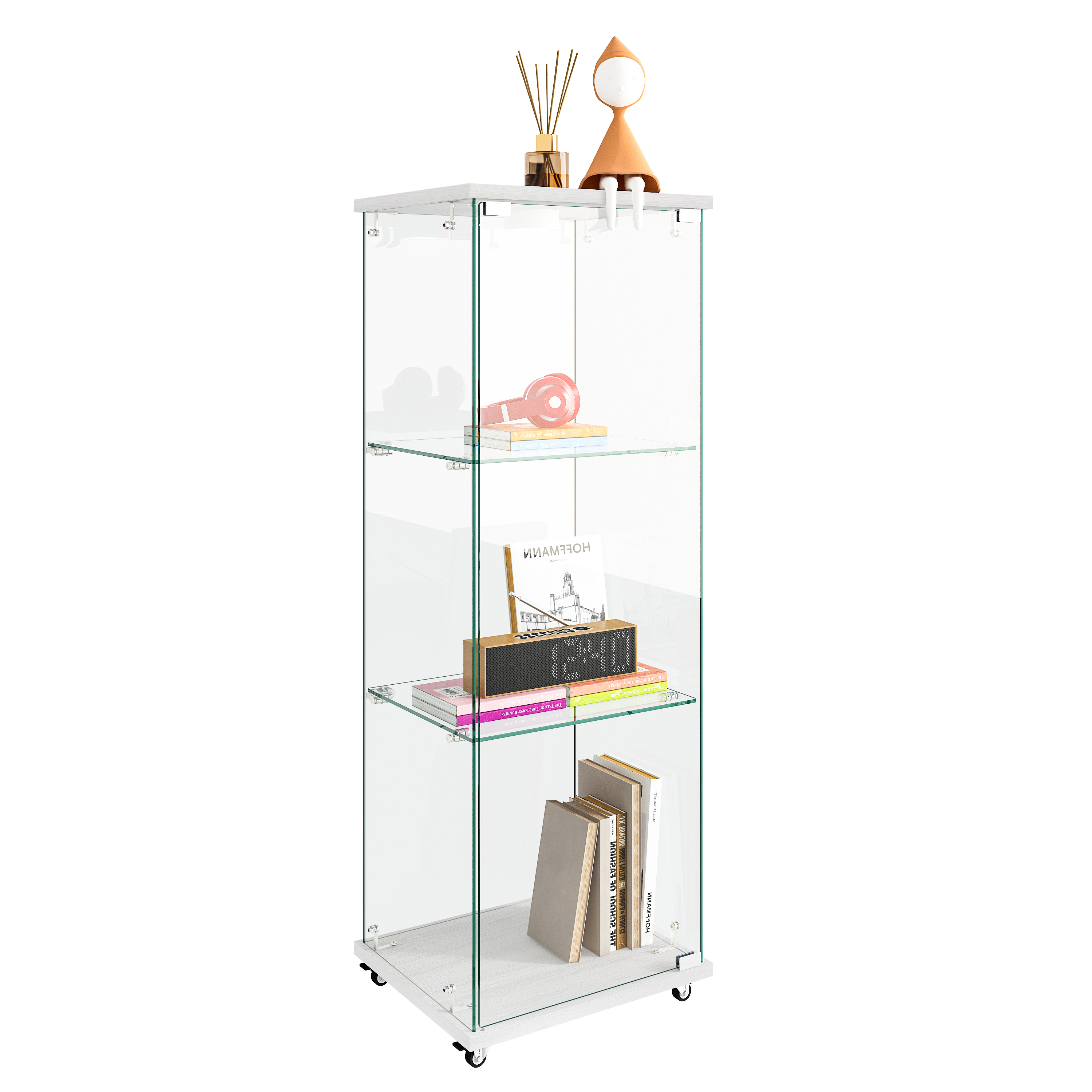 Product Name:Modern Glass Display Cabinet with LED lights, Quick-assembly Antique Cabinet, Tempered Glass Bookshelf, Suitable for Living Room and Bedrooms, 1-door 3-shelf, White