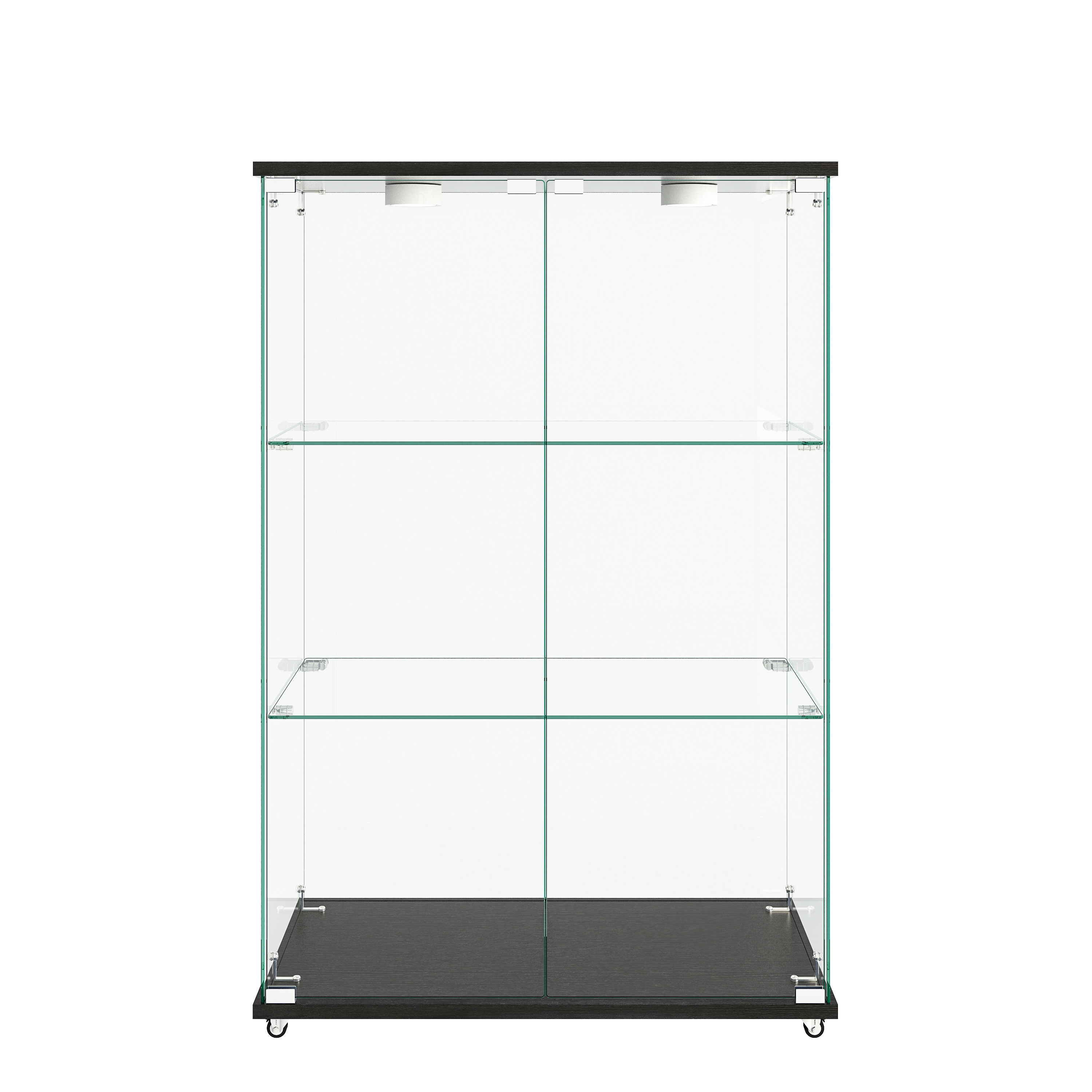 Product Name:Modern Glass Display Cabinet with LED lights, Quick-assembly Antique Cabinet, Tempered Glass Bookshelf, Suitable for Living Room and Bedrooms, 2-door 3-shelf, Transparent+Black (Old Sku:W241P242926)