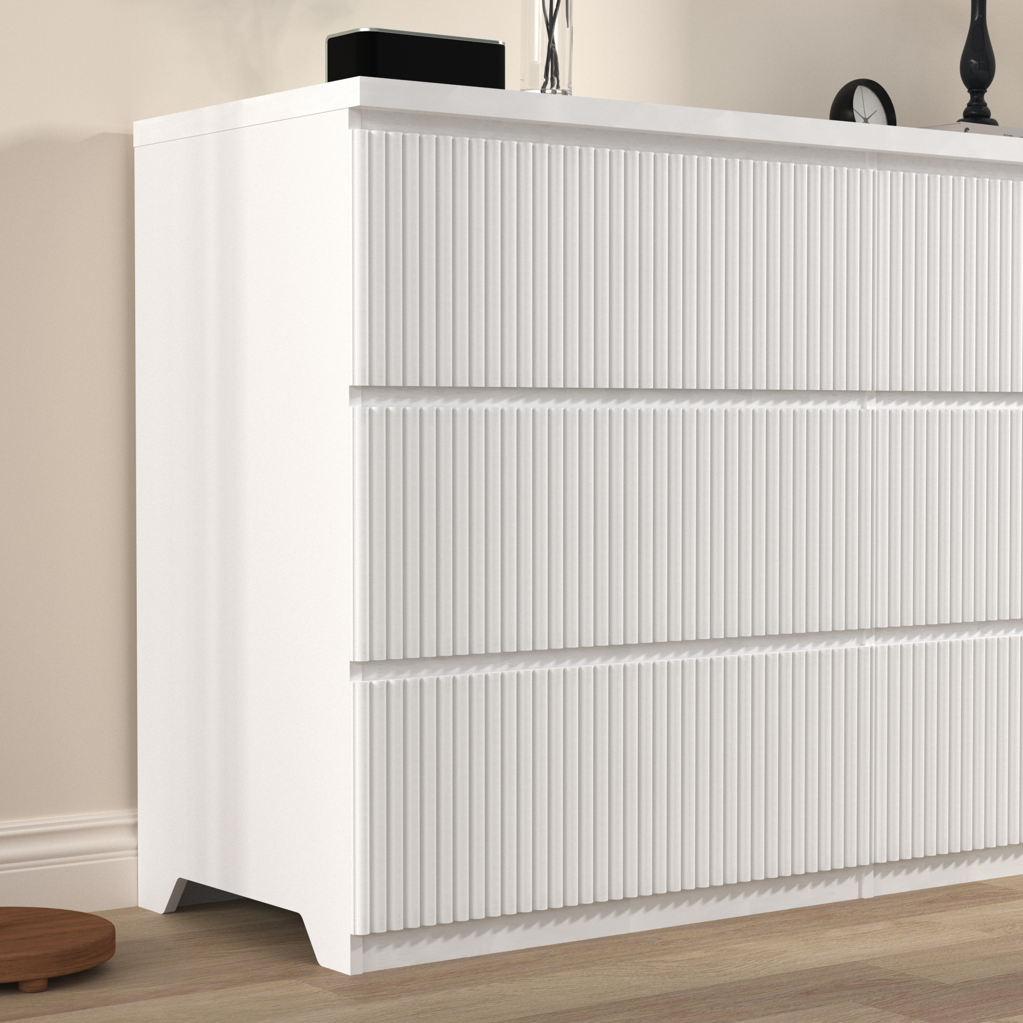 Product Specifications: Basic information Product Type:Single Box Product Product Name:Modern White 6 Drawer Dresser, Wave Panel Drawer Fronts, Storage Cabinet, Versatile Chest of Drawers for Bedroom, Living Room - Sl...