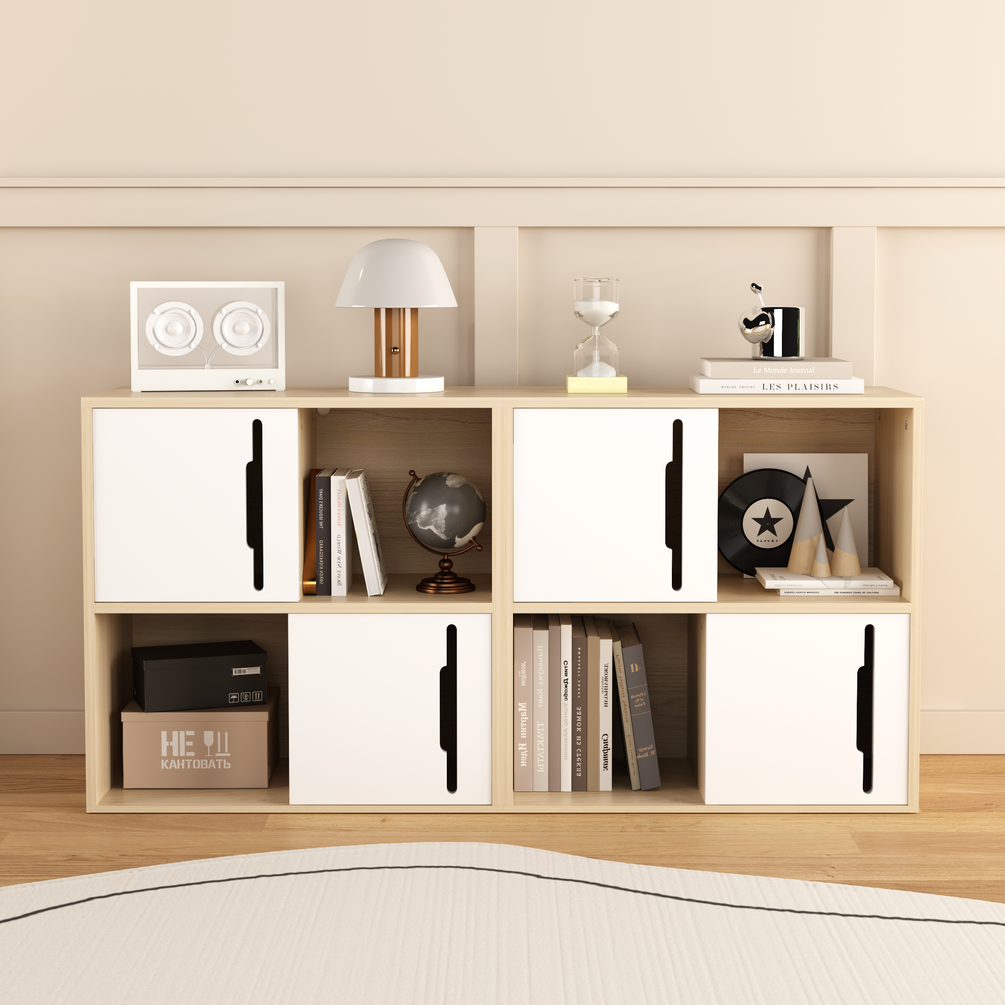 - Dual Sliding Doors for Hidden Storage -Features two smooth-sliding cabinet doors with elongated cut-out handles, offering a stylish way to keep clutter out of sight. Perfect for storing books, toys, or miscellaneous household items while maintaining a clean aesthetic.