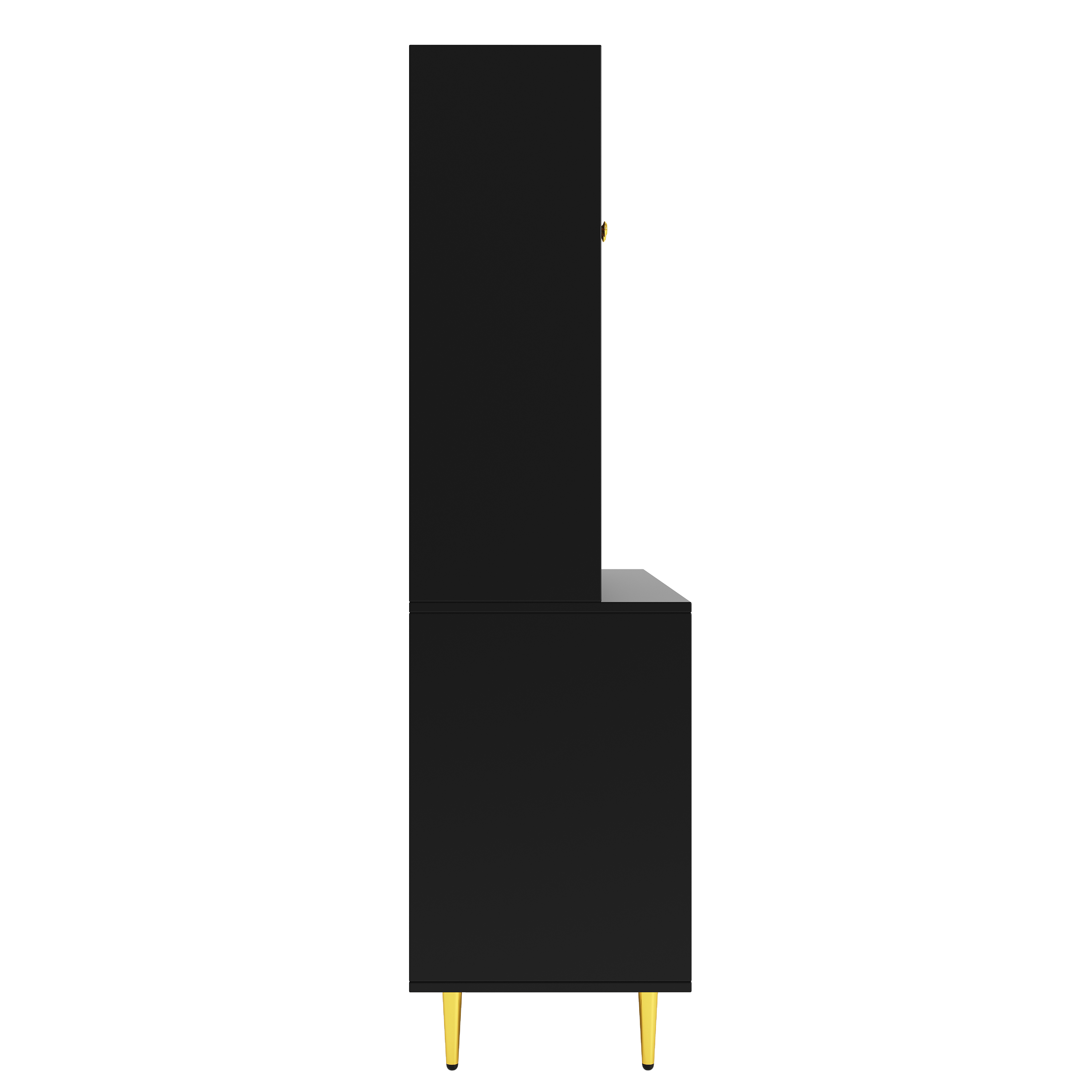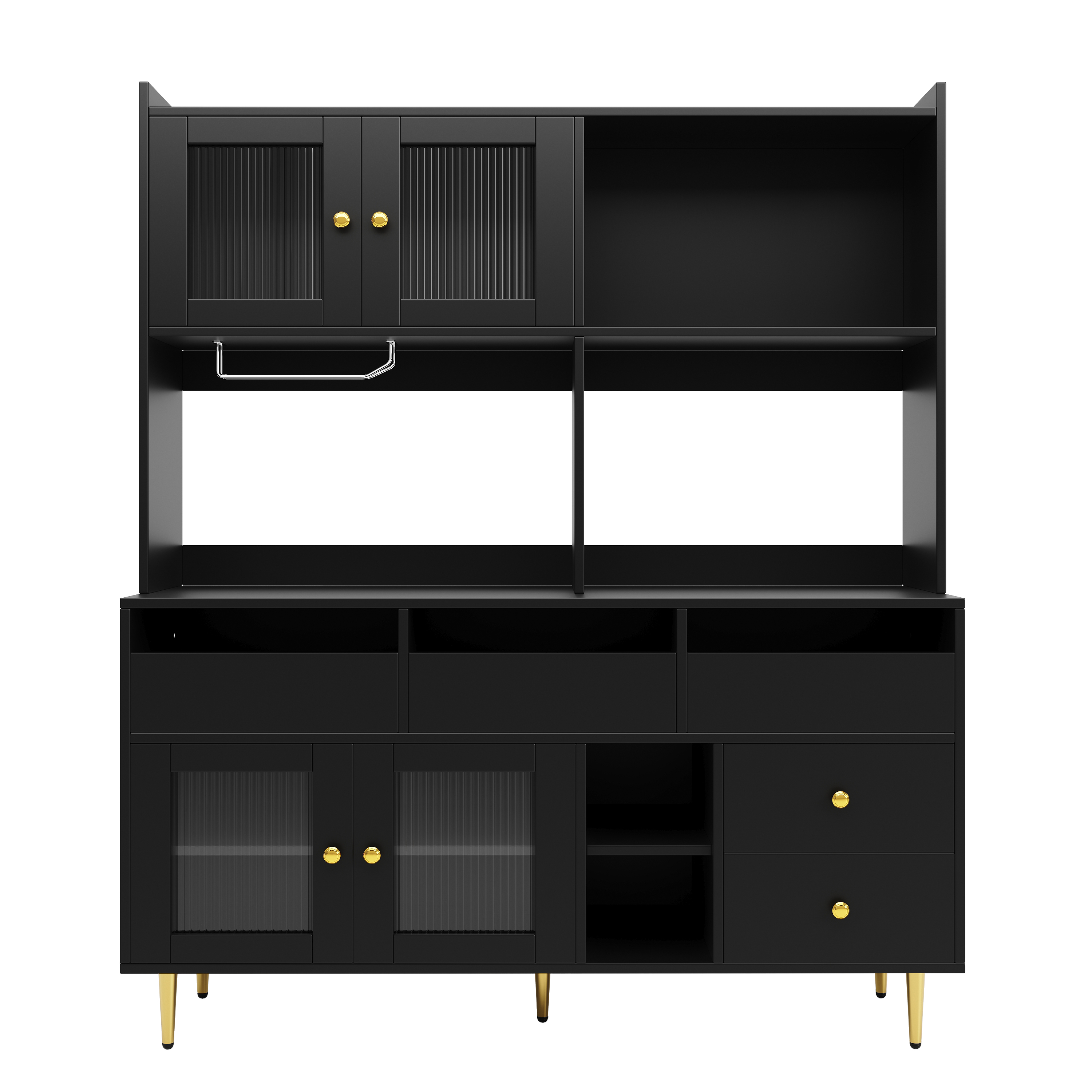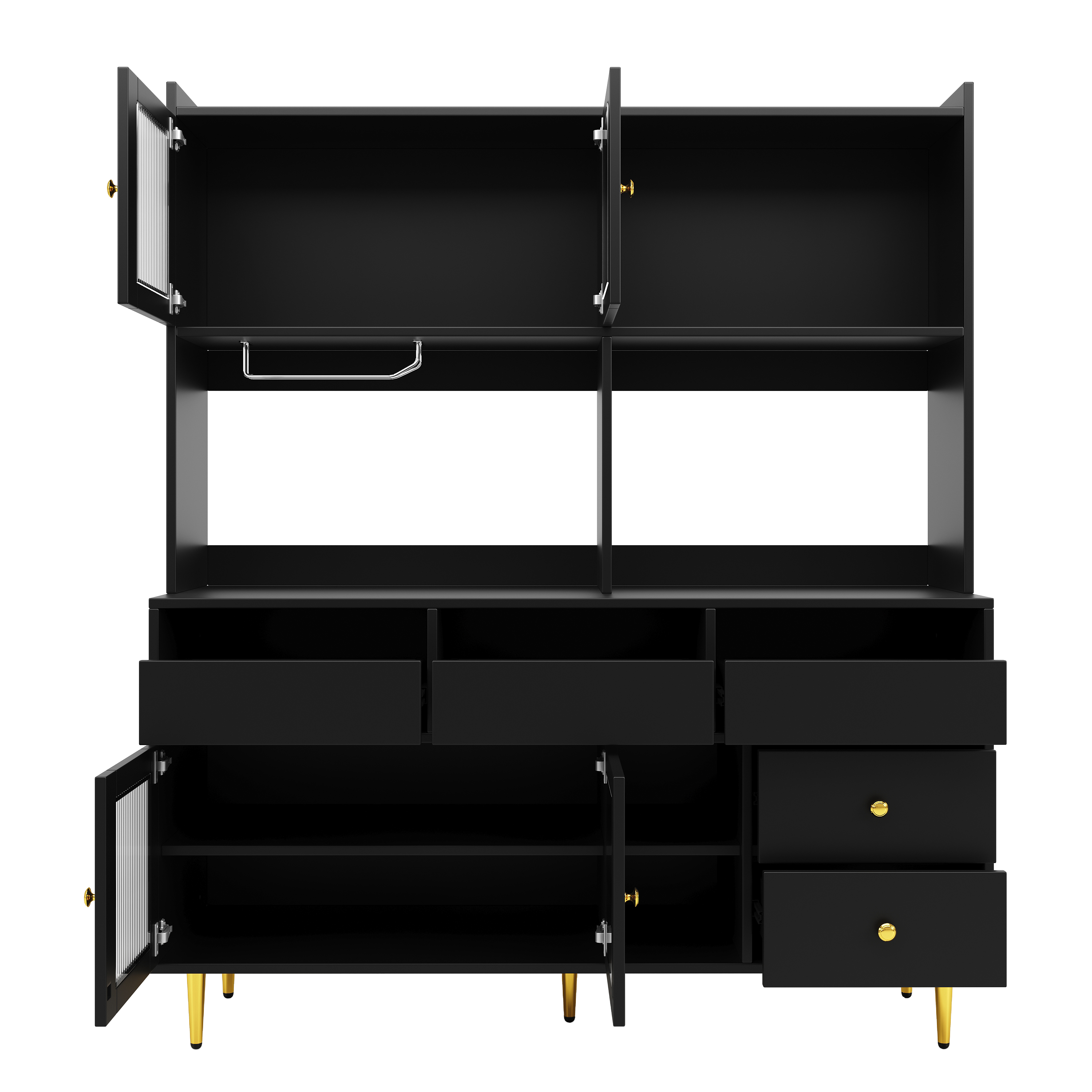 Product Name:Multi-purpose Storage Cabinet(145 x 39 x 171 cm), Modern design, with Changhong glass door, Wine glass holder, Multi-layered storage space, Black with gold decoration, Suitable for home and restaurant