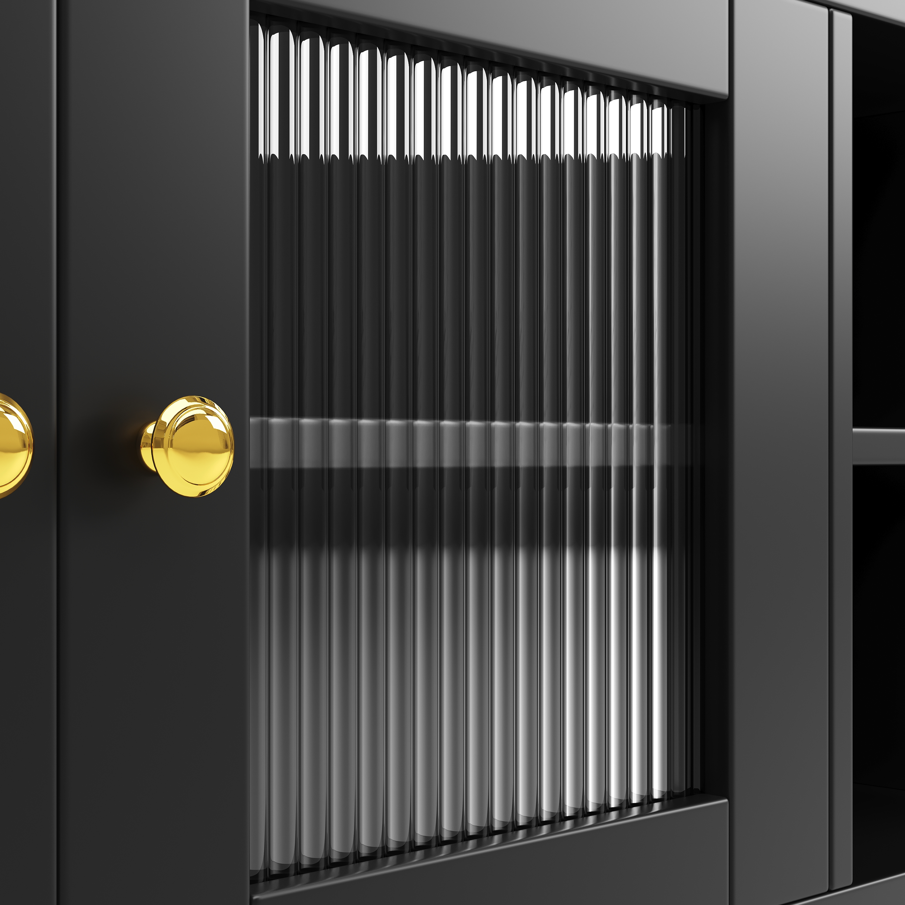 This sideboard is made of high-quality MDF boards and has been finely polished to ensure the stability and durability of the structure, ensuring that it retains its excellent appearance and functionality even after prolonged use. The unique Changhong glass door design not only enhances the overall structure of the cabinet, but also provides a translucent light and shadow effect that allows the cabinet to block storage items while giving it an elegant, blurred beauty. Whether used as a storage cabinet in the dining room, kitchen or as a display cabinet in the living room, it fits in perfectly with the modern living style and becomes the visual centrepiece of the room.
