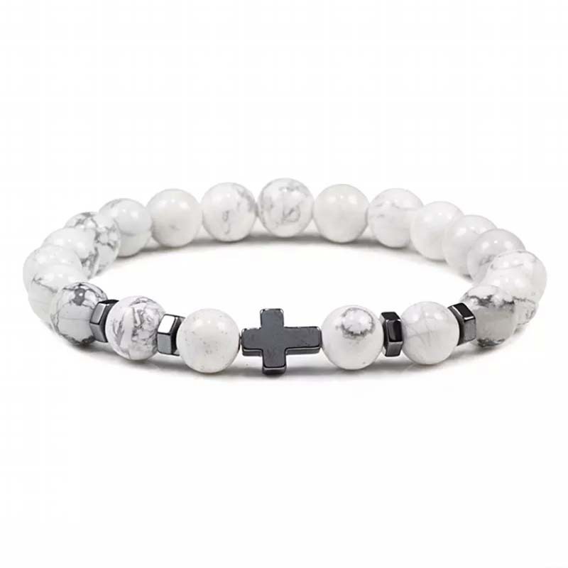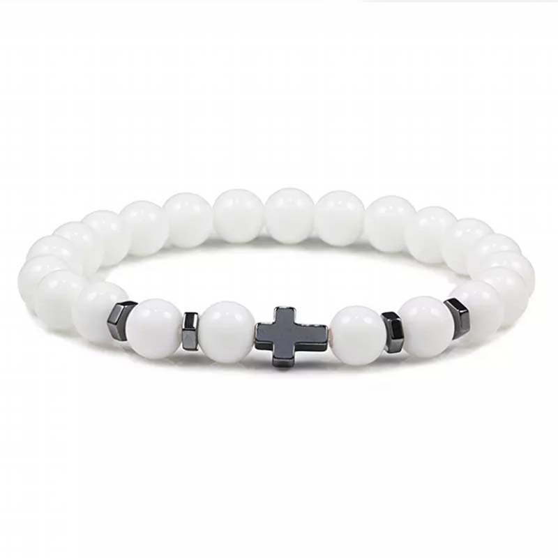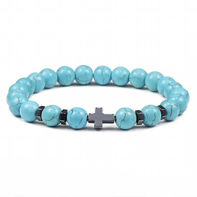 Natural Stone Cross Beaded Bracelet