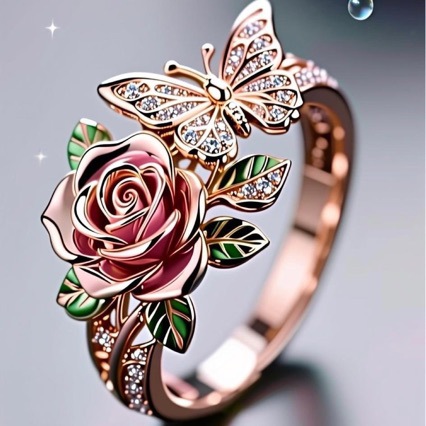 Flower Oil Dripping Open Ring, Alloy Butterfly Diamond Ring For Women