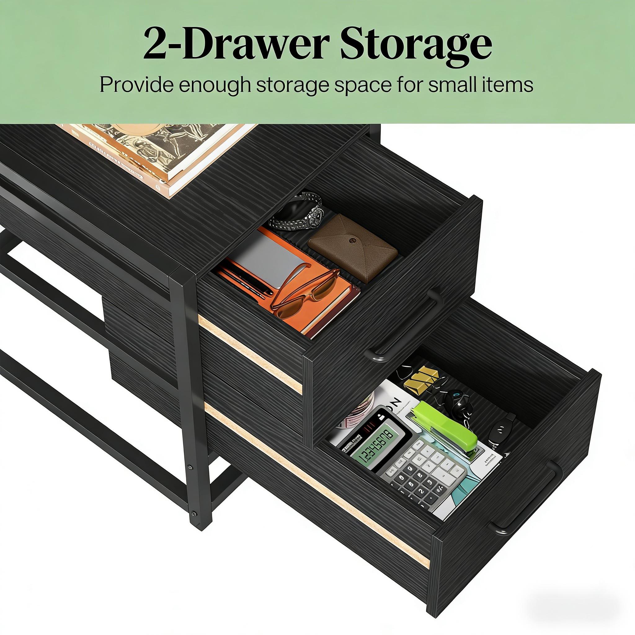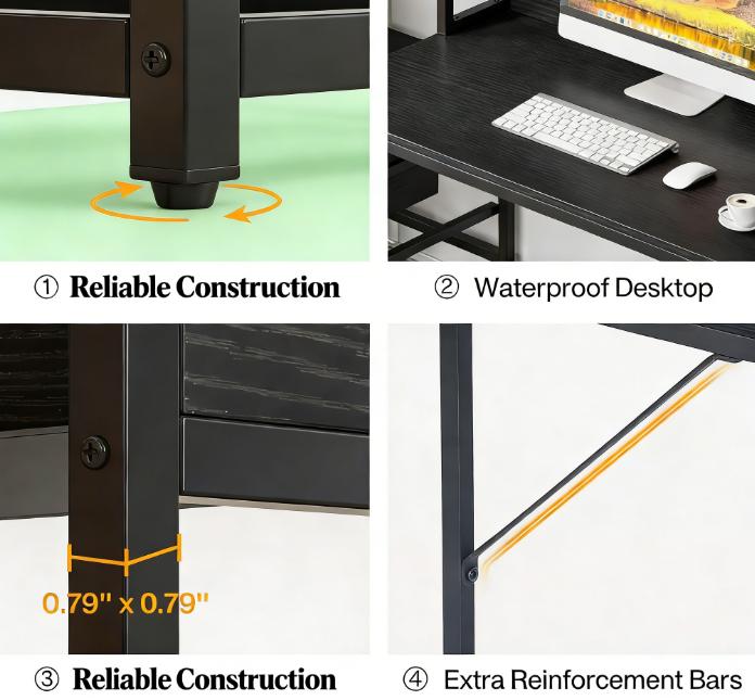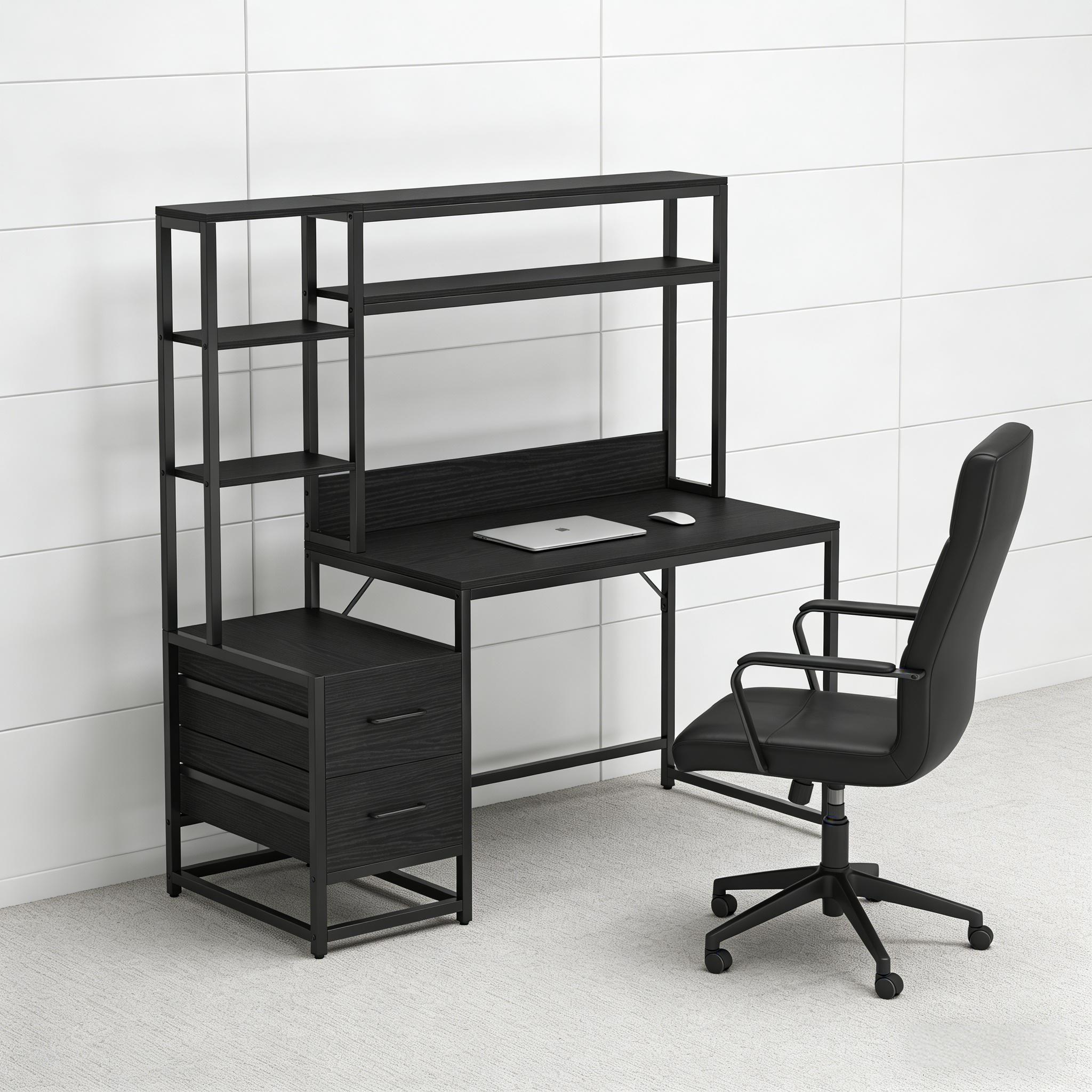 Important Reminder!!! 1) Attention: All products in our store do not support Canada self pickup ordering. Please do not create shipping labels for Canada. Our American products do not support self pickup to Canada 2)We do not ship to Alaska, Hawaii, US protectorates (e.g., Puerto Rico), P.O. boxes, or APO/FPO addresse 3)We don’t accept non-defective remorse returns All-in-One Computer Desk - Our multifunctional desk, featuring 2 drawers, a top hutch, and storage shelves, provides a versatile workspace suitable for computer use, studying, writing, or gaming. Enhanced Workspace - Showcasing a spacious desktop with a heightened baffle to prevent item spillage, the sleek design also offers ample legroom for a comfortable and unhindered work experience. Ample Storage - Enhance your workspace with an eye-catching display of books, artwork, and personal items on the top hutch and side shelves. The two drawers offer concealed storage, keeping your desk tidy. Durable and Stylish - Blending a rustic veneer finish with a black metal frame achieves a stylish, industrial look while ensuring durability and stability. The compact design complements any home decor.