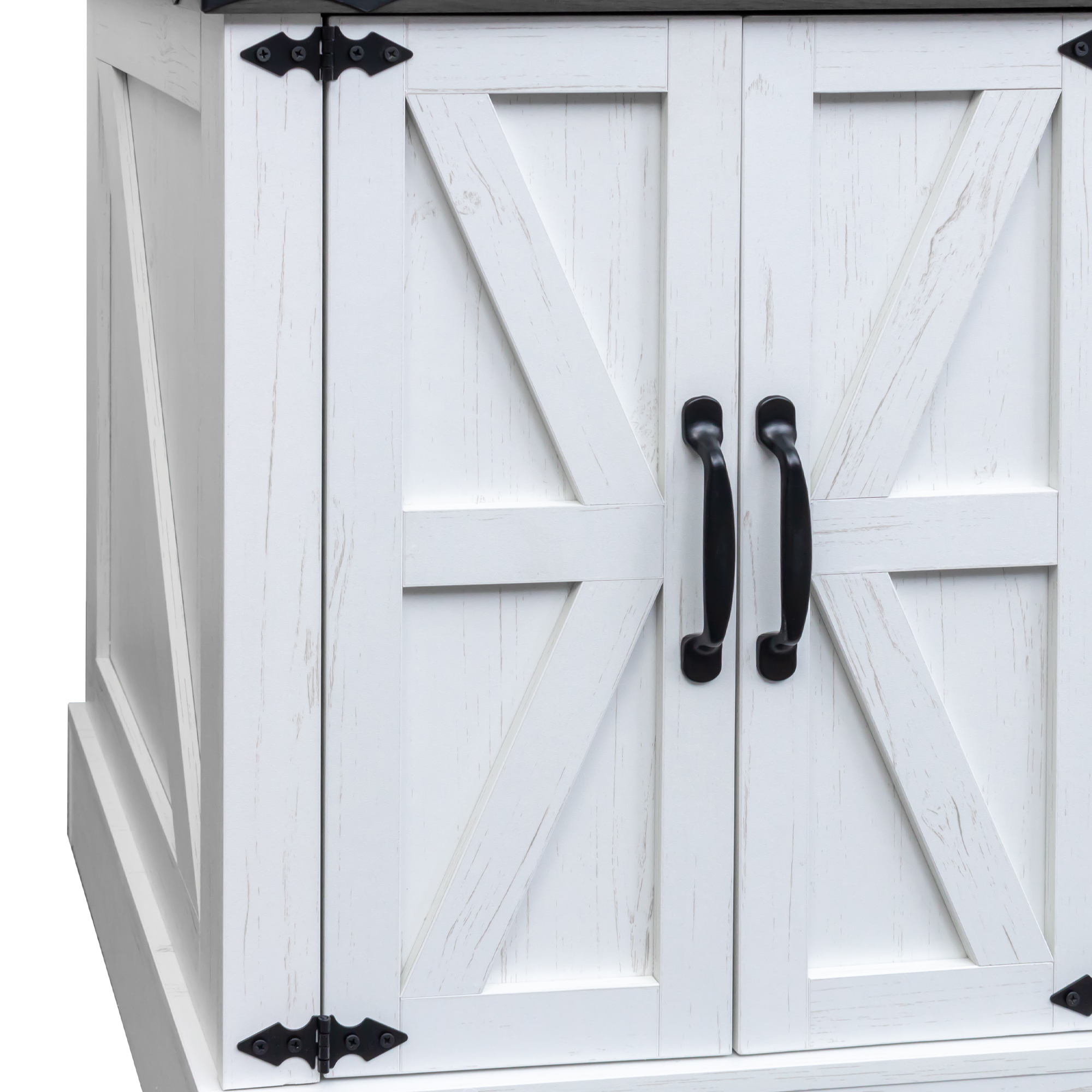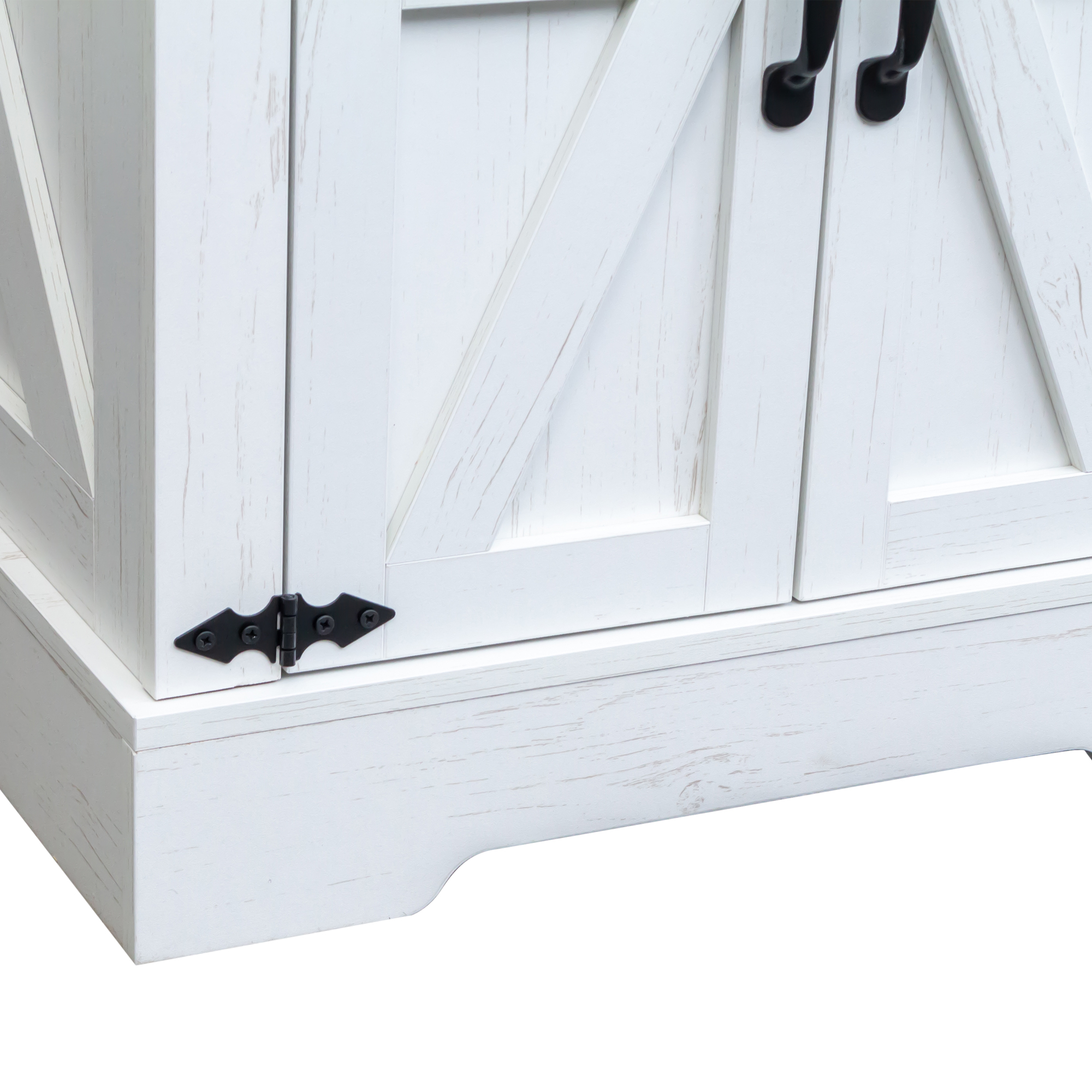 - Rustic Style: Adorned with exquisite barn doors and featuring a distressed white body paired with a walnut-toned top, this product exudes a classic rustic charm. The retro black handles and hinges further enhance its farmhouse aesthetic, making it a perfect fit for a wide range of furniture and decorative styles.