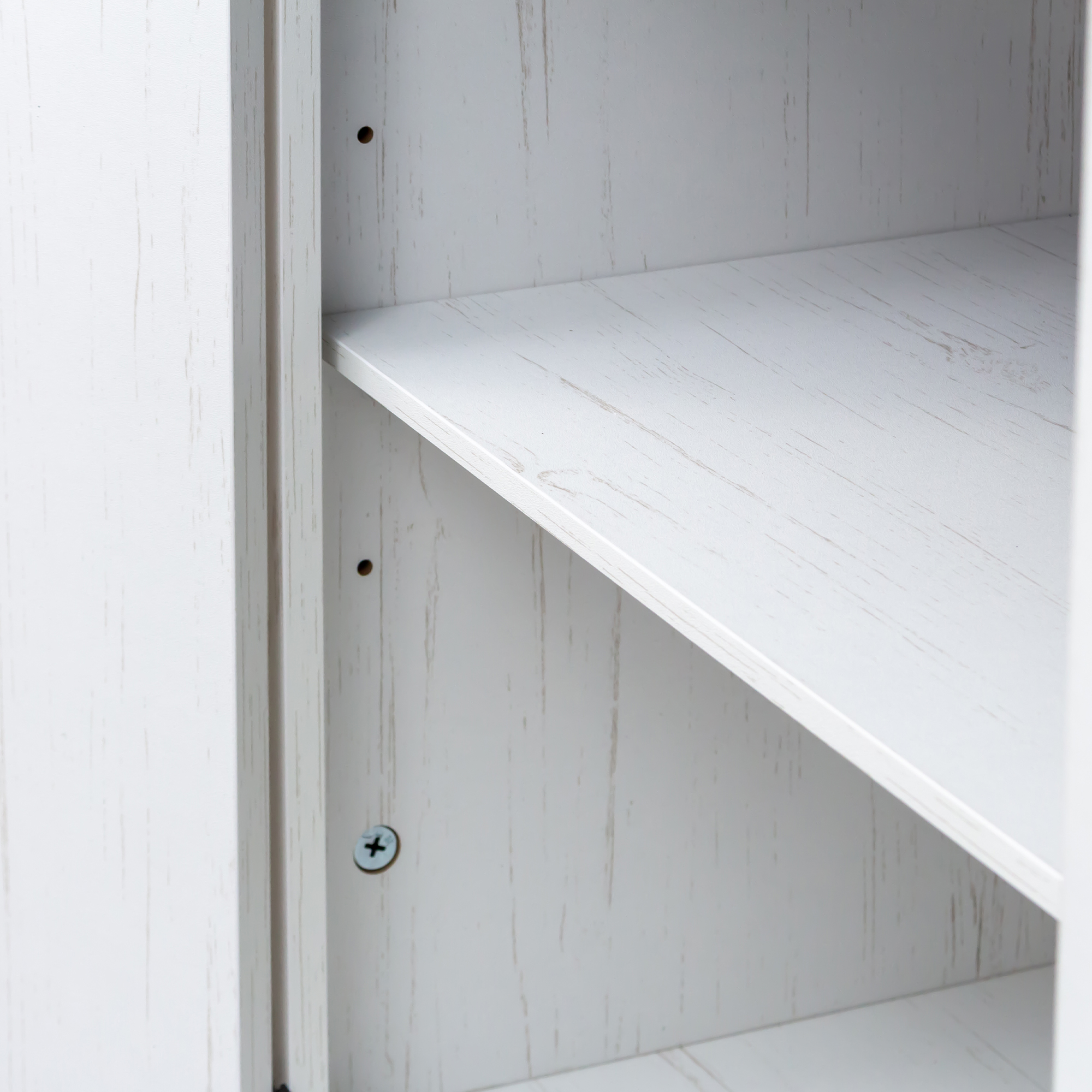 Adorned with exquisite barn doors and featuring a distressed white body paired with a walnut-toned top, this product exudes a classic rustic charm. The retro black handles and hinges further enhance its farmhouse aesthetic, making it a perfect fit for a wide range of decorative styles.