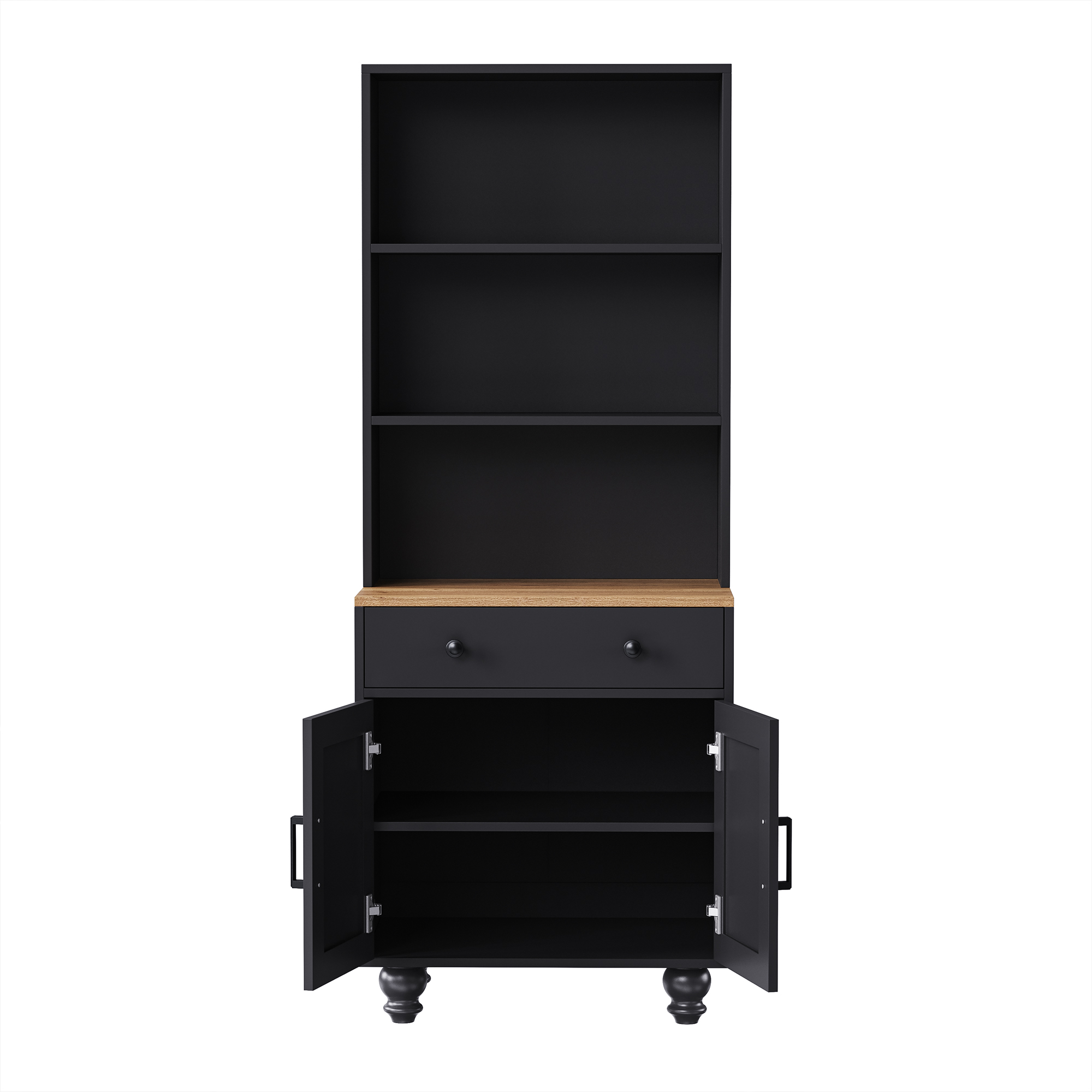 Product Name:ON-TREND Farmhouse Storage Cabinet with 4 Solid Wood Gourd-Shaped Legs, Modern Kitchen Pantry Cabinet with Adjustable Shelves, 5 Tier Bookshelf with Drawer for Living Room, Black