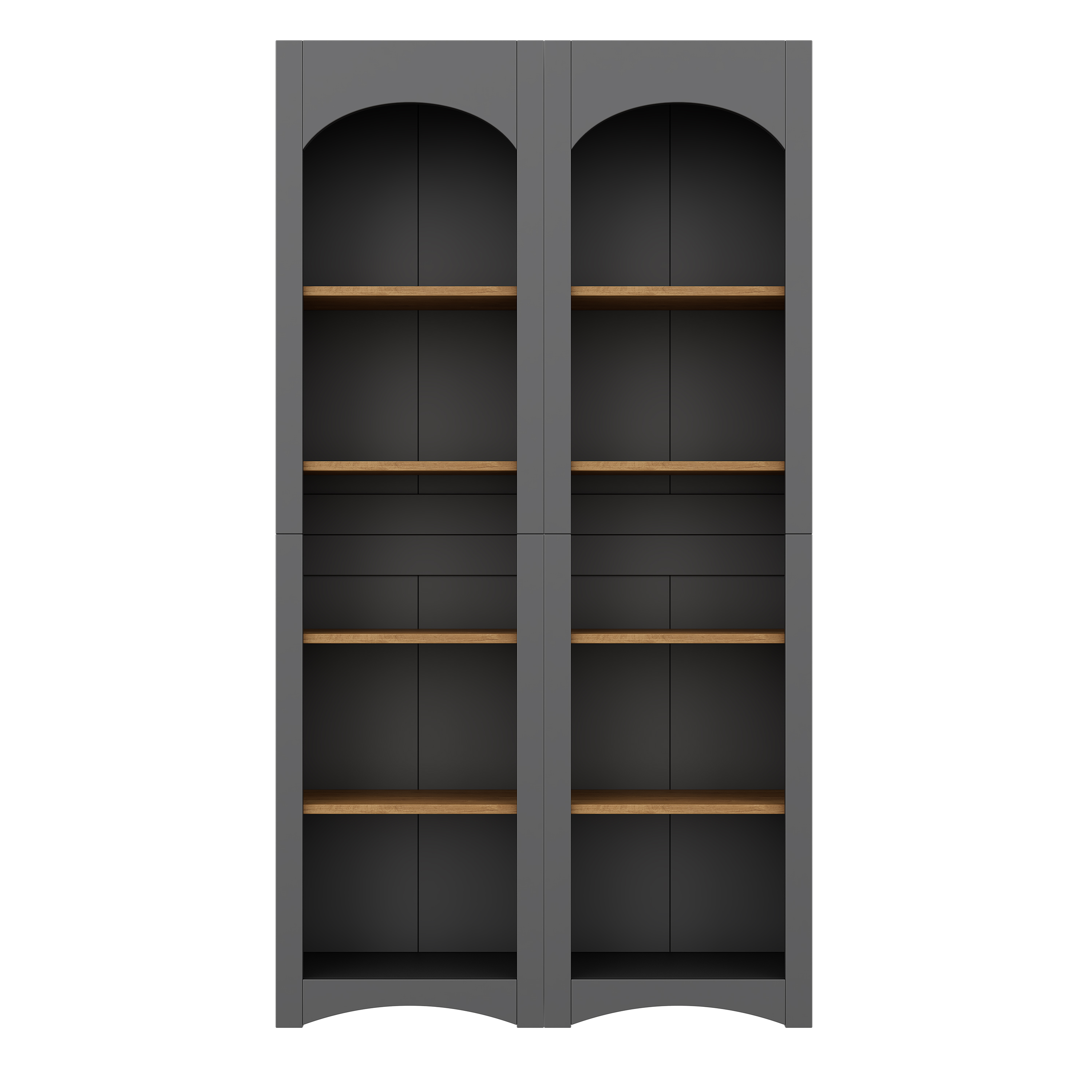 The wood-grain colored shelves introduce a rustic, countryside charm to the product, presenting an overall dual-tone appearance. The curved panels on the top and bottom add a distinctive flair to its design. With clean and sleek lines, the product seamlessly adapts to your home decor style.