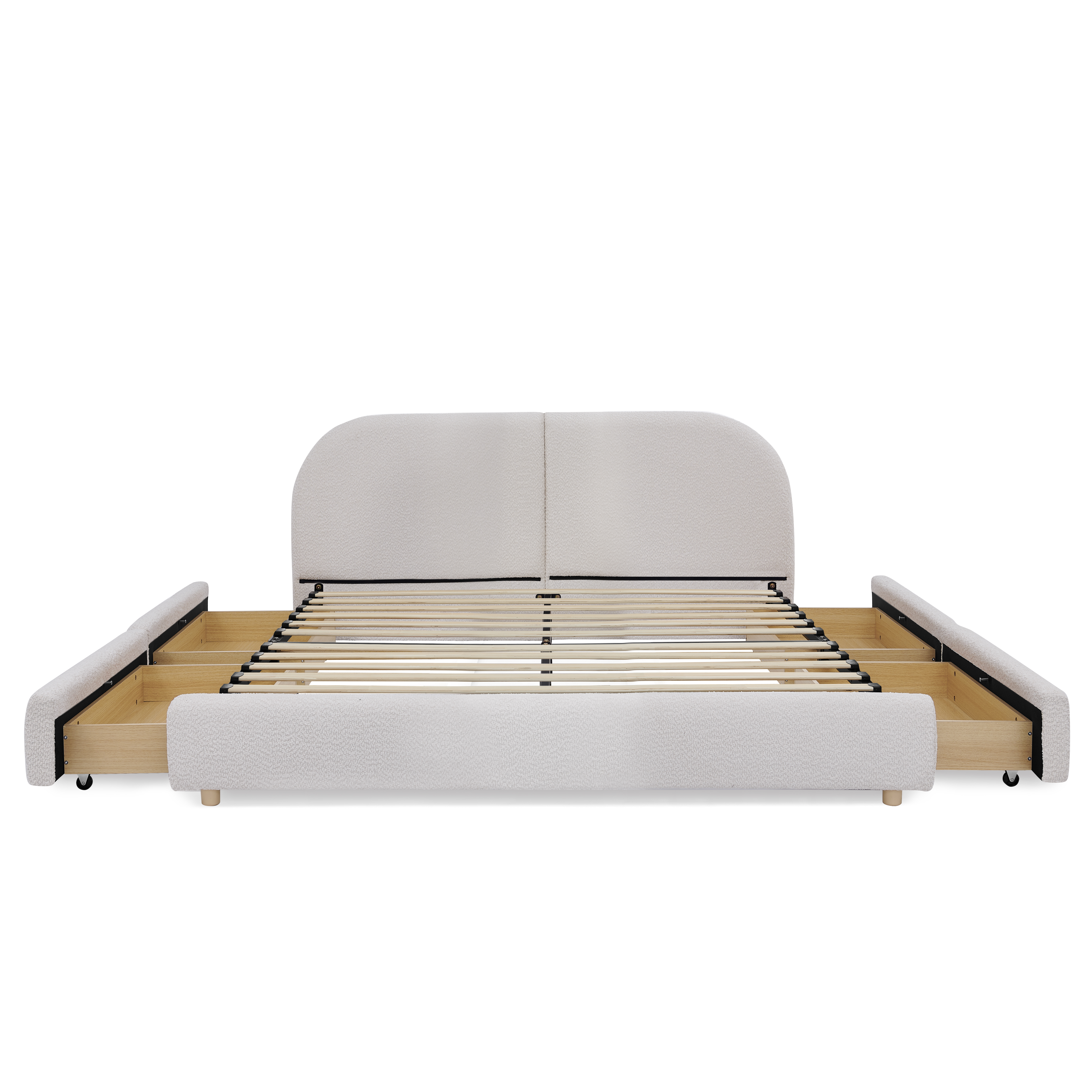 - 4 Built-in Wheeled Drawer Storage Cabinets:Comes with 4 spacious drawer storage cabinets, each fitted with smooth-rolling pulleys. The drawers glide open and closed effortlessly without scratching the floor, providing ample space to store bedding, seasonal clothes, or daily essentials and keeping the bedroom clutter-free.