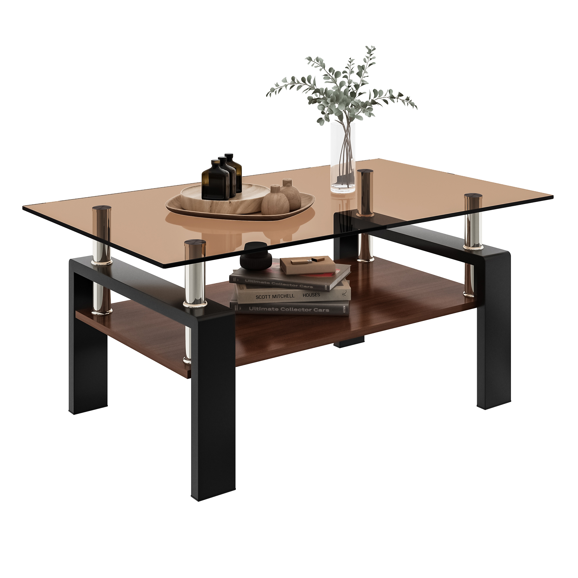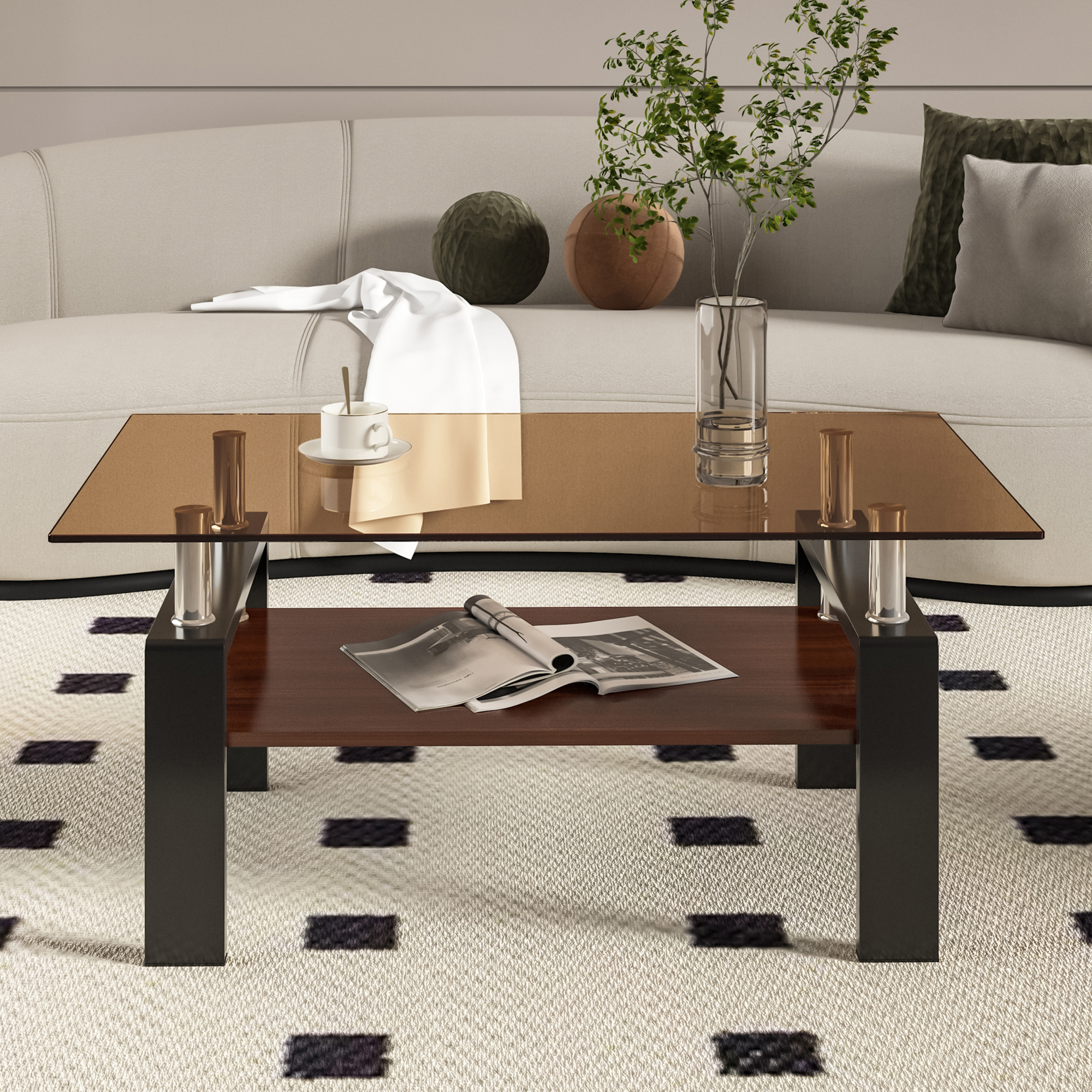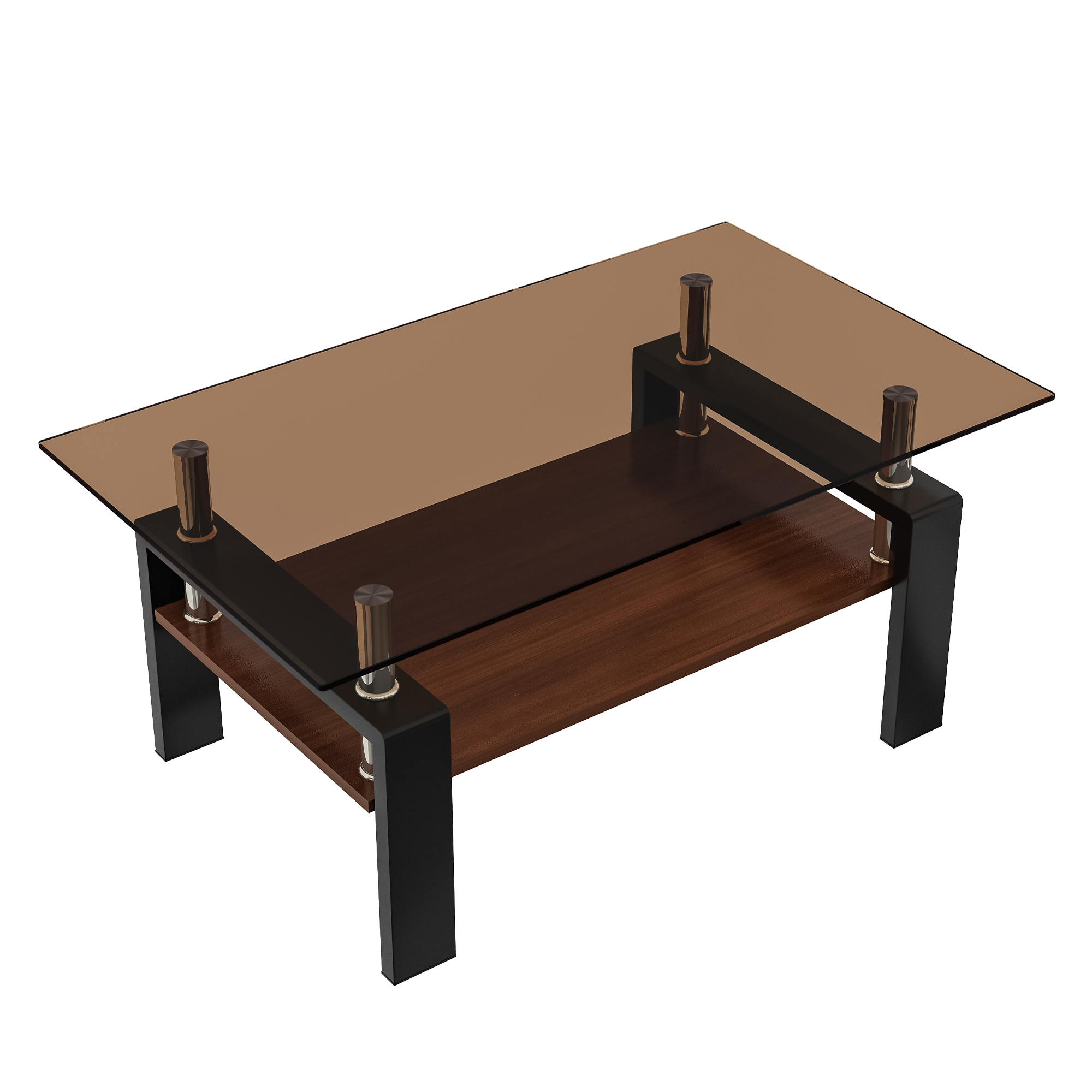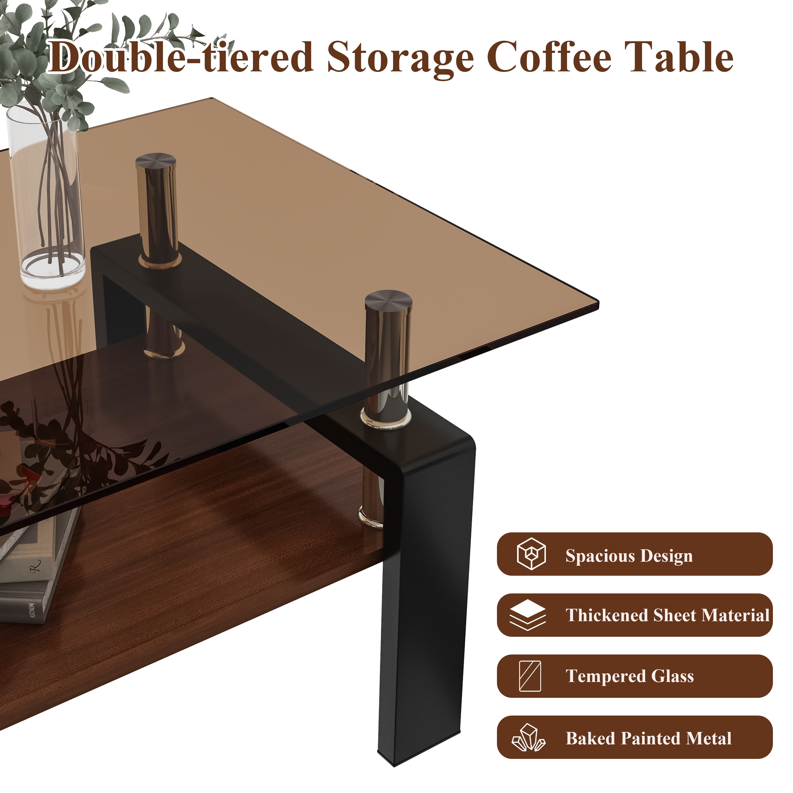 Product Name:Rectangle Coffee Table, Tempered Glass Tabletop with MDF Layer, Modern Table for Living Room , Brown Glass
