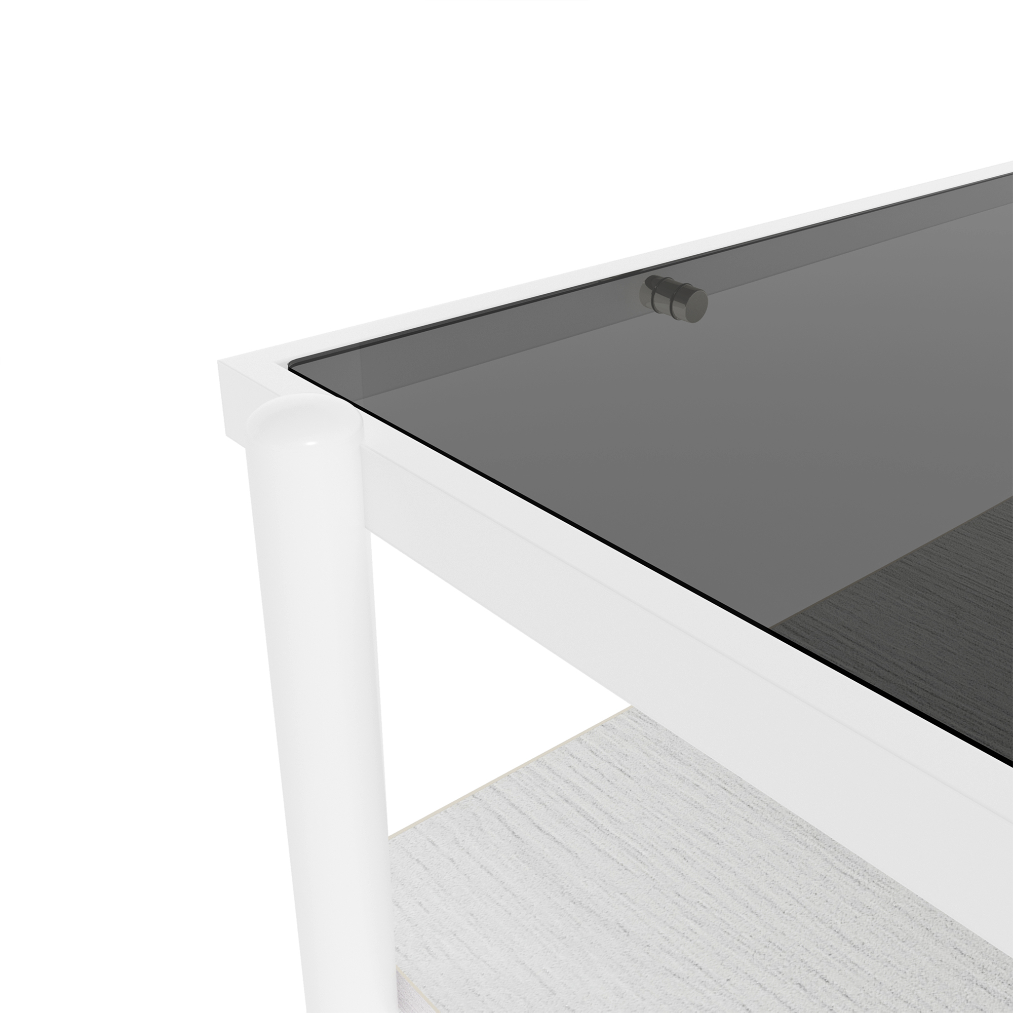 Rectangle Coffee Table With Gray Tempered Glass Top And White Legs, Modern Table For Living Room