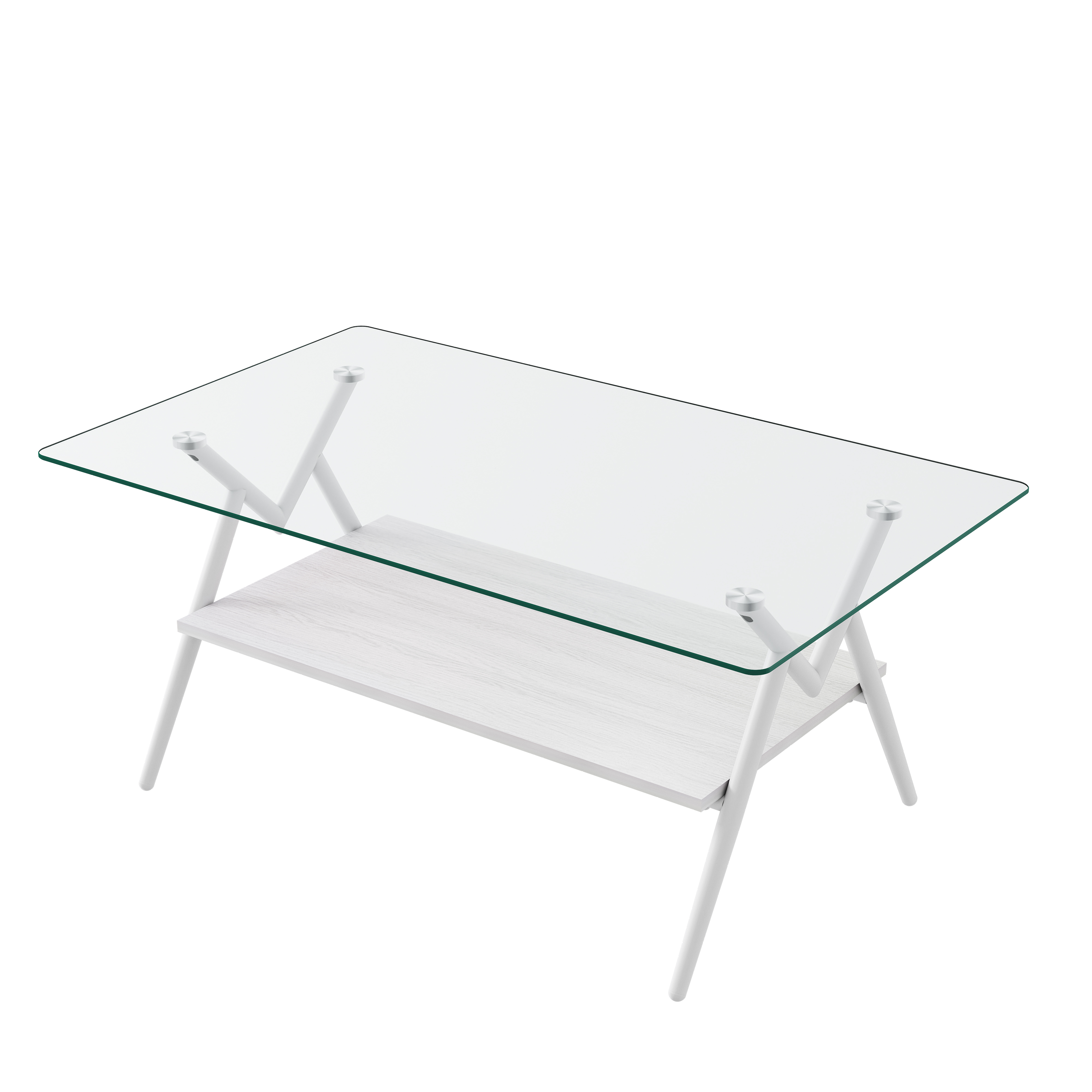 Rectangle Coffee Table With Tempered Glass Top And White Metal Legs, Modern Table For Living...